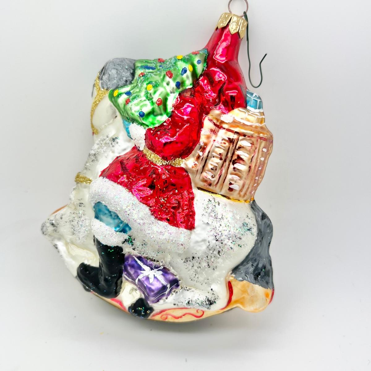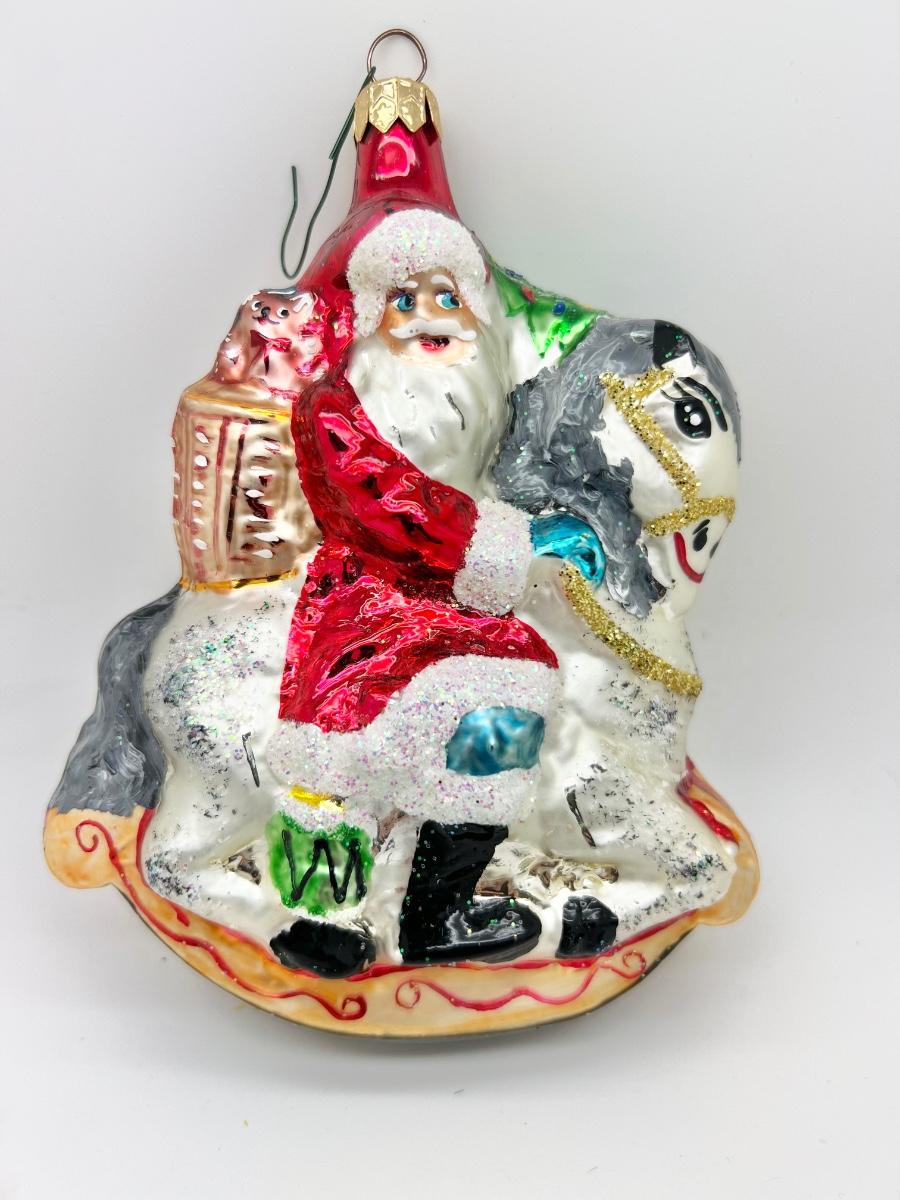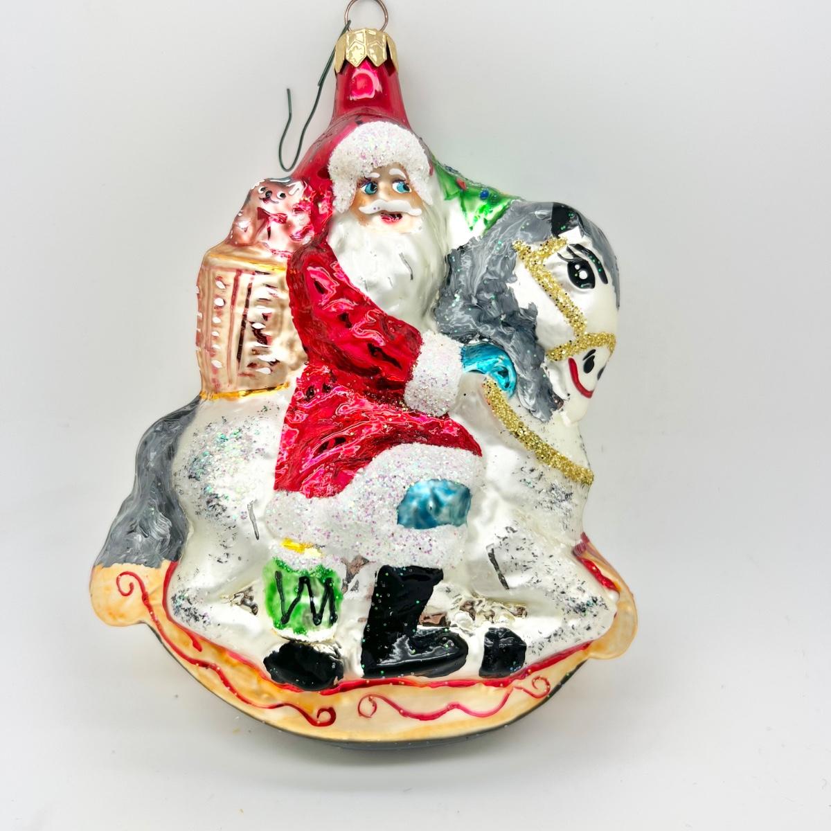 1203 Christopher Radko Hand Blown Rocking Horse Santa Ornament