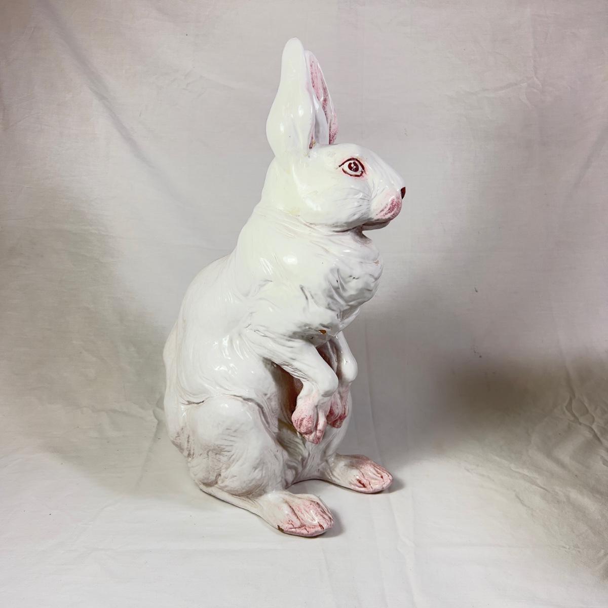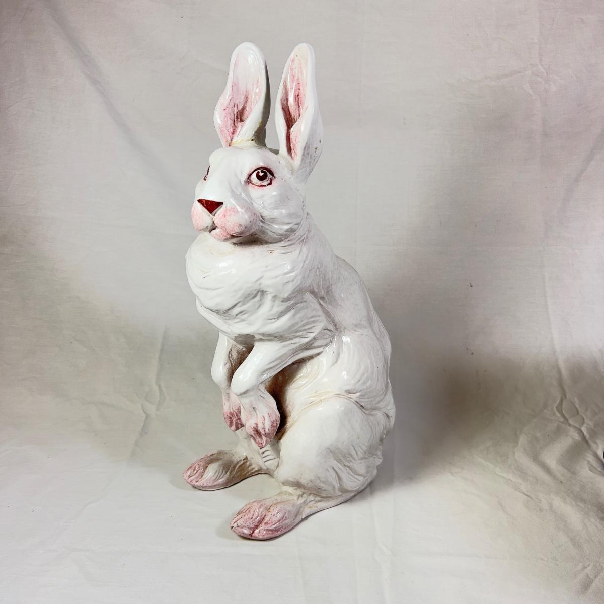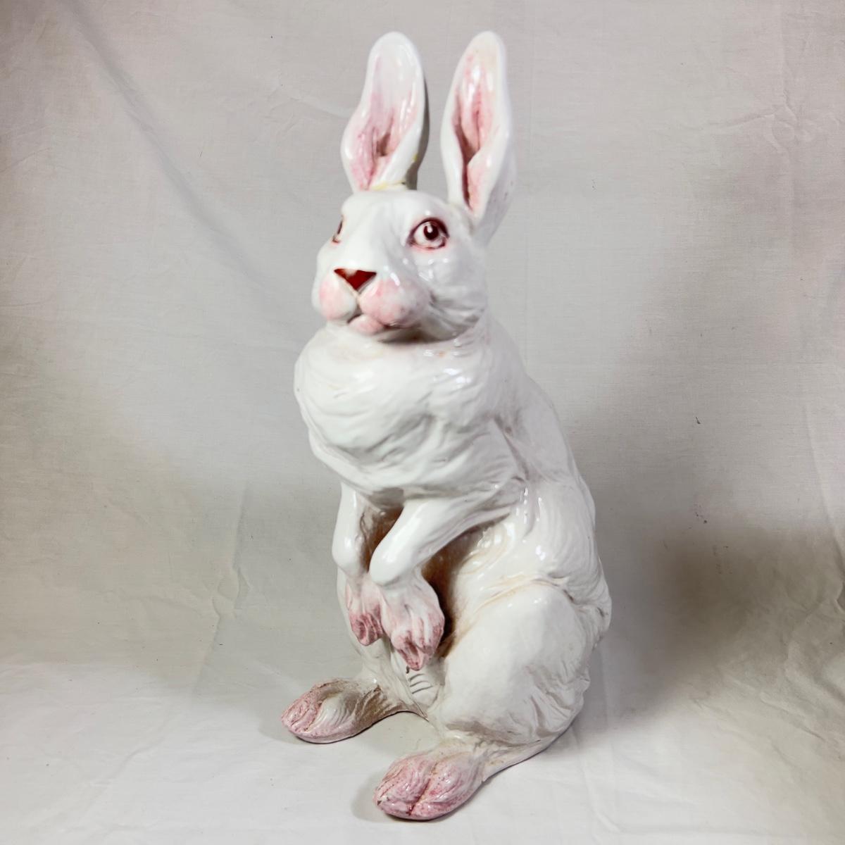 1203 Large Antique Italian Ceramic Bunny Statue