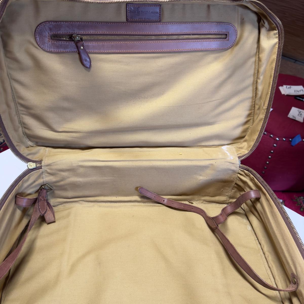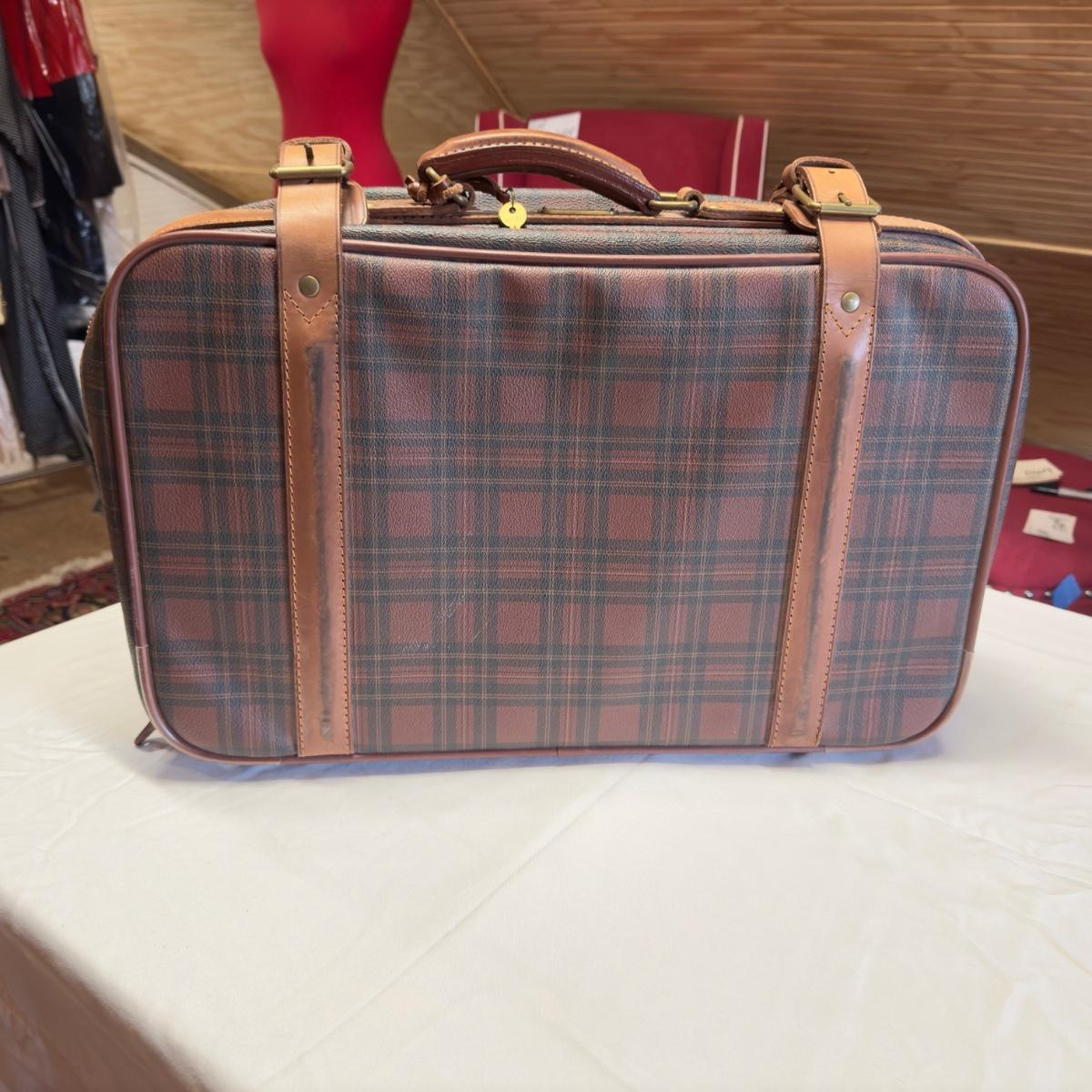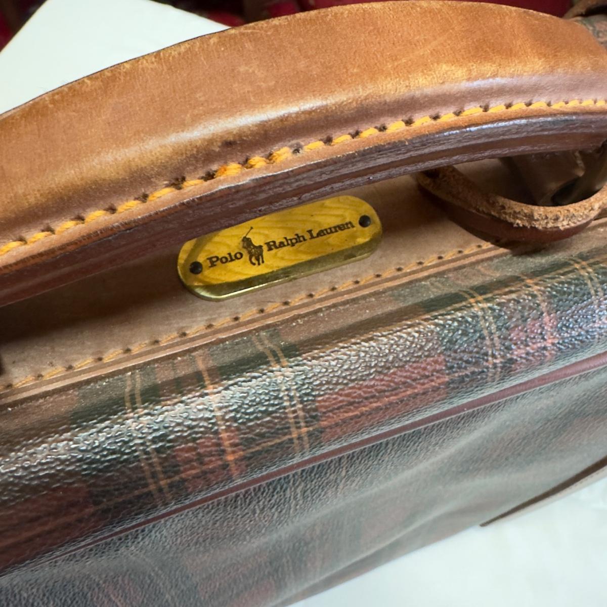 Good condition leather tartan pattern suitcase with cartouche for Ralph Lauren