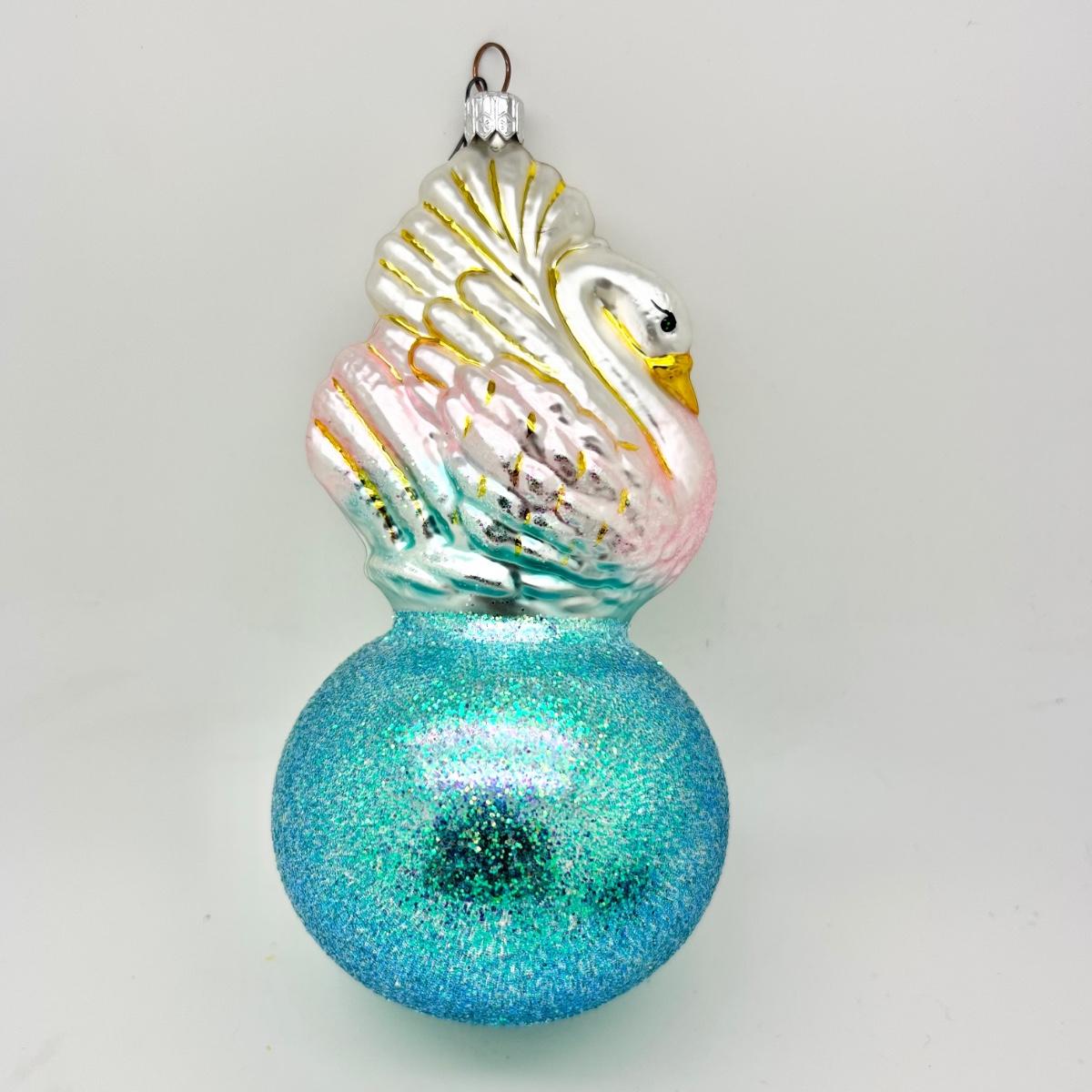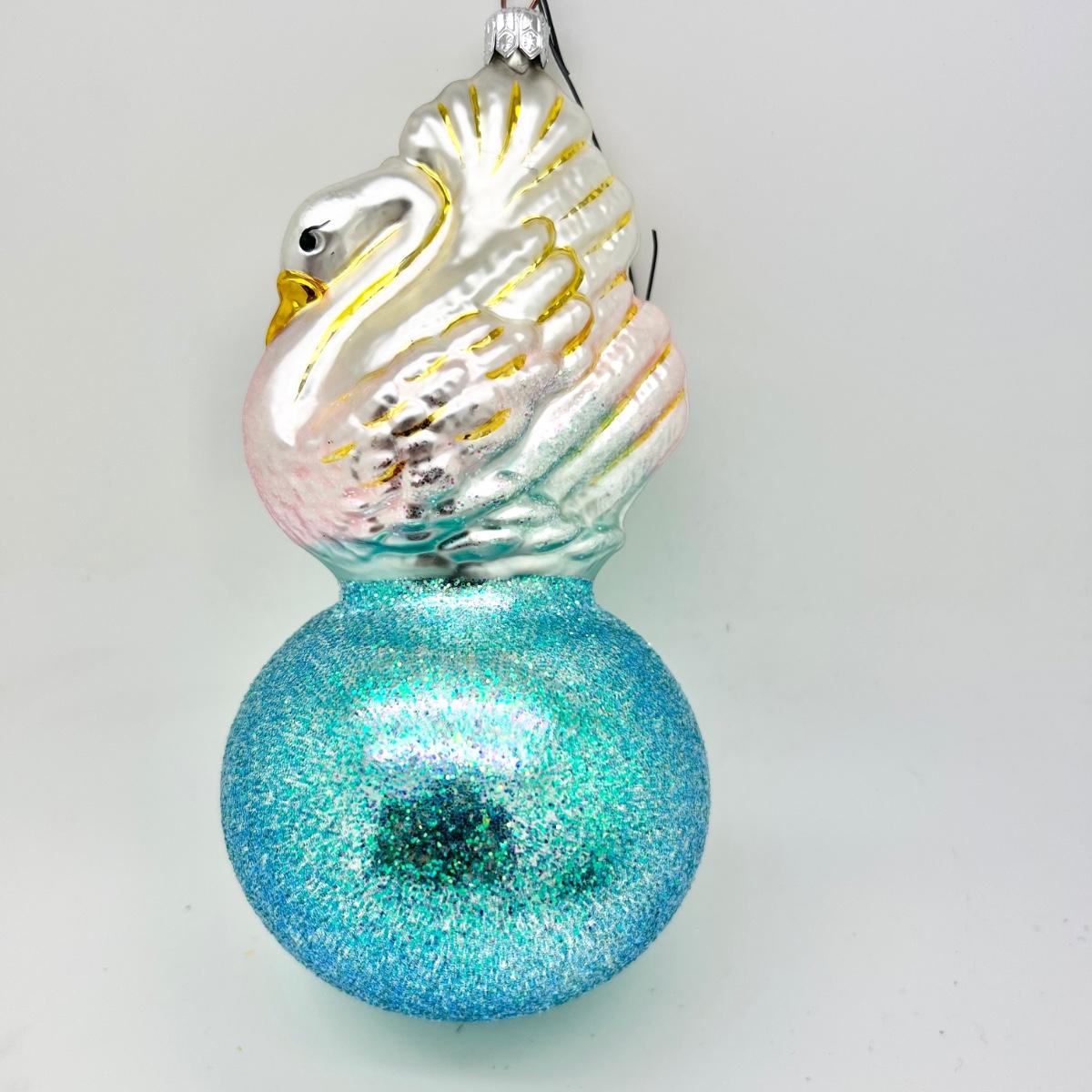 1205 Christopher Radko Hand Blown 1997 Glass Swan Lake Turquoise Ball Ornament