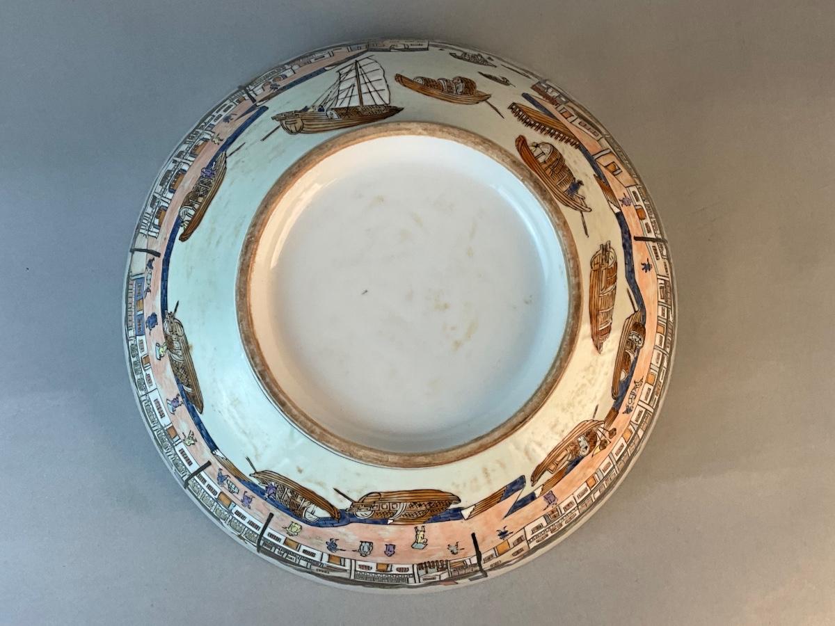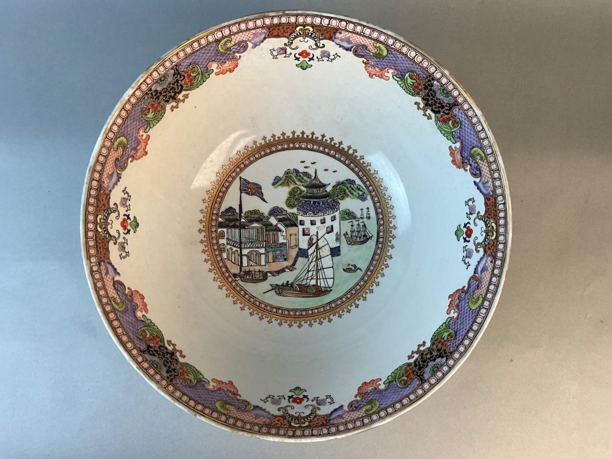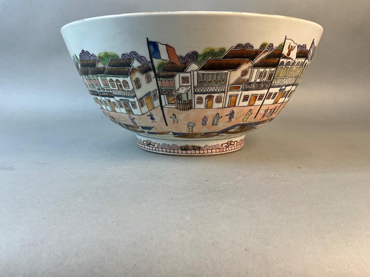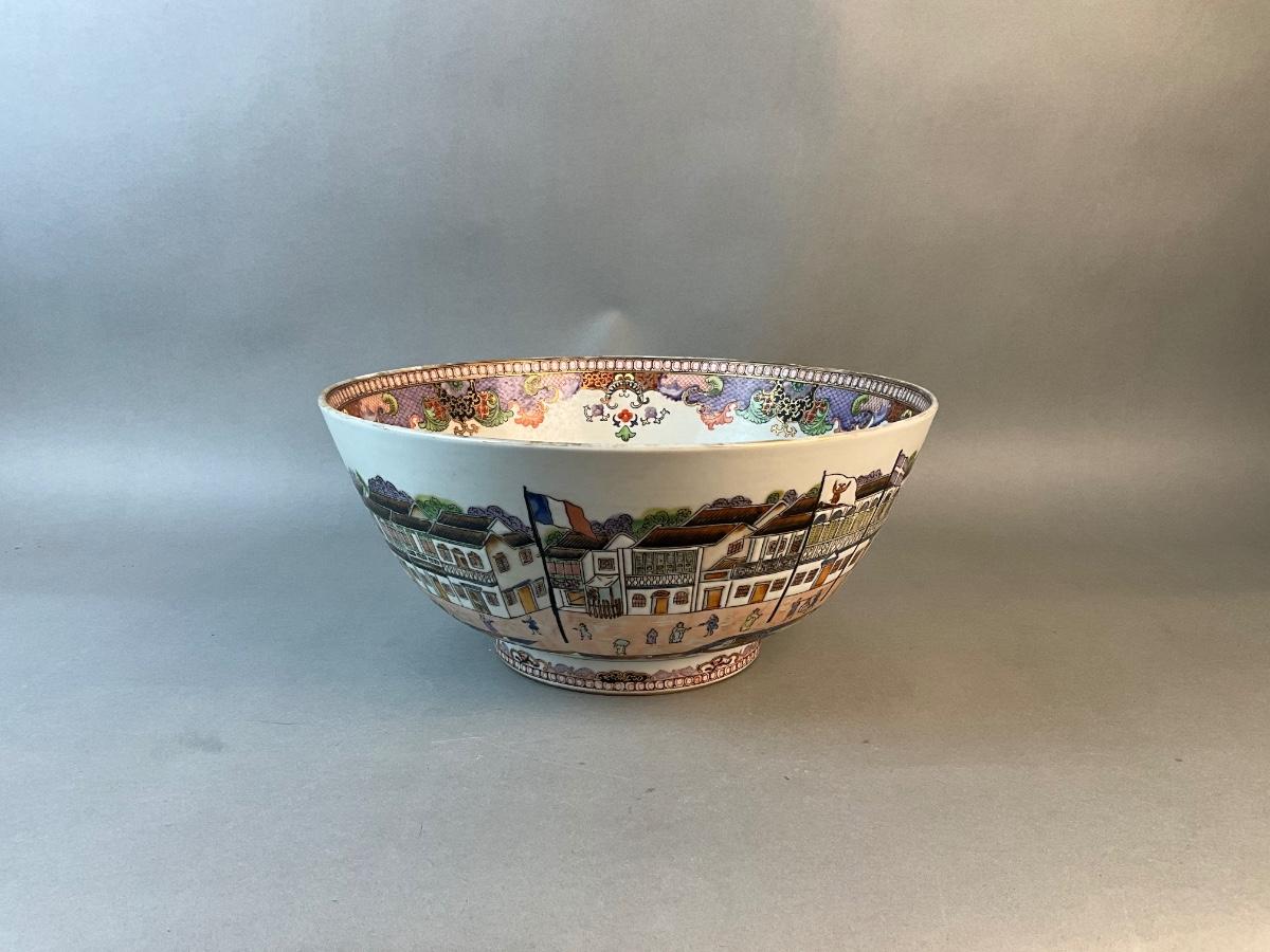 1206 Large Chinese Export Style Punch Bowl "Hongs of Canton"