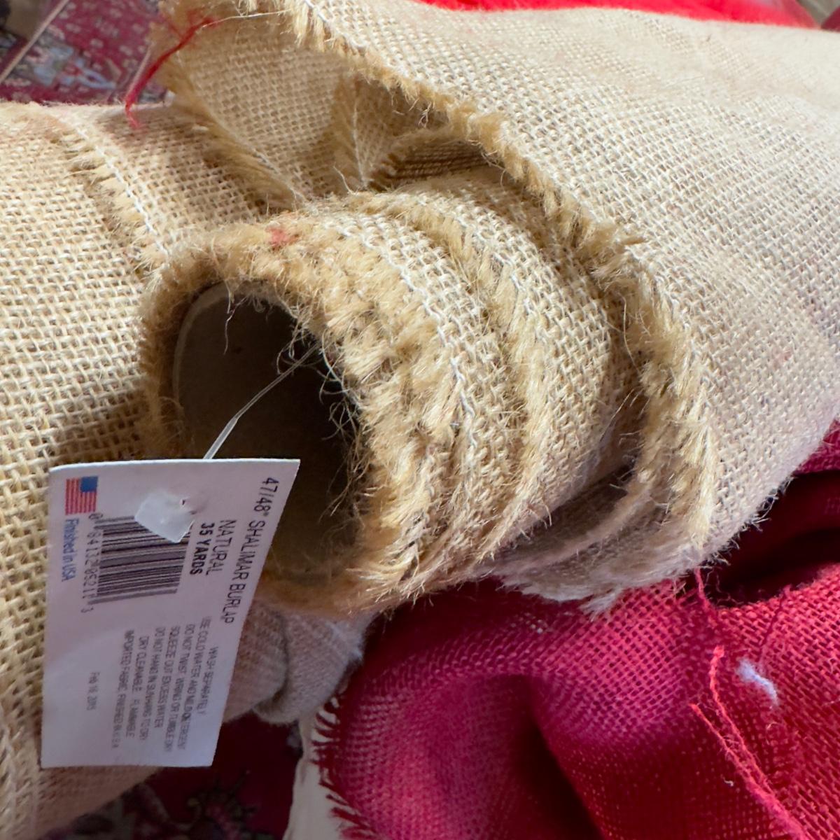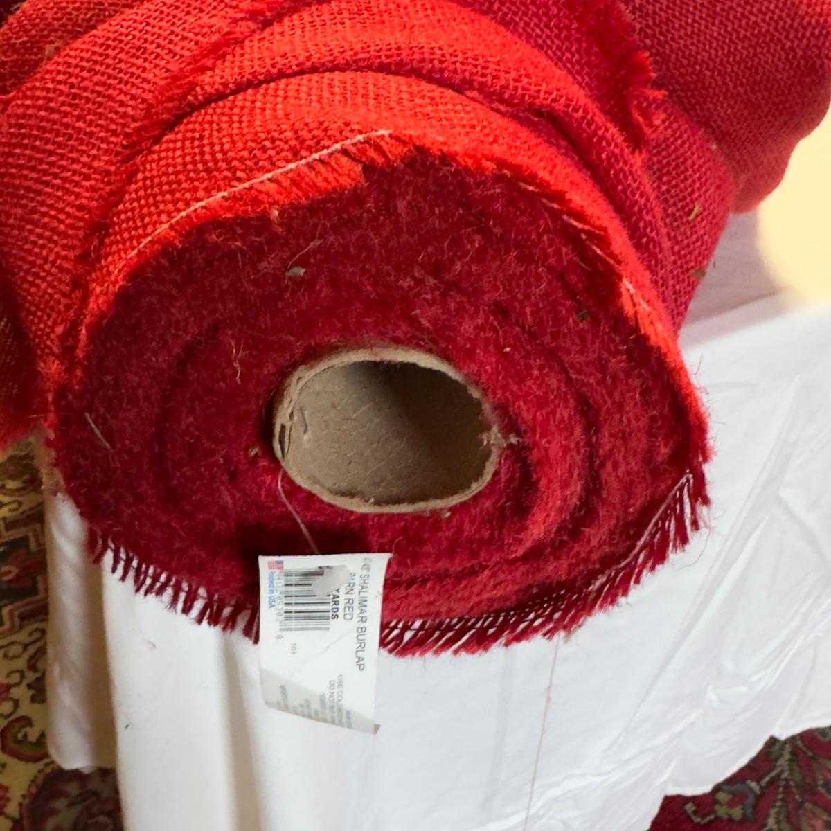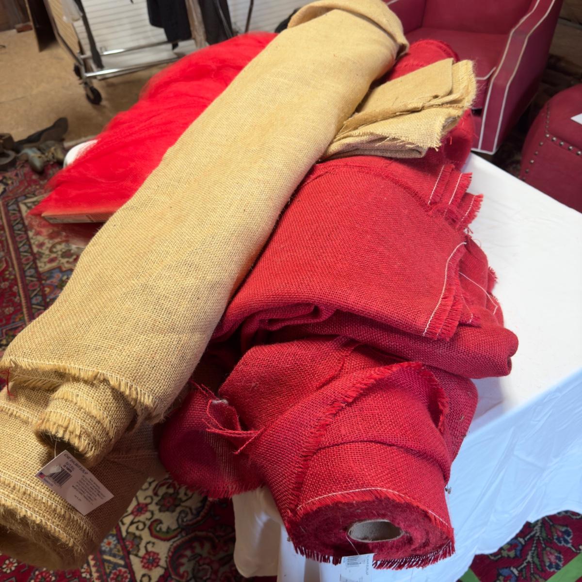 Two Bolts of red and brown burlap measuring 48" wide ( not sure of yardage)