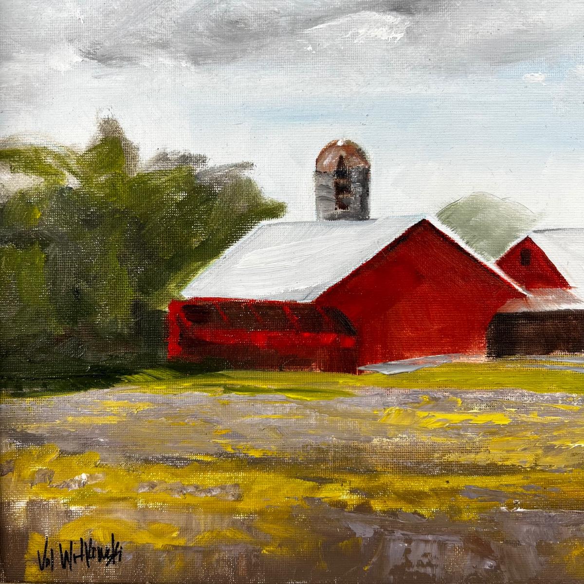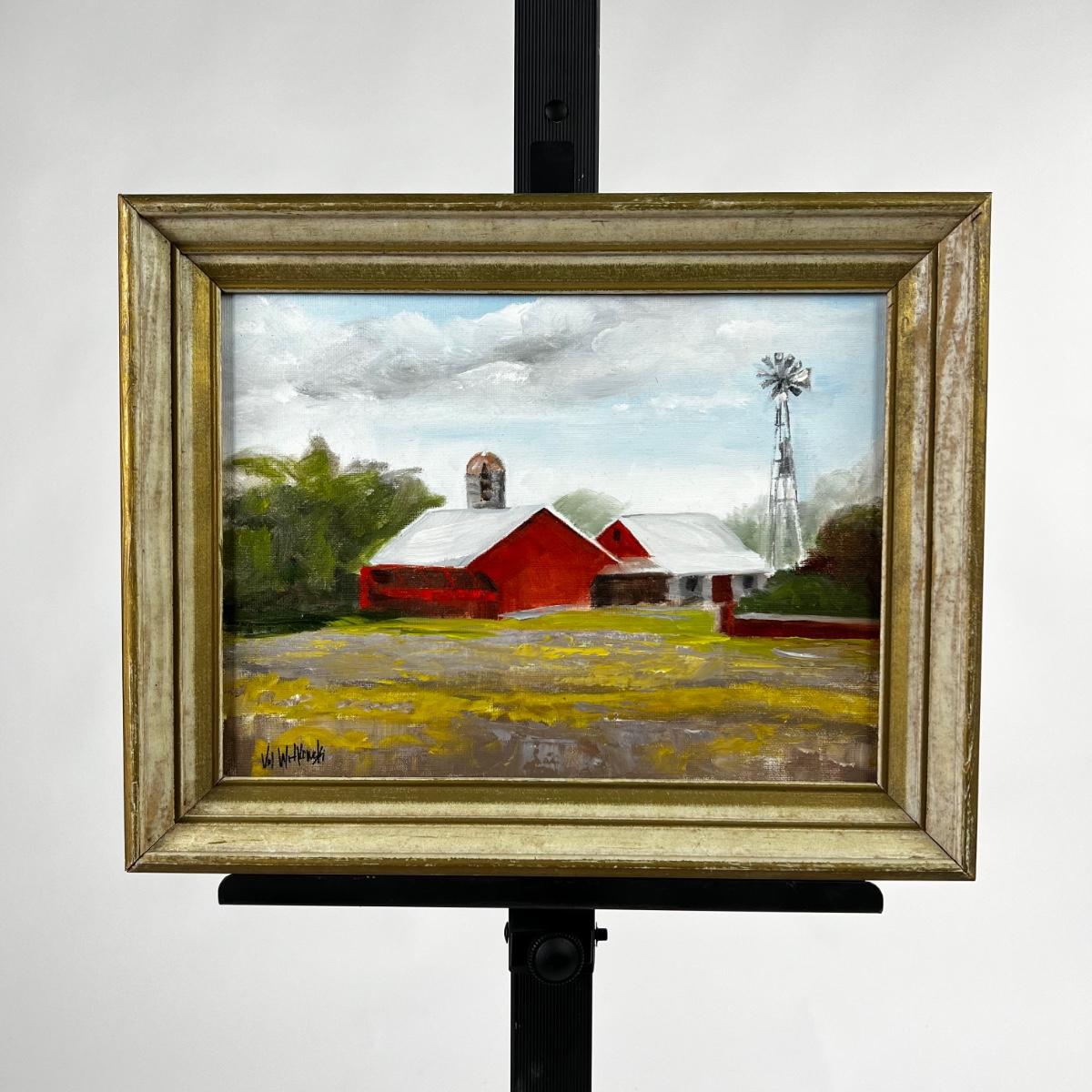 Original Plein-Air Oil Painting on Board “Barns” by Val Witkowski.