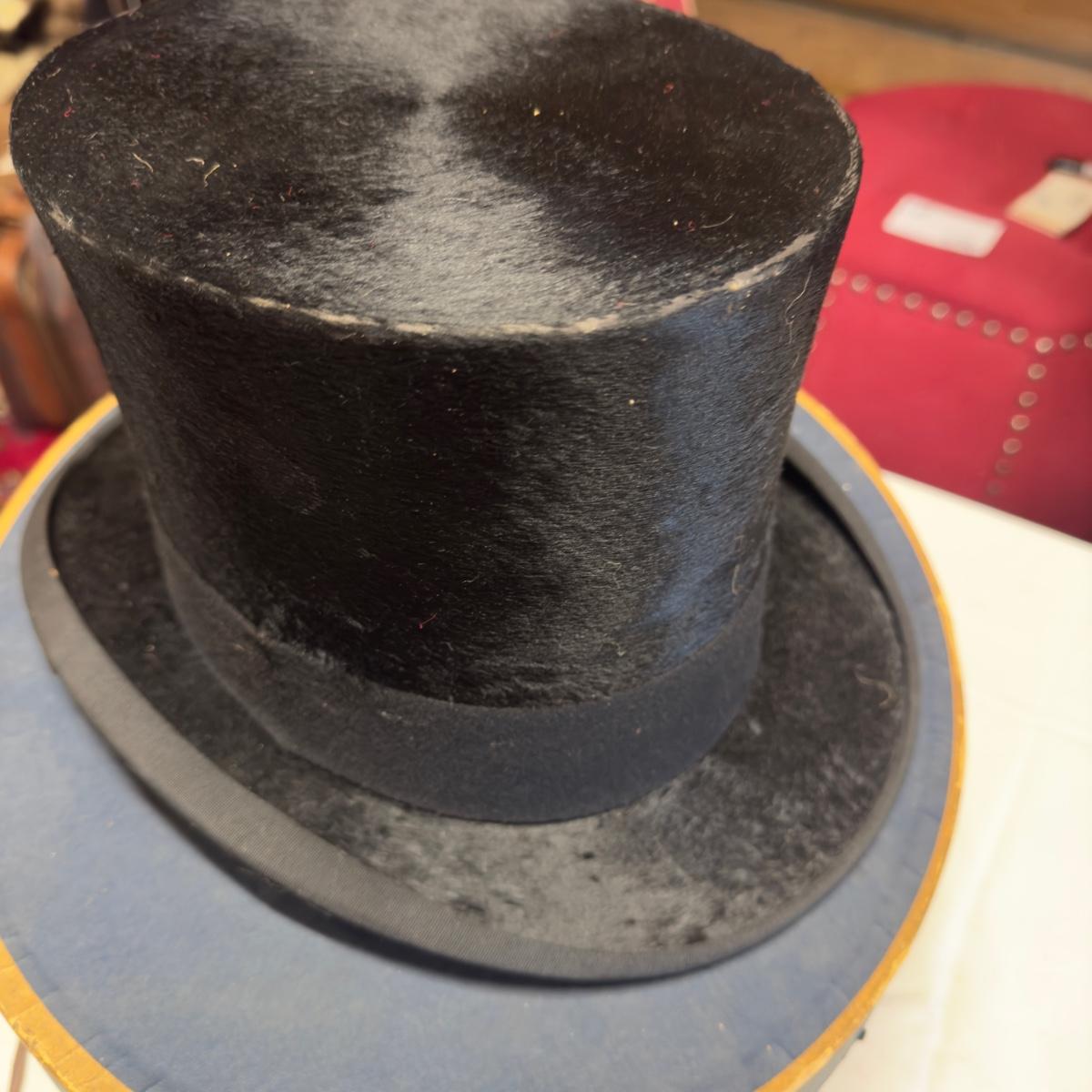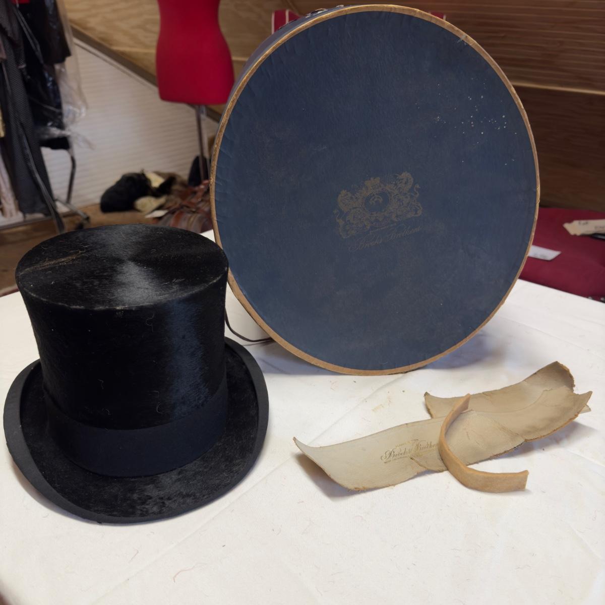 U1208 Antique Felt Beaver Brook's Brothers England Top Hat with Original Box