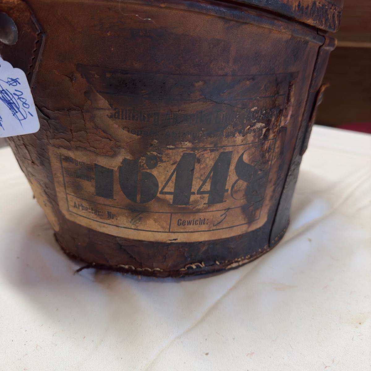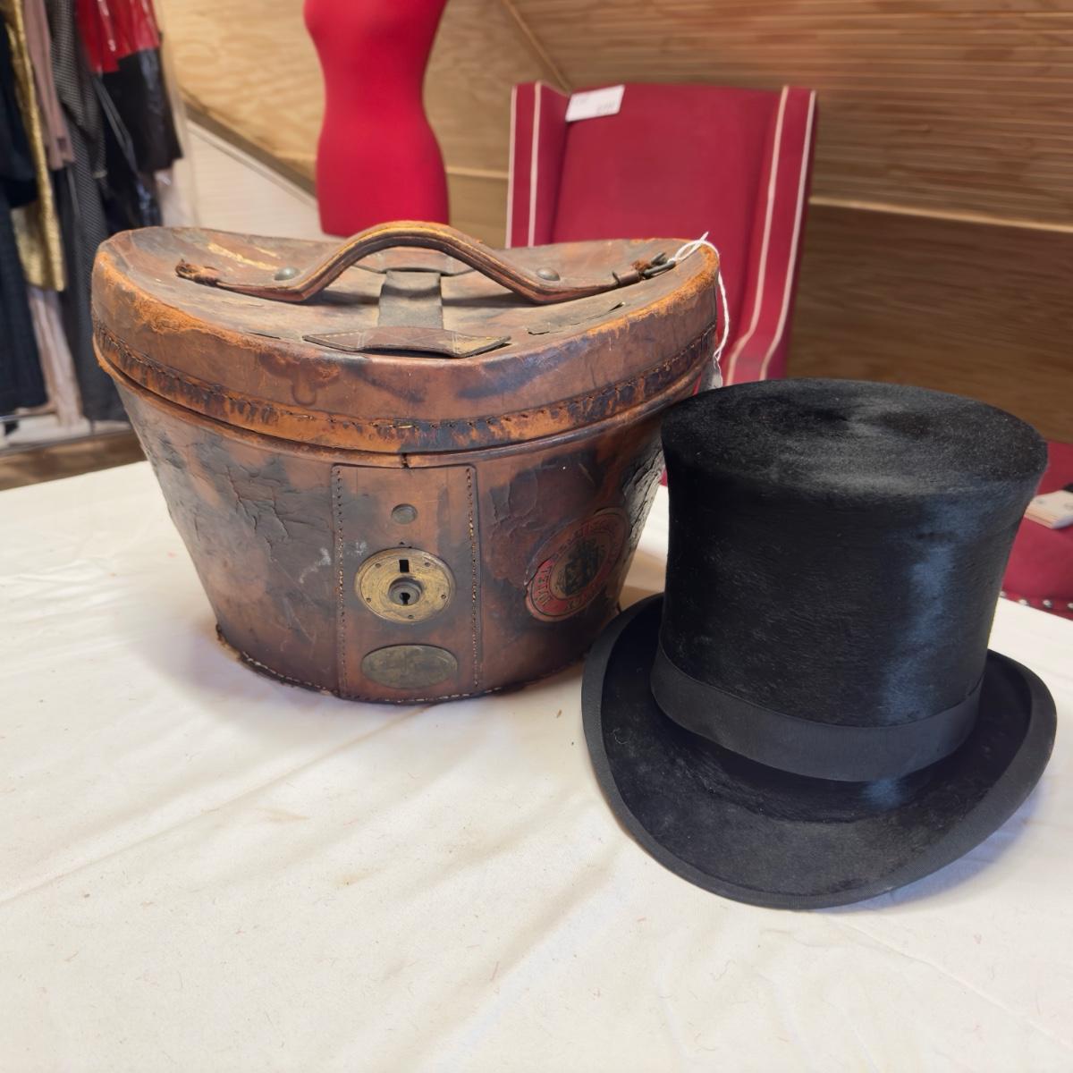 U1209 Antique French Pig Skin Leather Hat Box with Felt Top Hat
