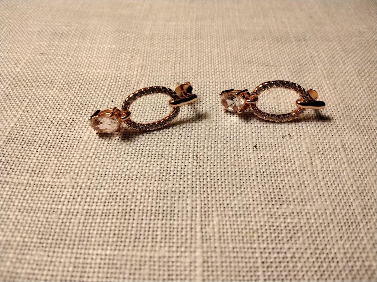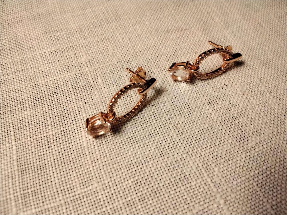 1.20ctw Peach Morganite & White Sapphire 14K Rose Gold 925 Earrings