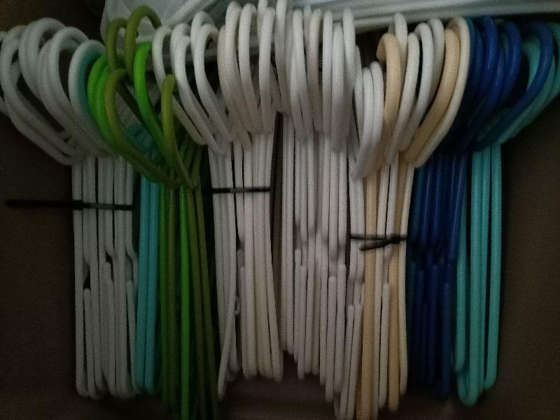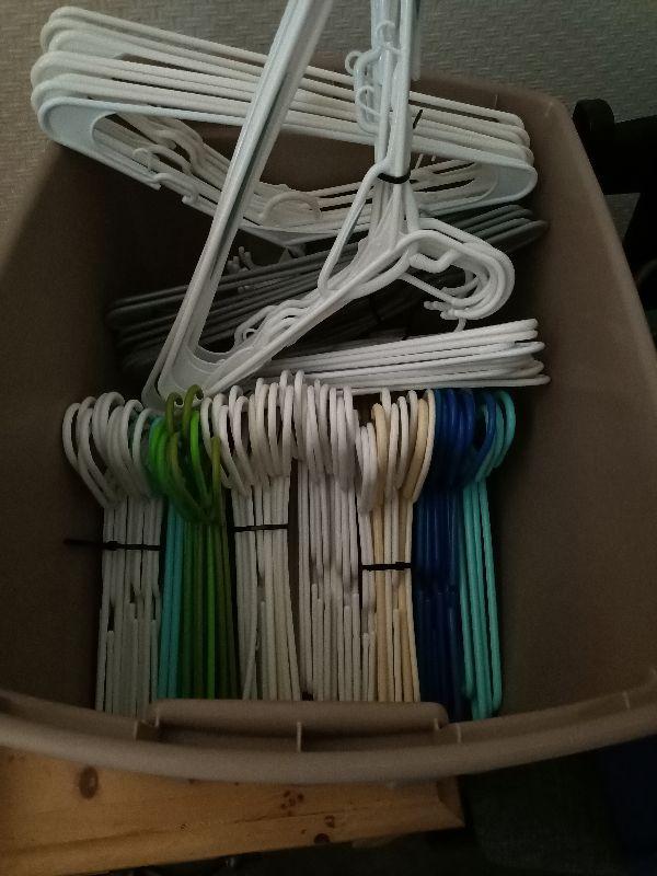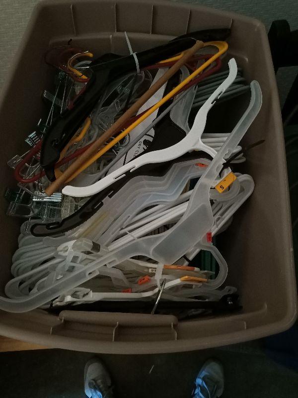 121.  120+ coat hangers in tote