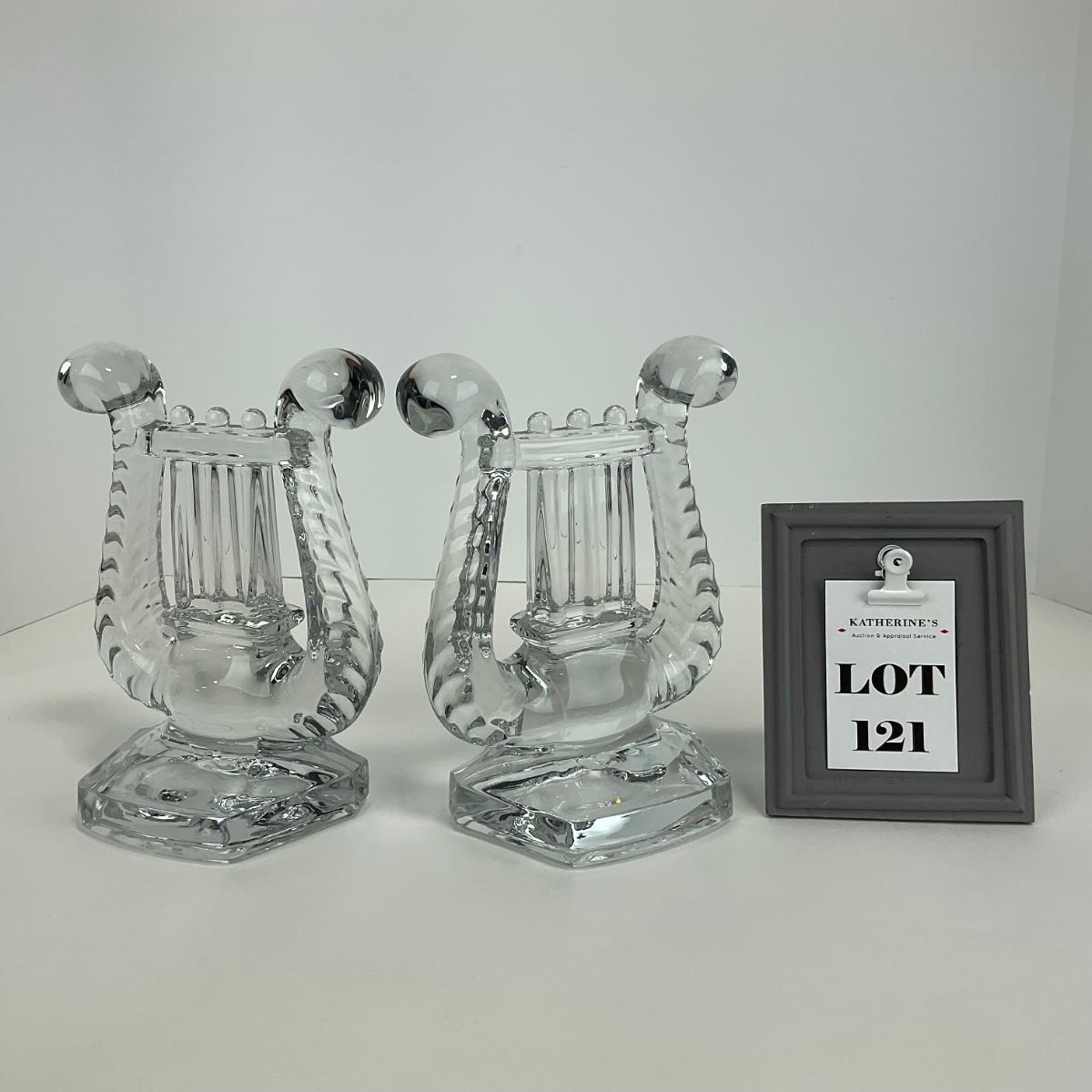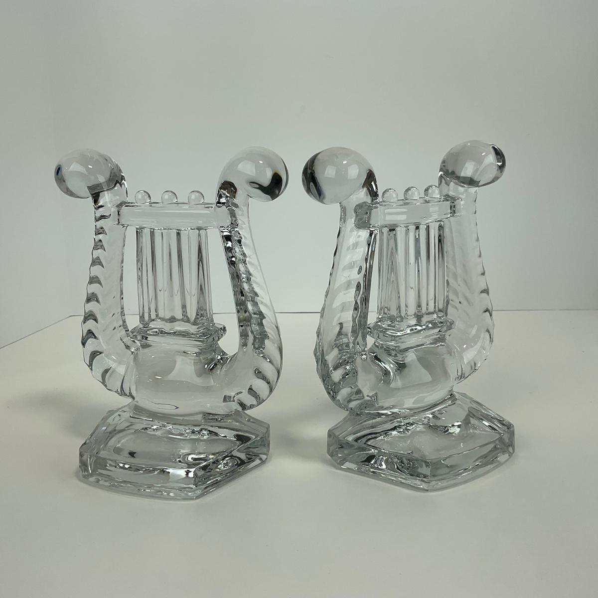 -121- FOSTORIA | Clear Glass Harp Lyre Bookends