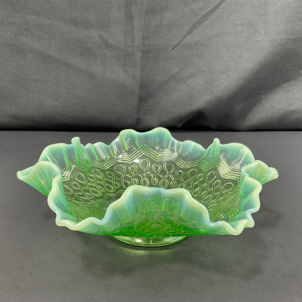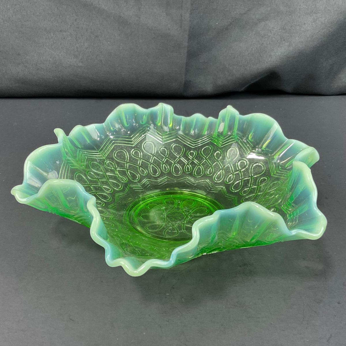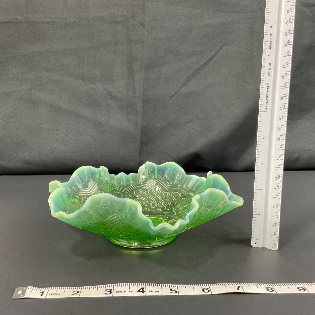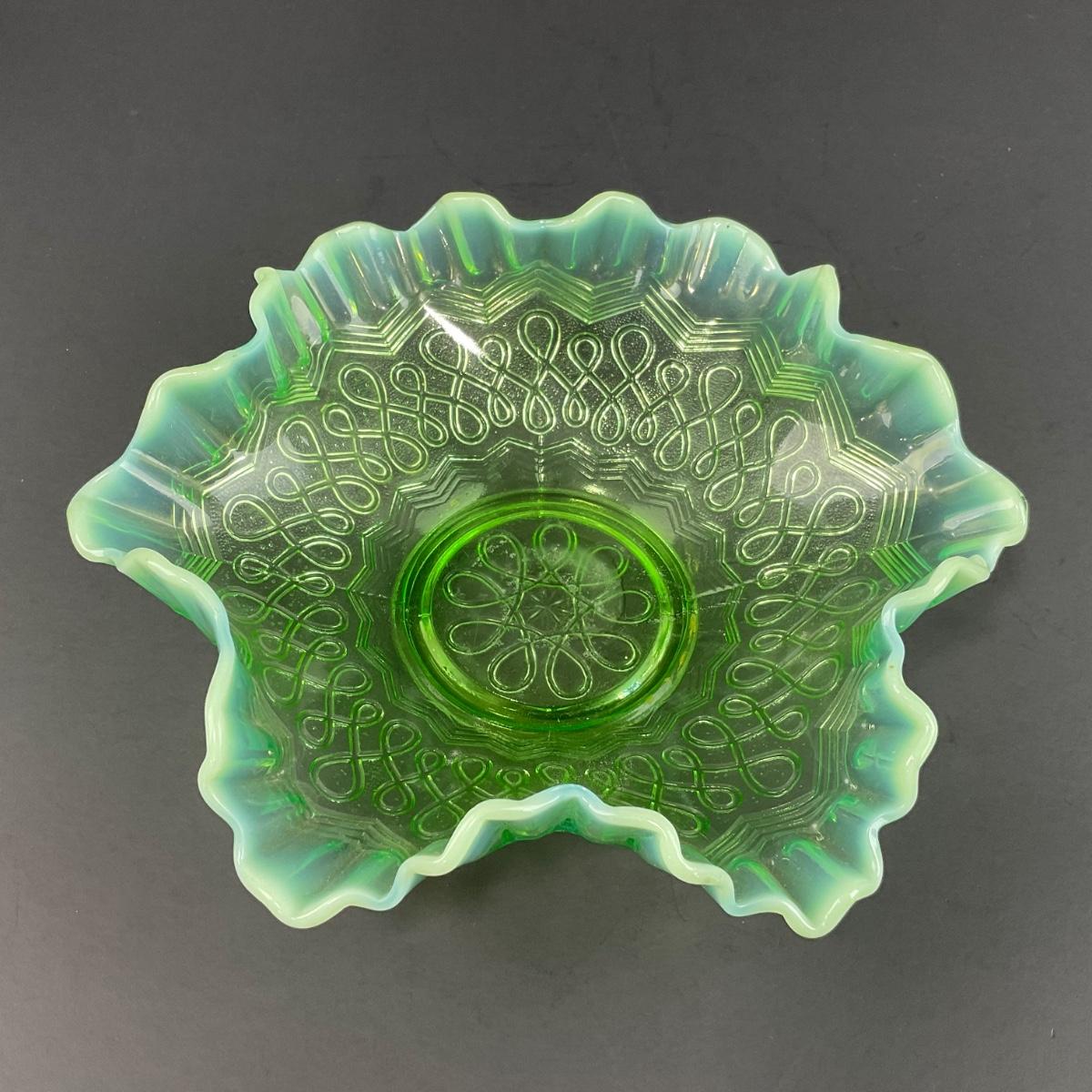 -121- GLASSWARE | Green Opalescent Jefferson Many Loops Small Bowl