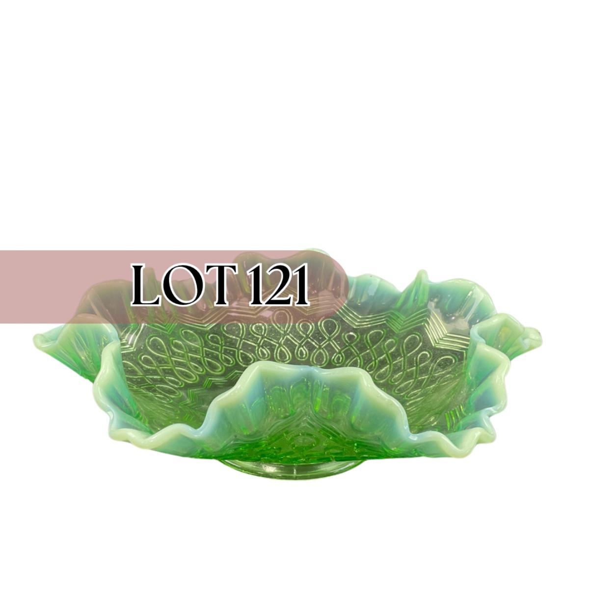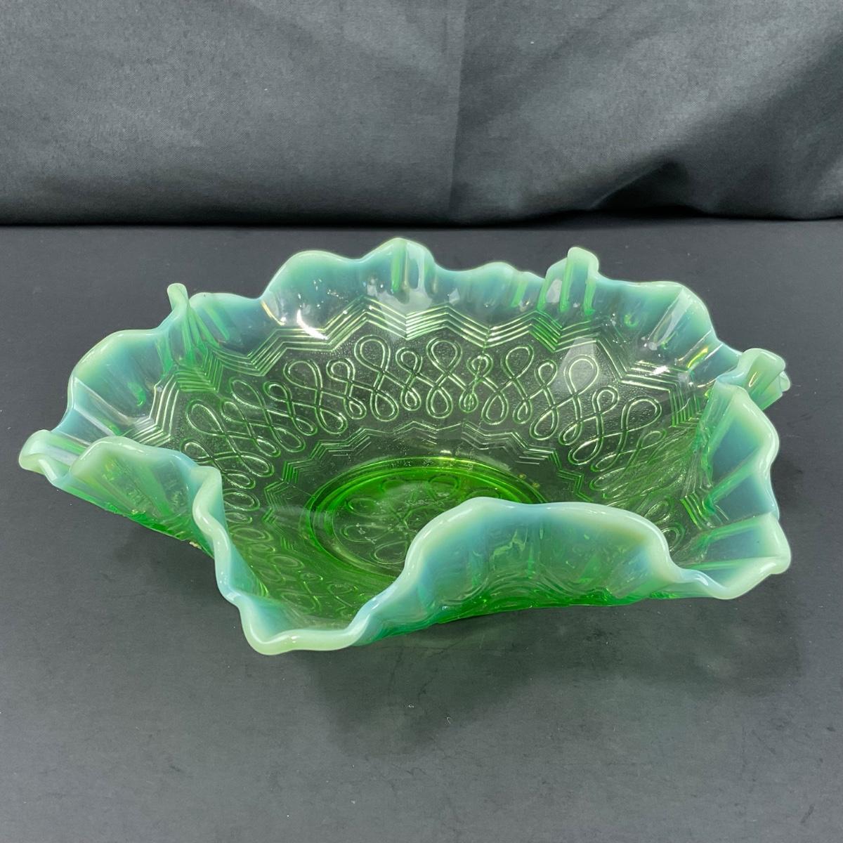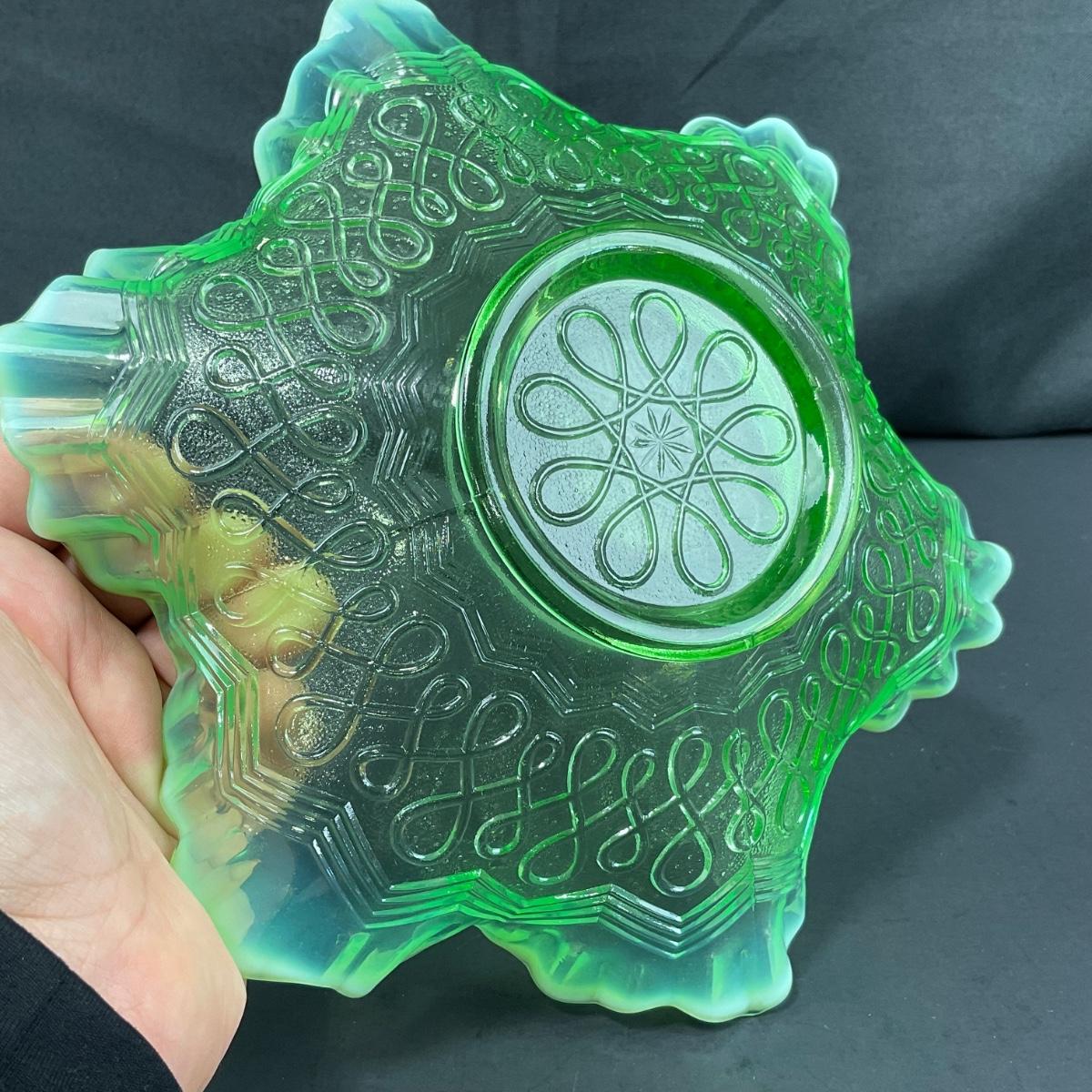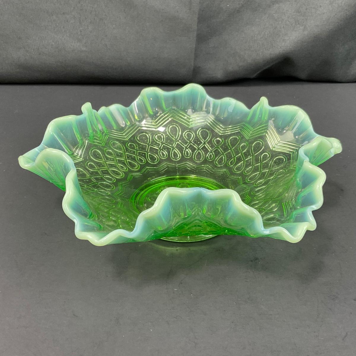 -121- GLASSWARE | Green Opalescent Jefferson Many Loops Small Bowl