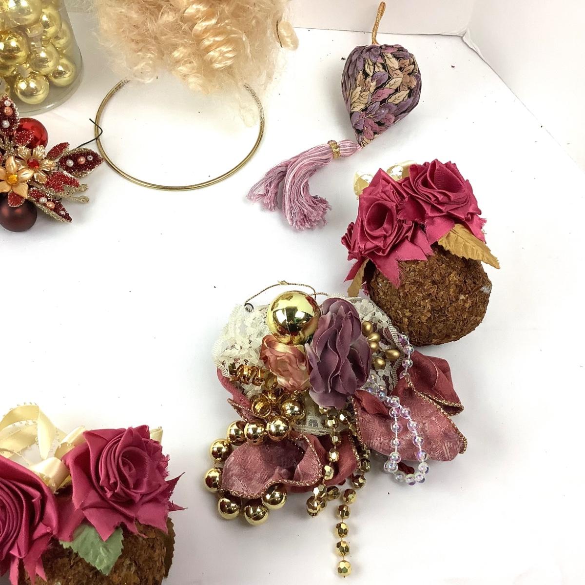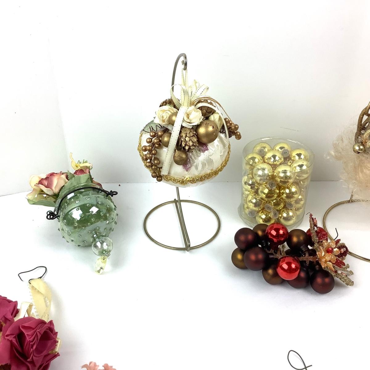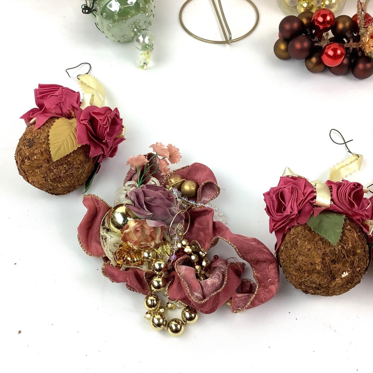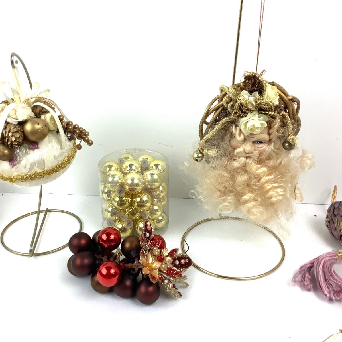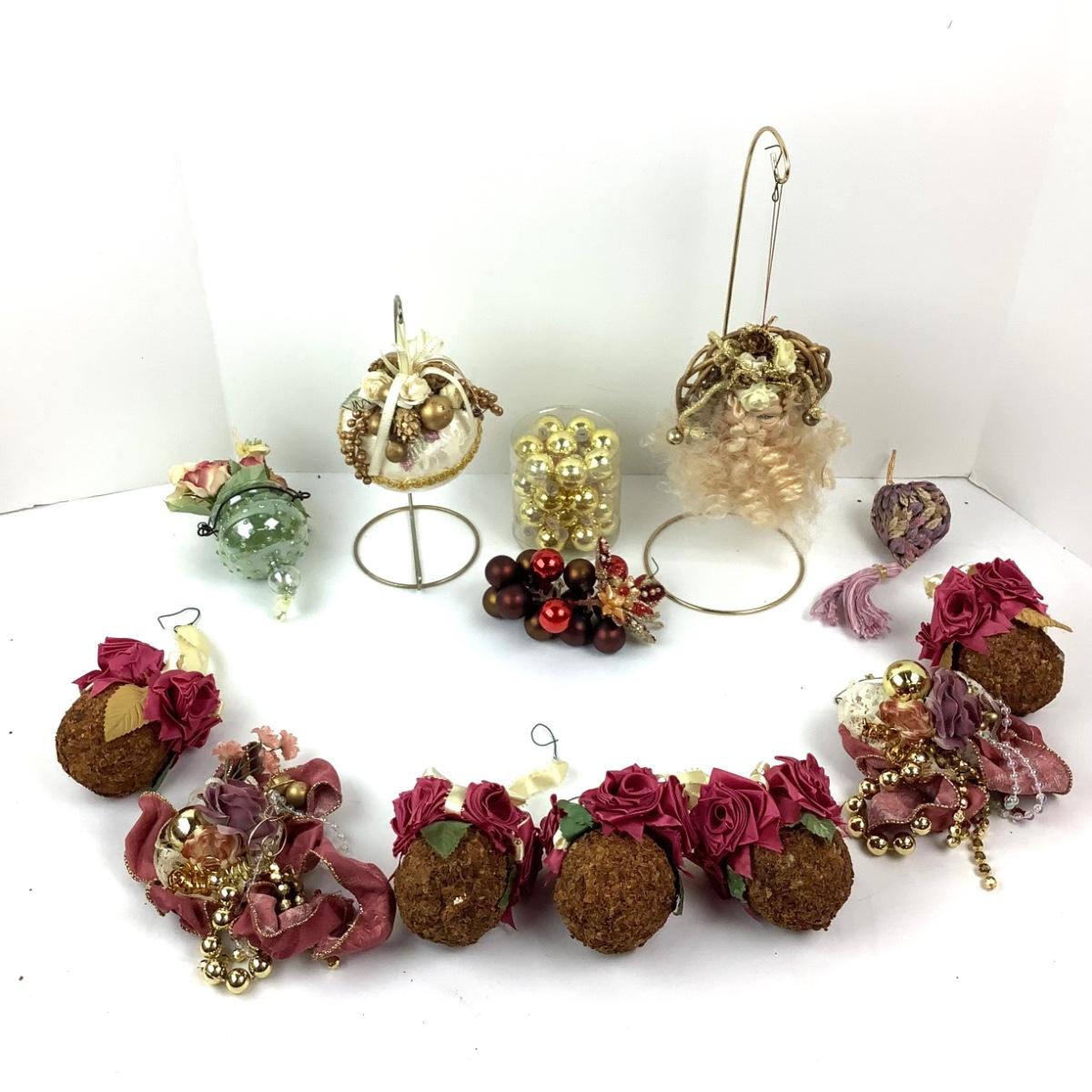 Ornaments are assorted, several potpourri, santa, miniature gold accent balls and more.