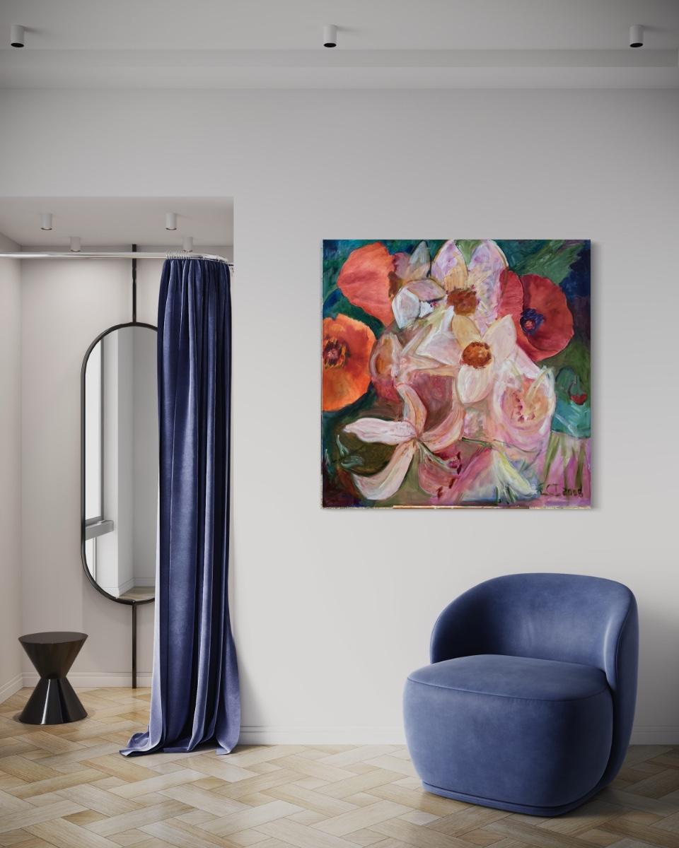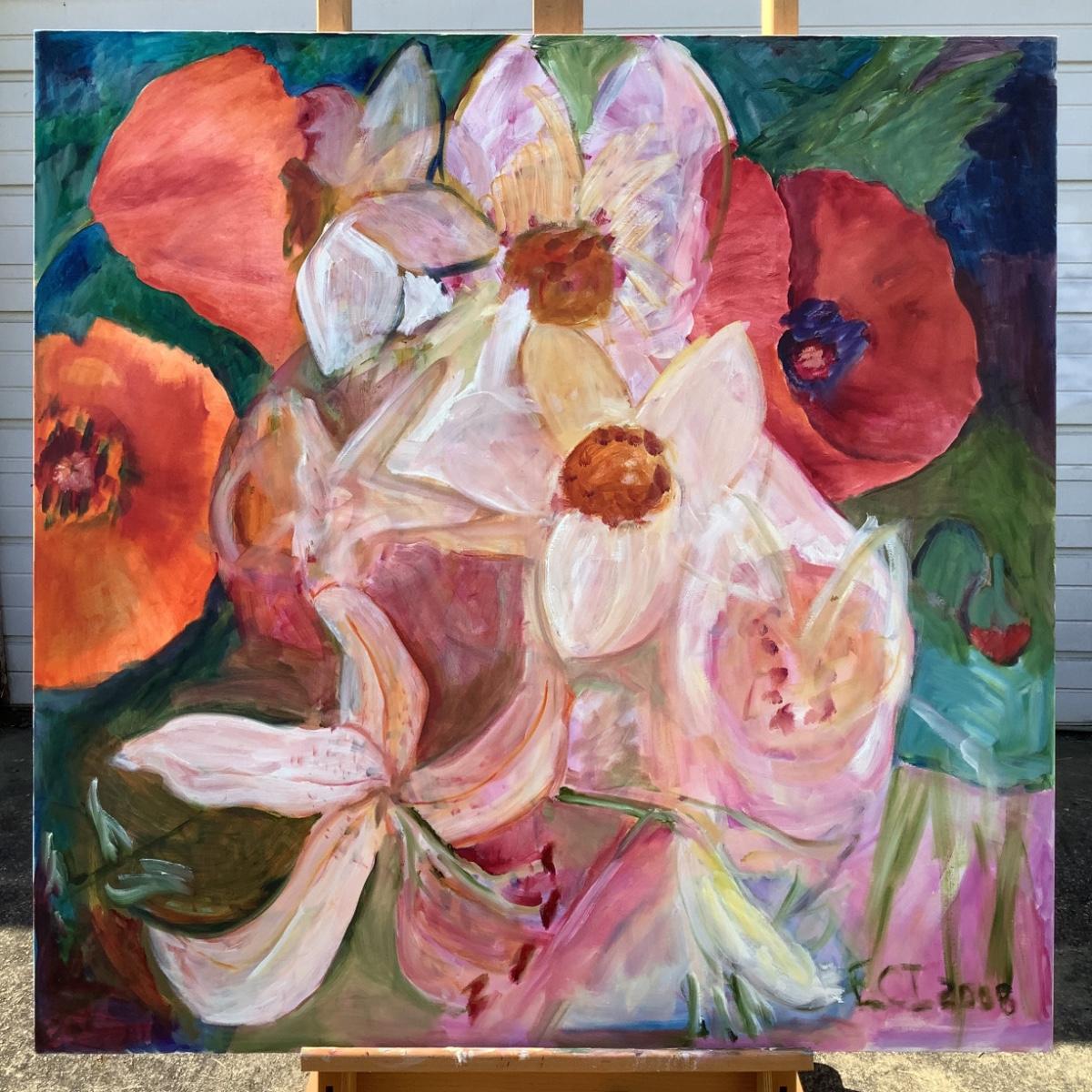 121 Lillies & Poppies 2008 Oil on Canvas by Ellen Into