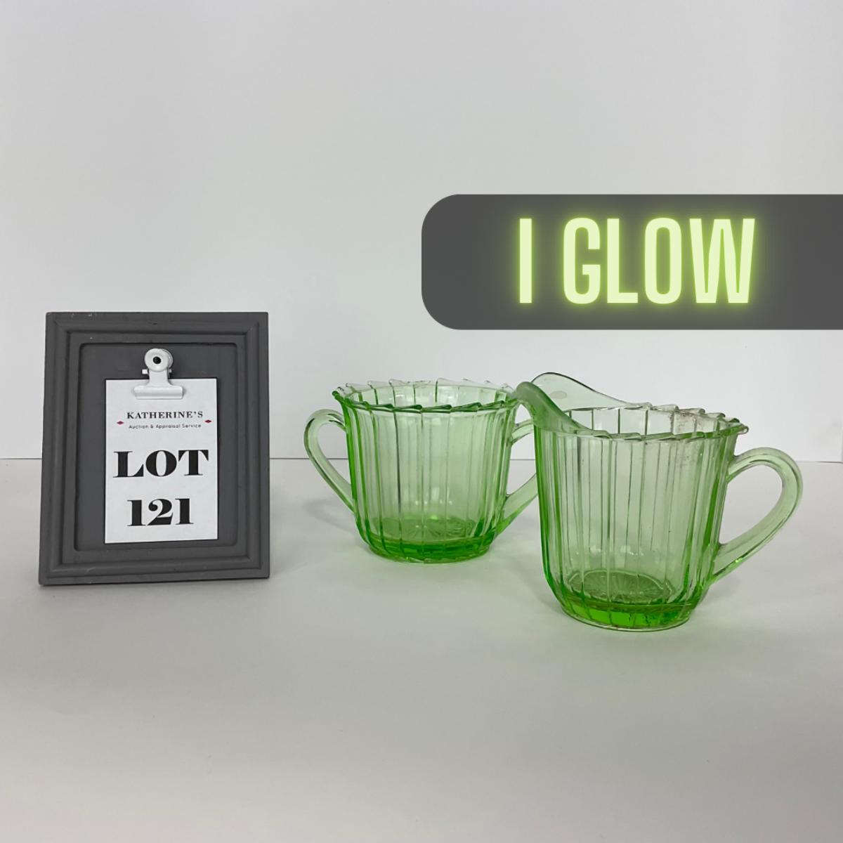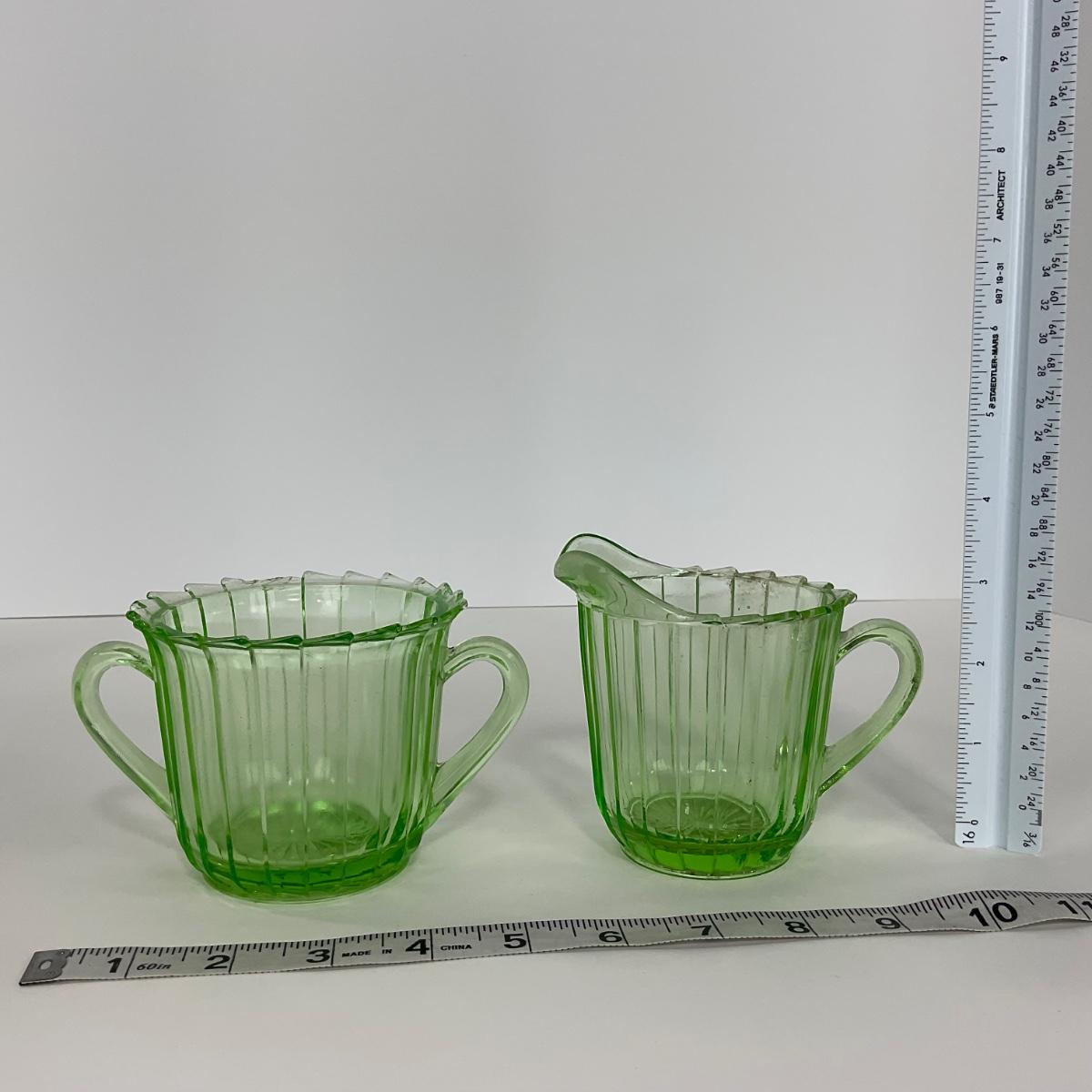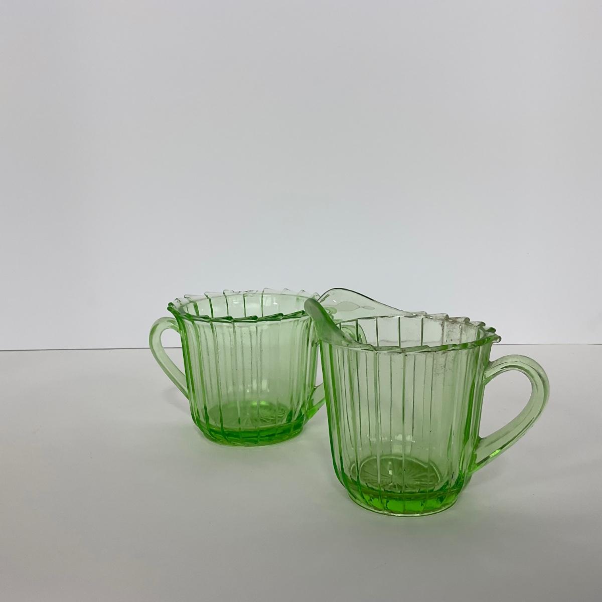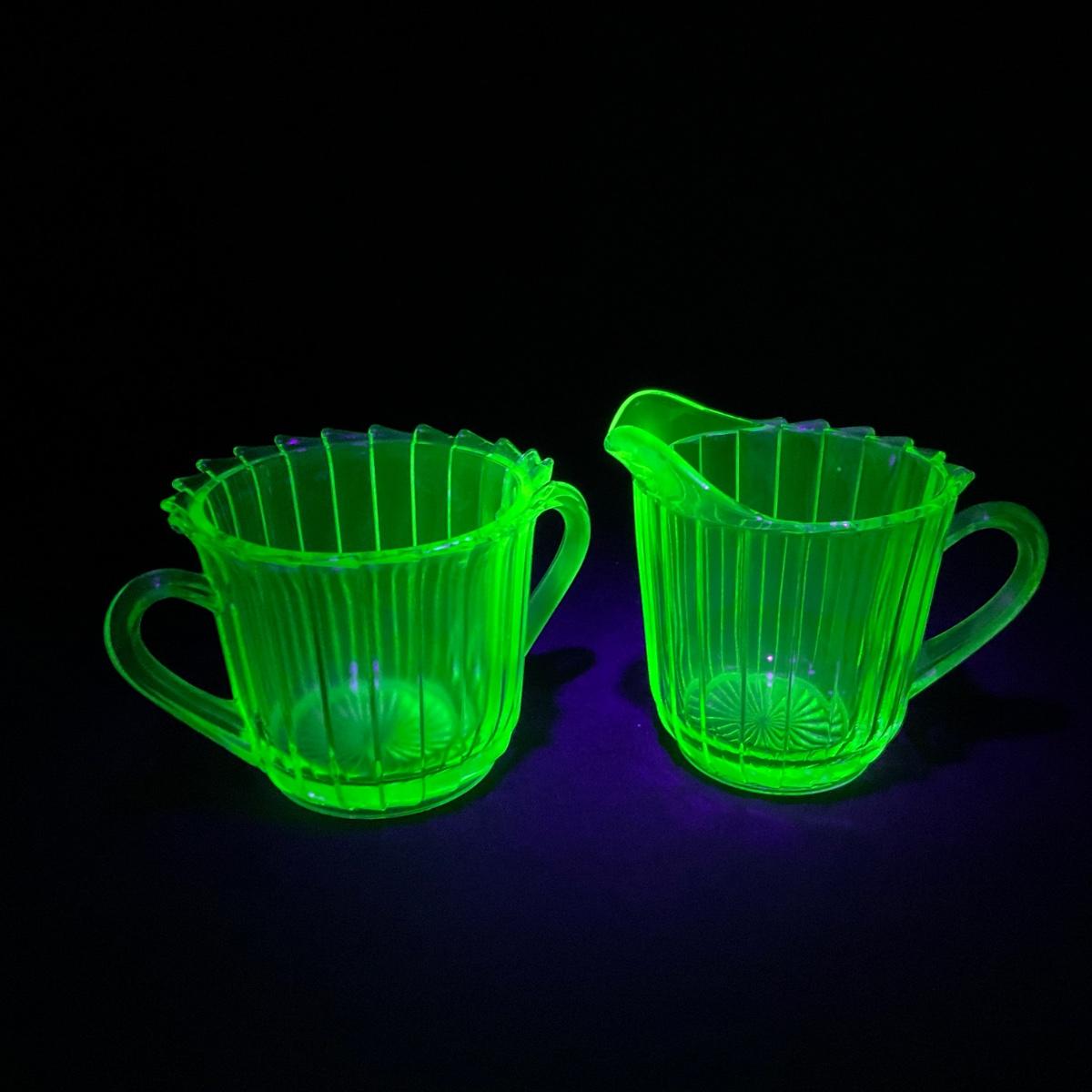 -121- URANIUM | Sierra Pinwheel Jeanette Glass Co. | Creamer & Sugar