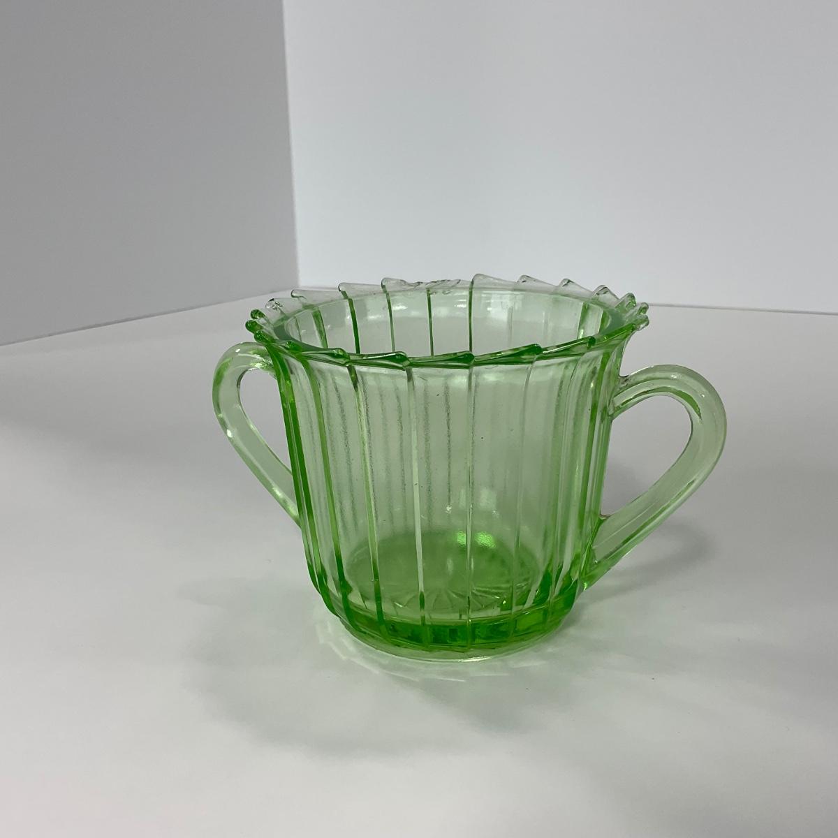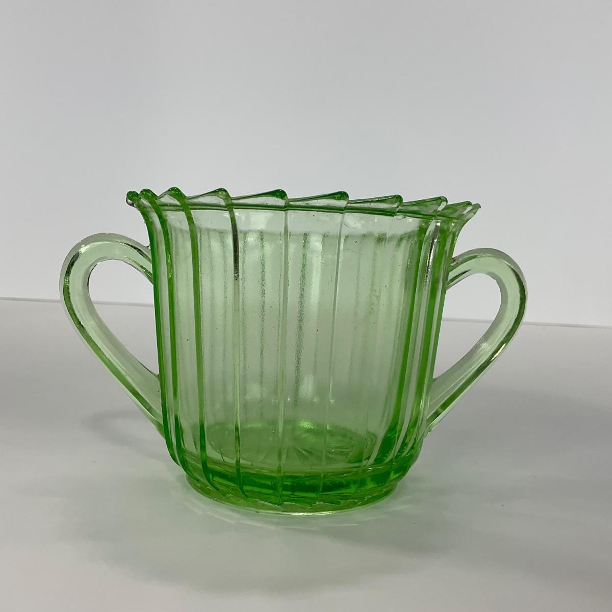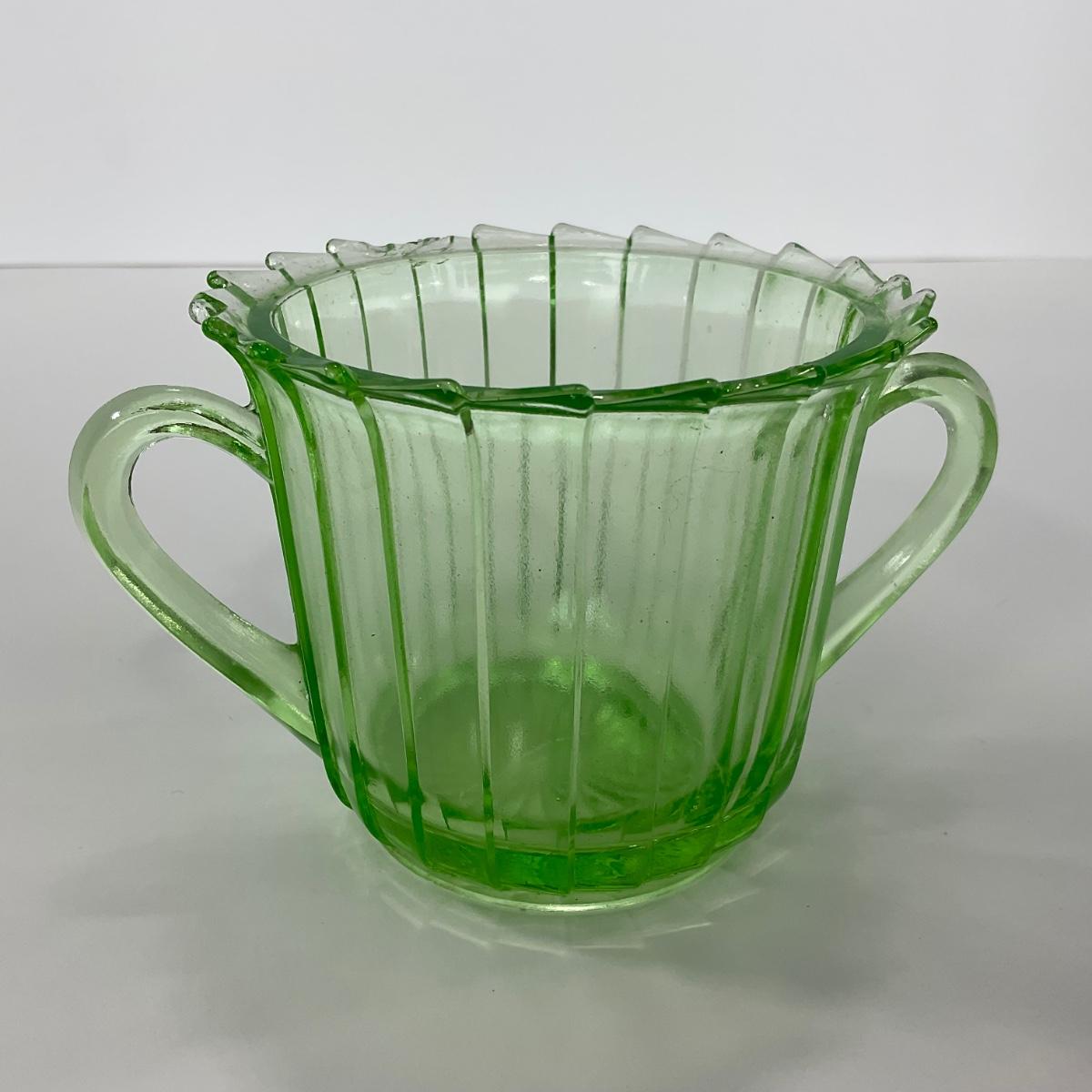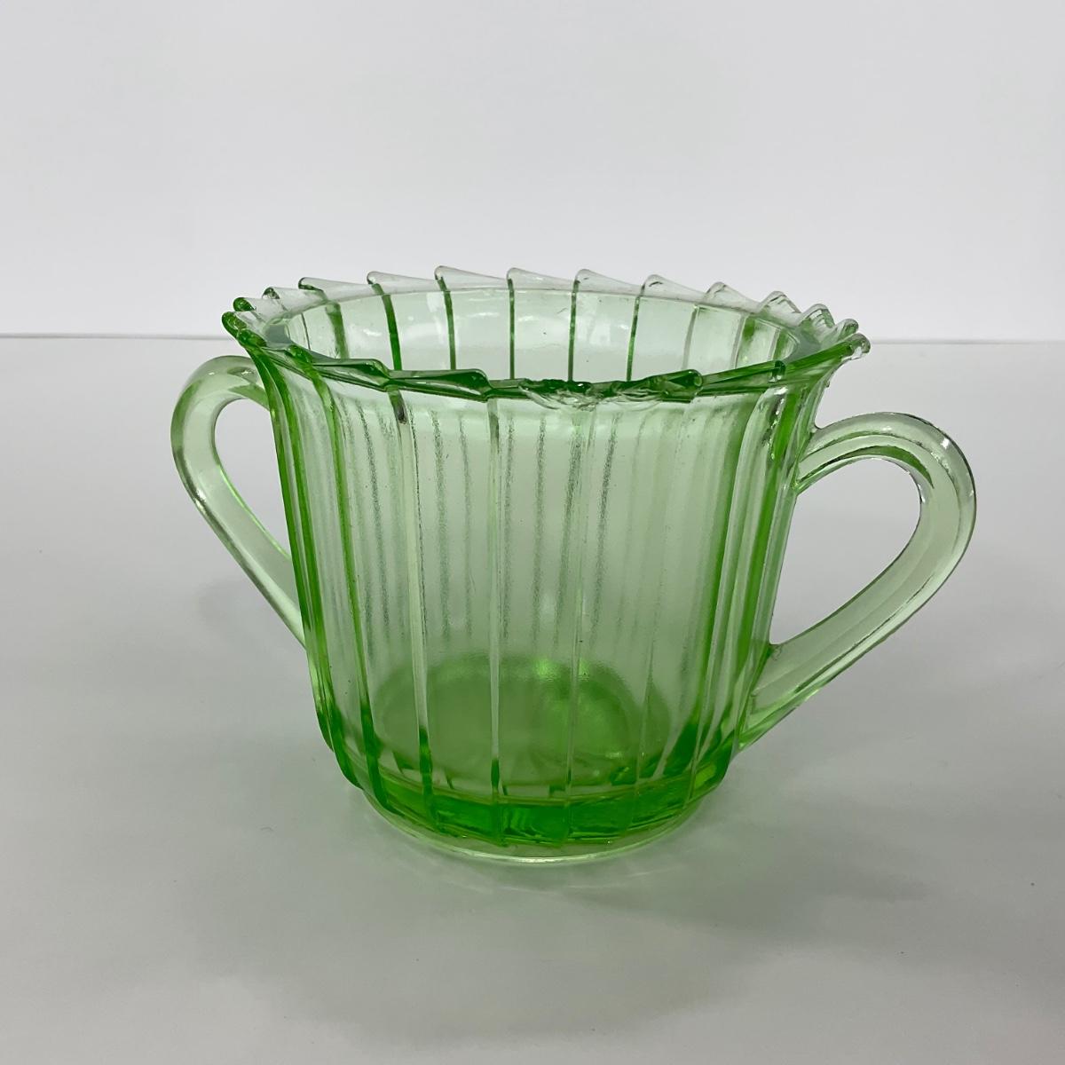 -121- URANIUM | Sierra Pinwheel Jeanette Glass Co. | Creamer & Sugar