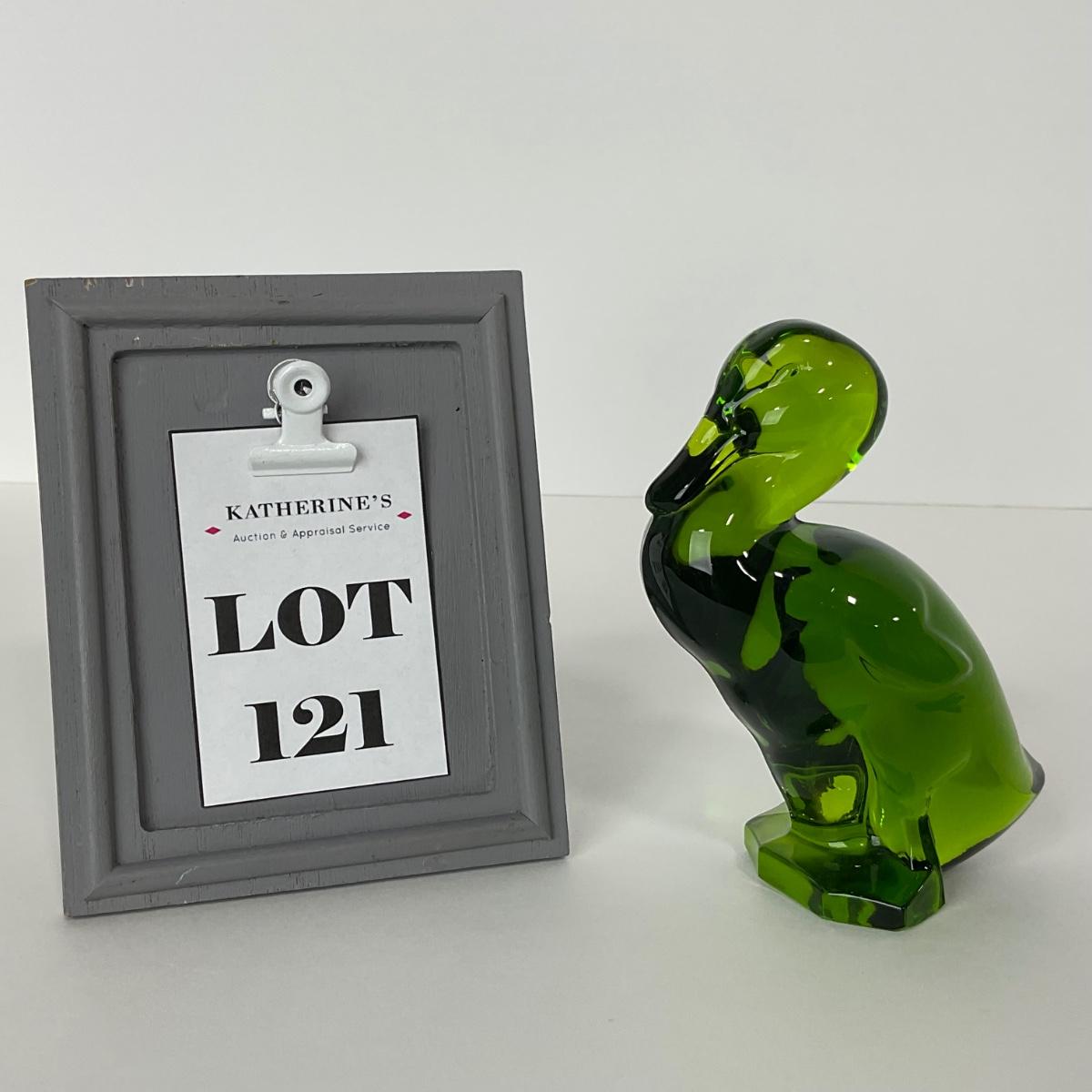 One Viking green epic fighting duck figure with head up. 3 1/2 inches wide by 4 1/2 inches tall. This piece has no damage, and appears to be in great shape with no visable chips, cracks, or broken pieces. Please see photos for details and condition. Any condition statement is given as a courtesy to a client, is an opinion, and should not be treated as a statement of fact. Reference to condition written, oral or within a condition report shall not be regarded as a full account of condition and may not include all defects, alterations, or restorations. Absence of a condition report does not imply a lot is flawless or lacking imperfections or damage. Katherine’s Auction & Appraisal Service shall have no responsibility for any error or omission. Returns shall not be accepted on the basis of condition. ::: Shipping is available on this lot. If you require shipping you must let us know at the close of the auction. We will coordinate with you after the item has been won. Shipping fees will include insurance up to or exceeding the value of all items being mailed. If you have any questions regarding this lot please contact the auctioneer either via this website, by direct email or by phone. PICK UP TIMES and other important information can be found in the TERMS and DESCRIPTION of the auction. Please take a look for pertinent information. Thanks!