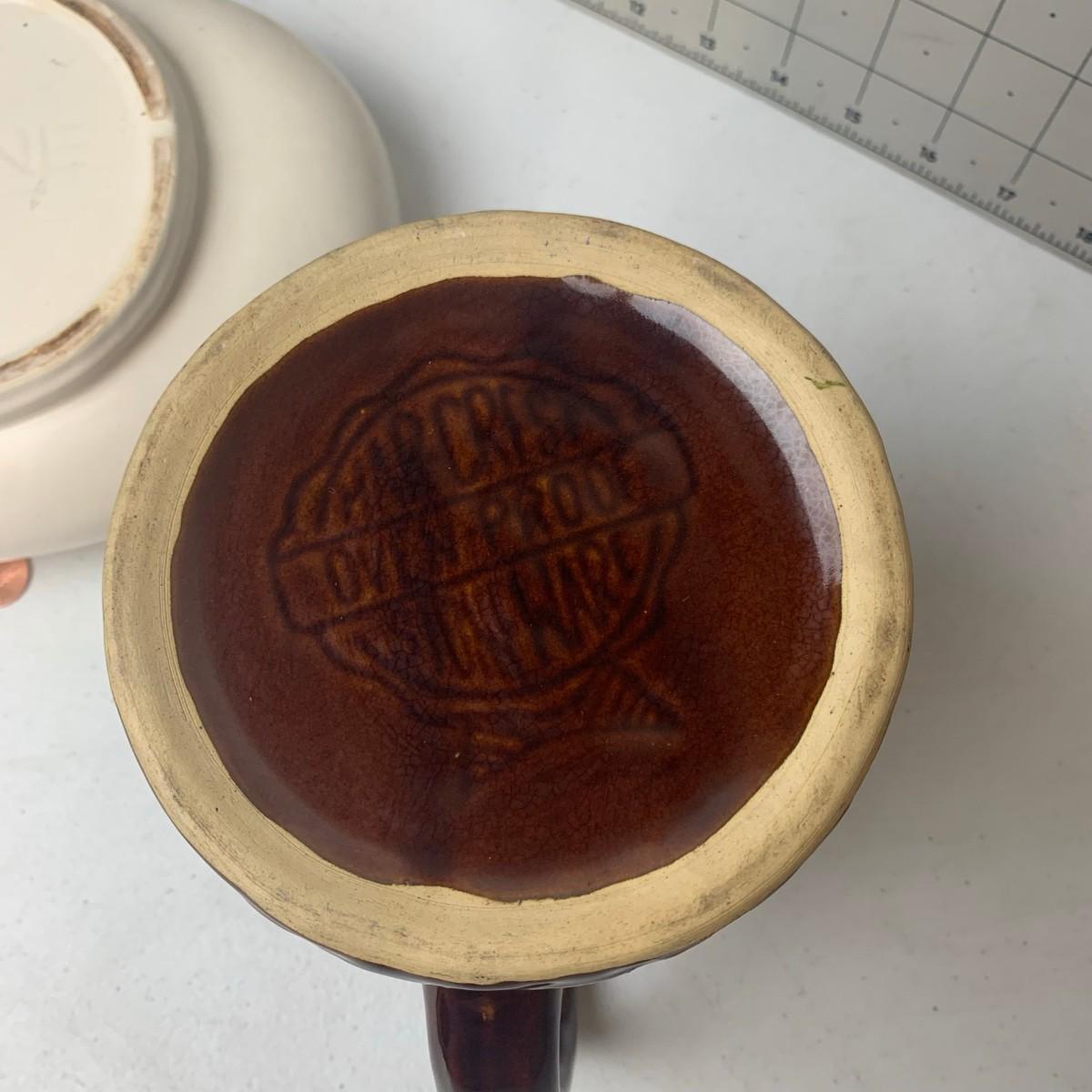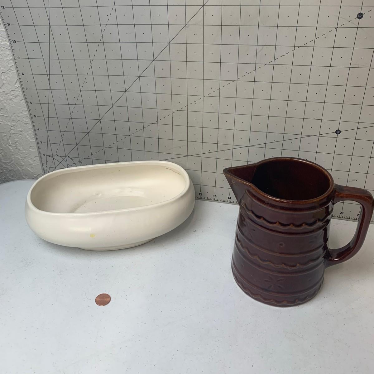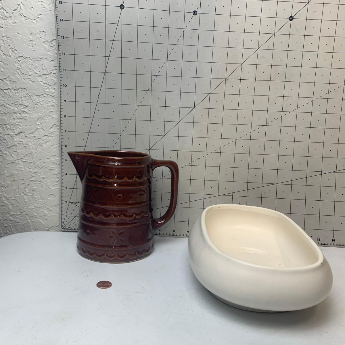 #121 Vintage Brown Drip Marcrest Daisy & Dot Oven-Proof Stoneware Pitcher & Floraline Pottery Piece