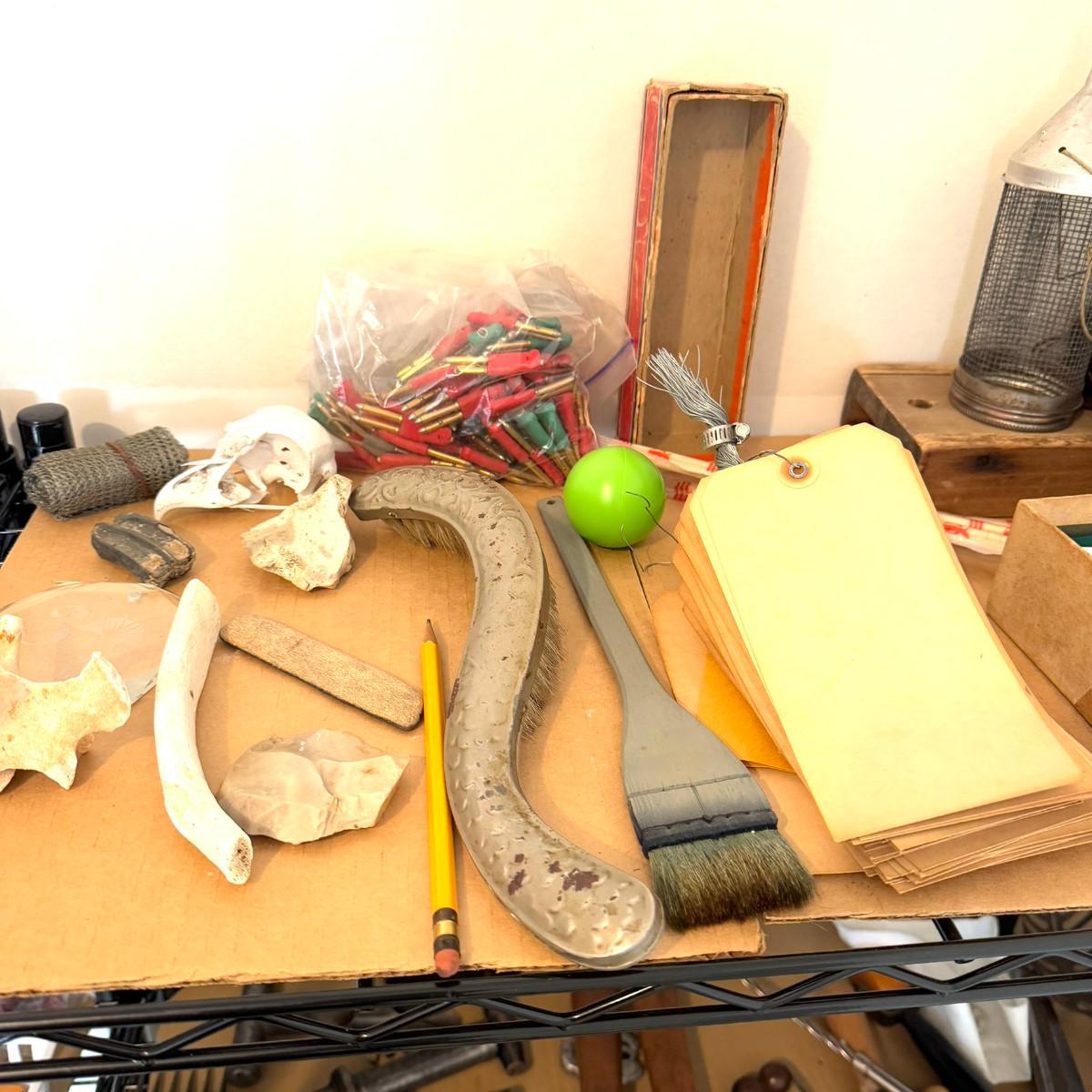 1211 Miscellaneous Found Mixed Media With Wire Shelf
