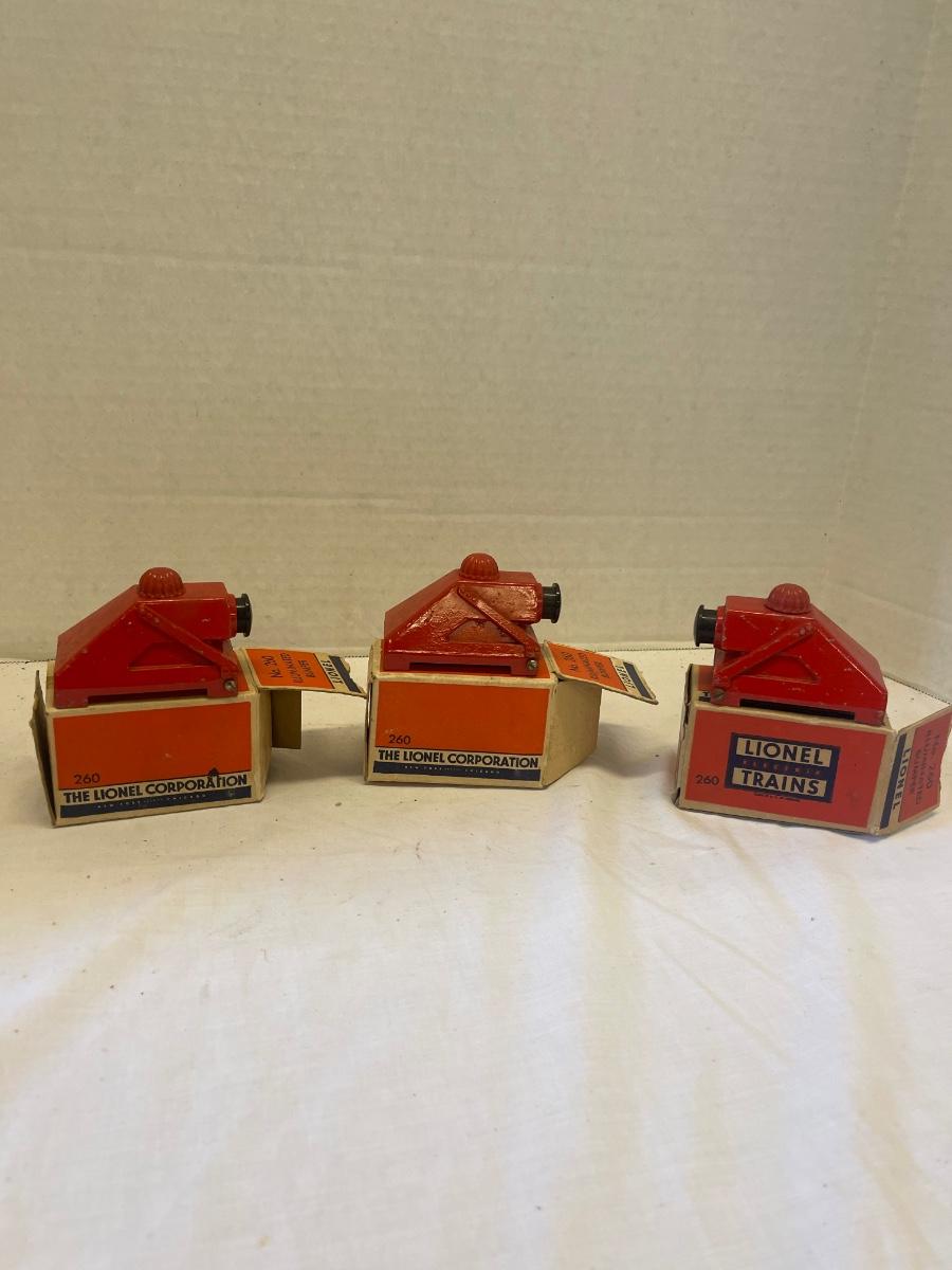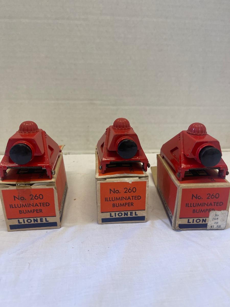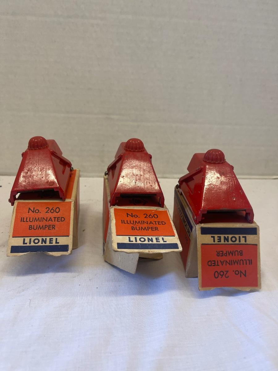 Qty (3) Vintage Lionel Model 260 Illuminated Bumpers. All bumpers in overall good condition, comes with boxes. .