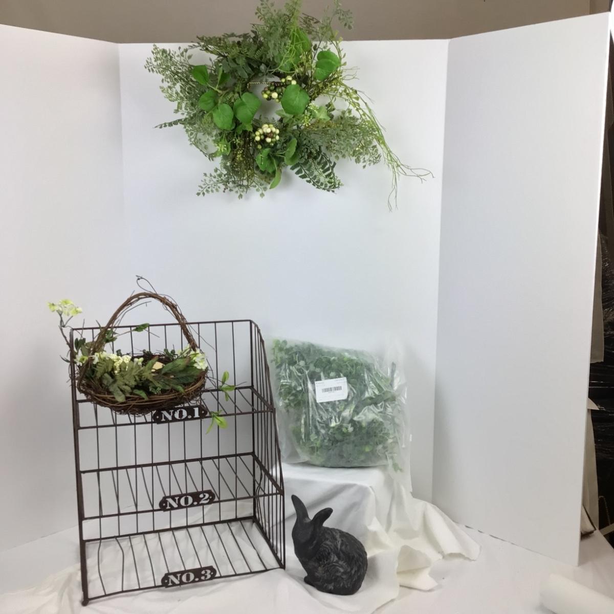 1252 Bunny Metal Wire Shelf with Garden Decor and Artificial Garland Greens