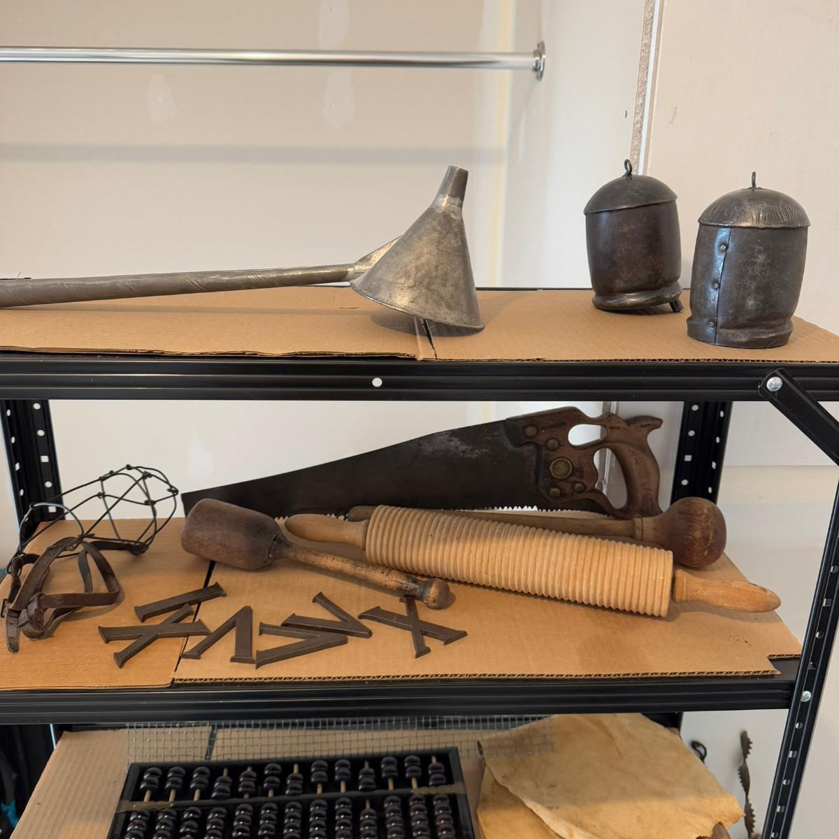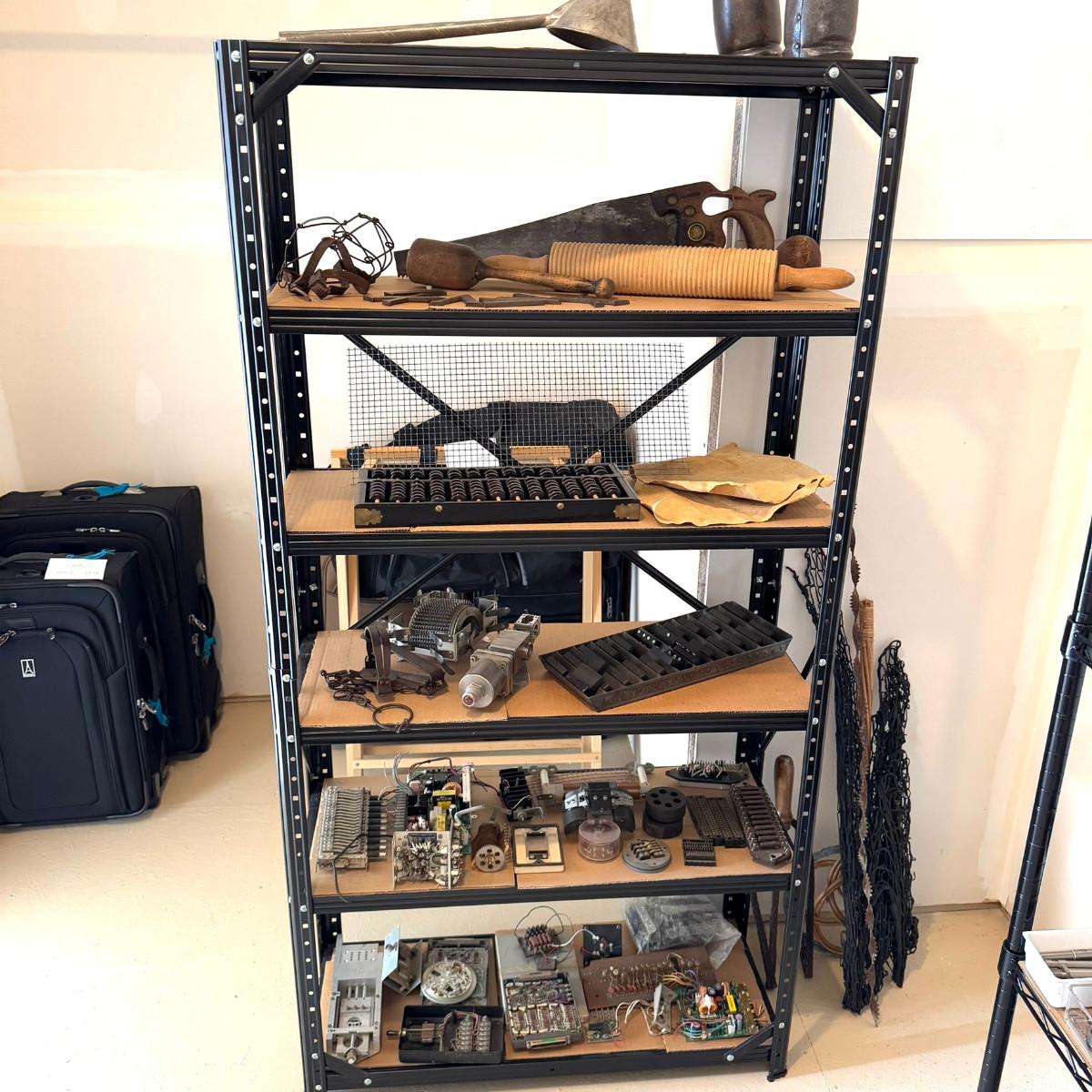1213 Miscellaneous Found Mixed Media With Metal Shelf