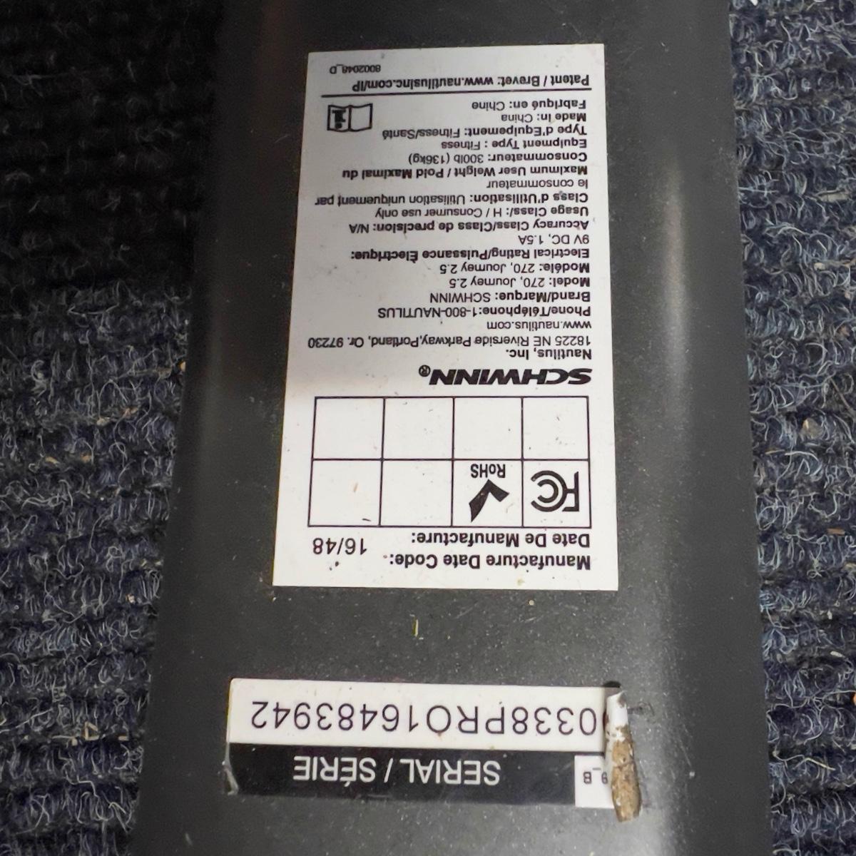 1214 Schwinn 270 Nautilus Recumbent Bike Model 270