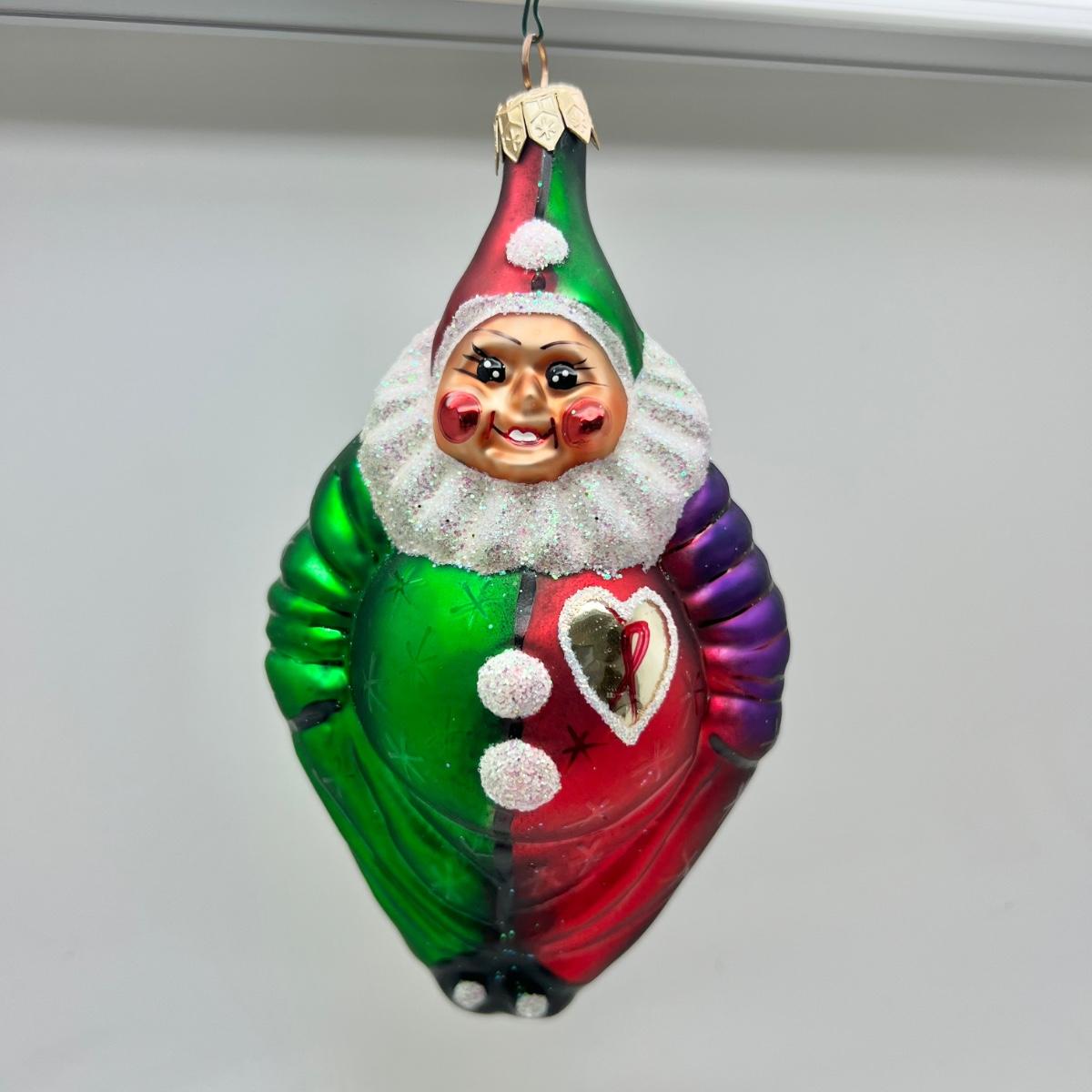 1215 Christopher Radko 1997 Hand Blown Glass Caring Clown Ornament