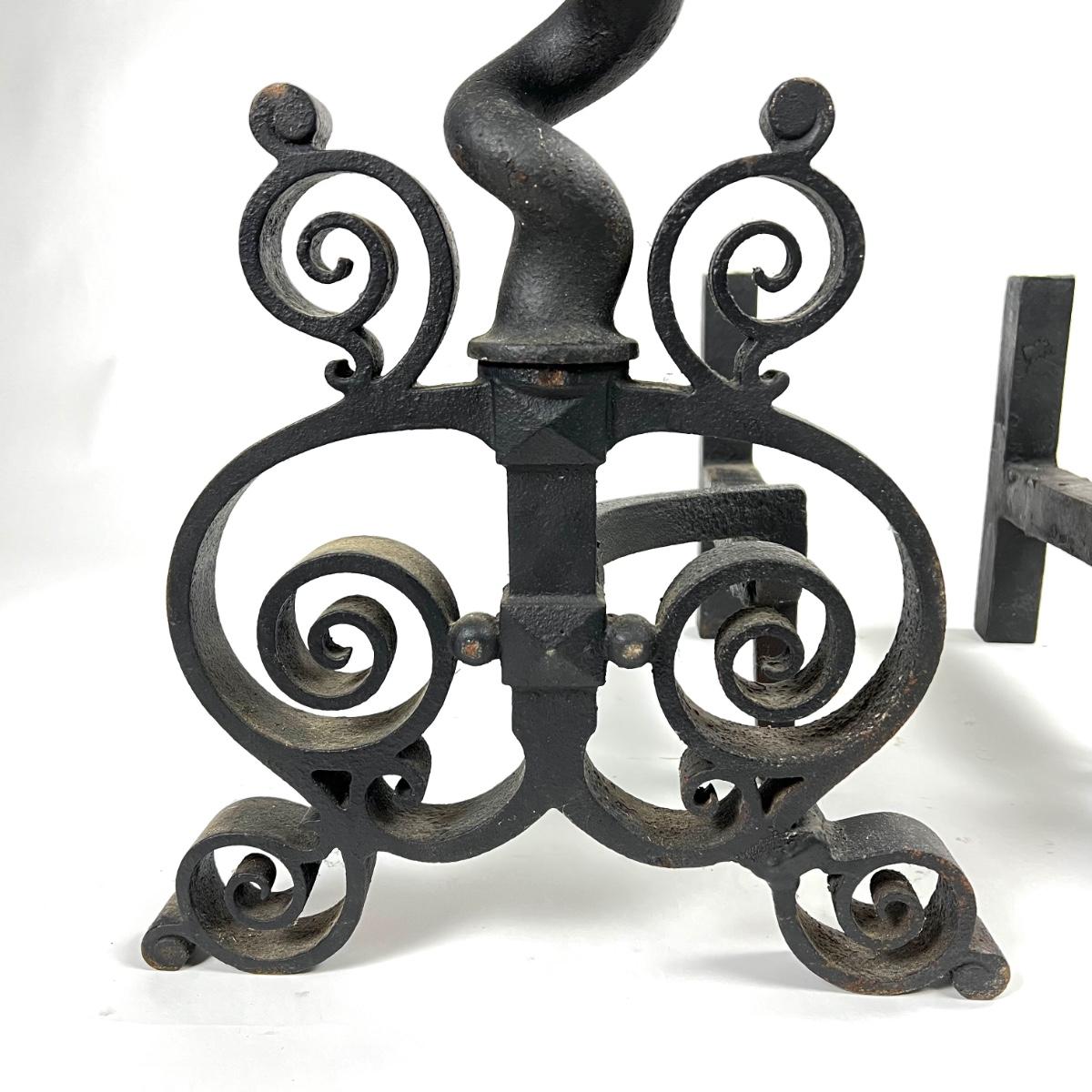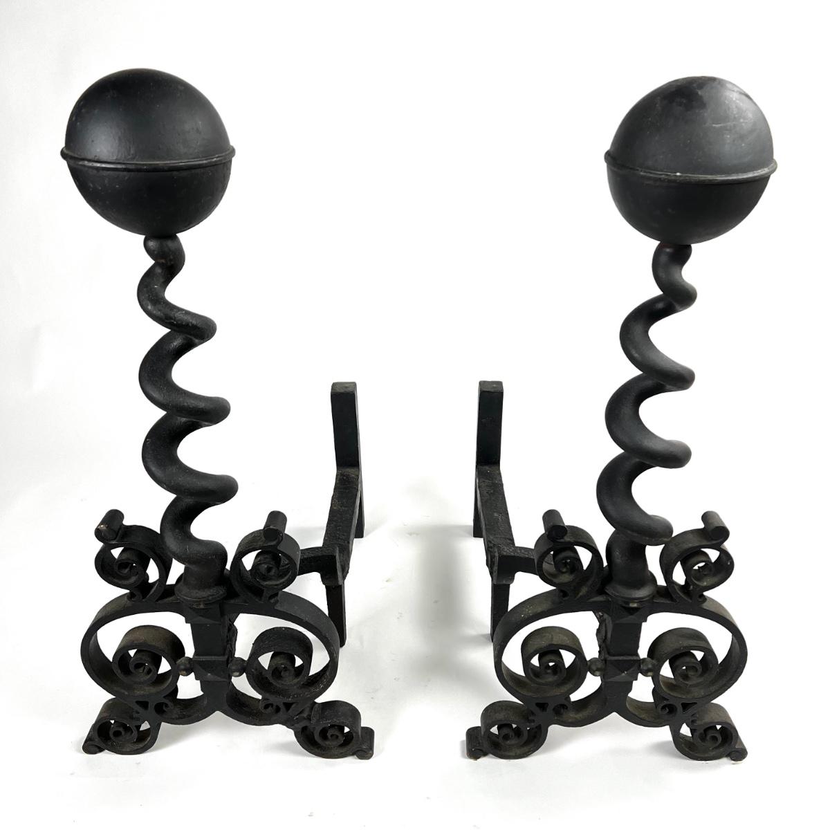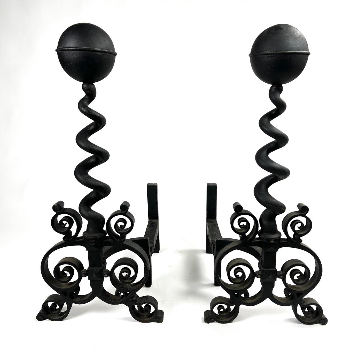 1215 Very Large Vintage Arts & Craft Style Iron Andirons