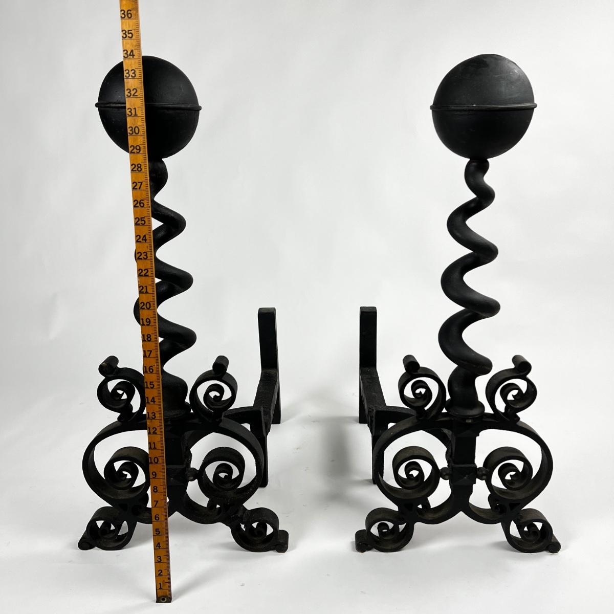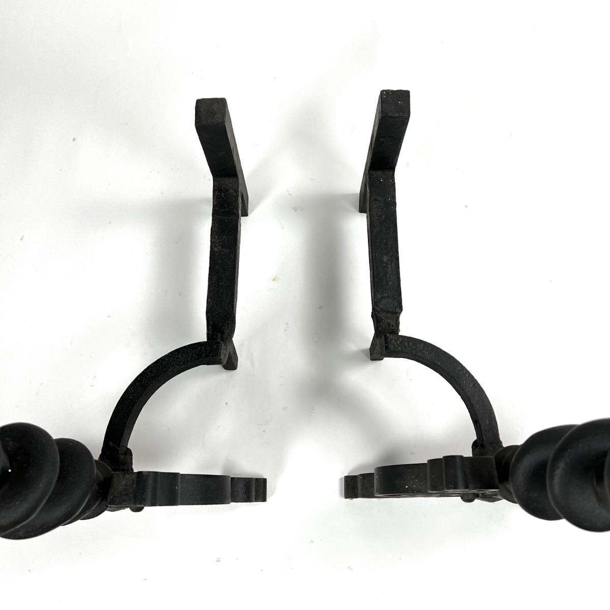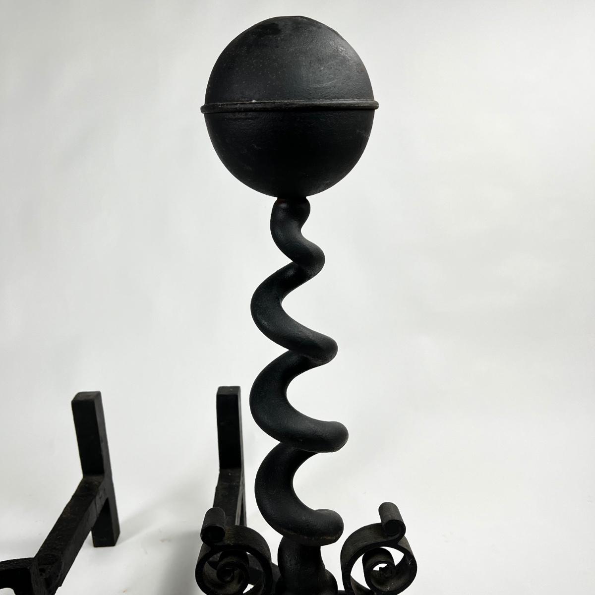 1215 Very Large Vintage Arts & Craft Style Iron Andirons