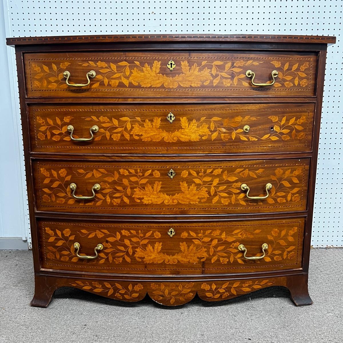1218 Antique Dutch Marquetry Four Drawer Dresser