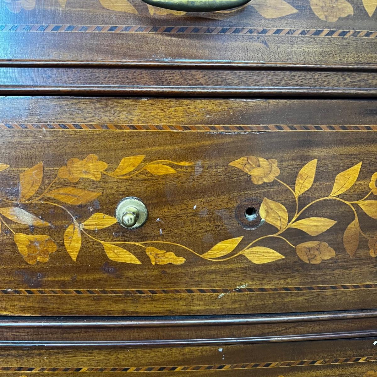 Antique Dutch Marquetry Inlay Four Drawer Dresser. Missing one pull.