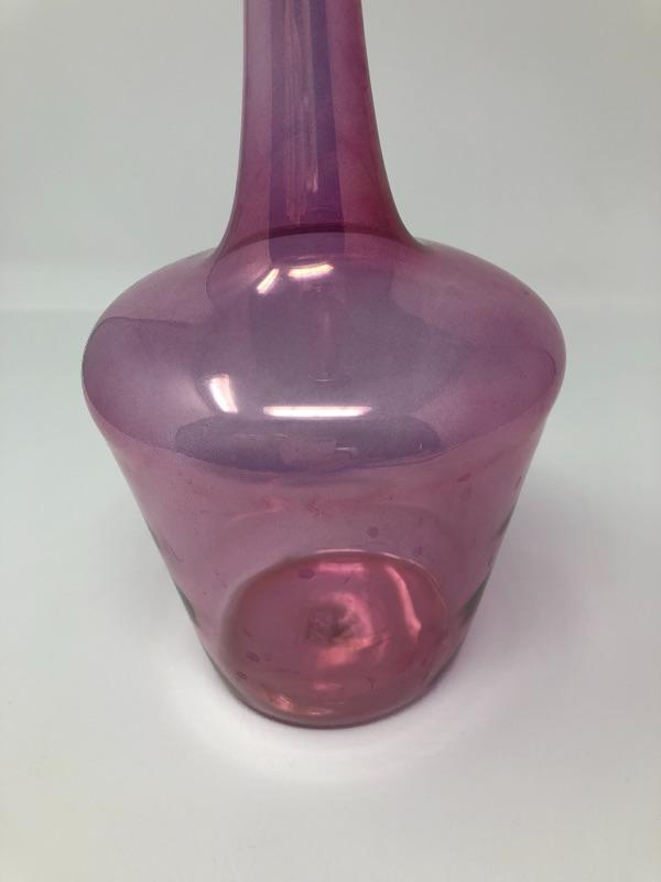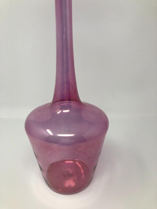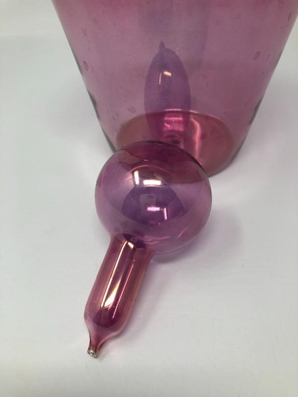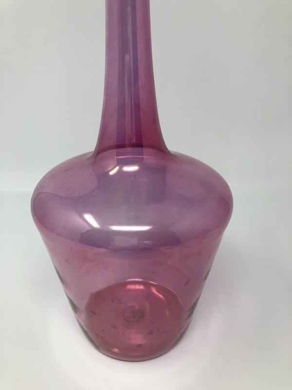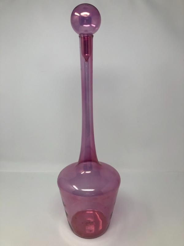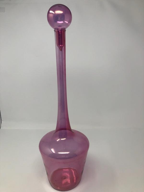 This beautiful glass decanter is 18.5 Inches Tall x 4 w. It's a thin glass hand crafted in the mid century.