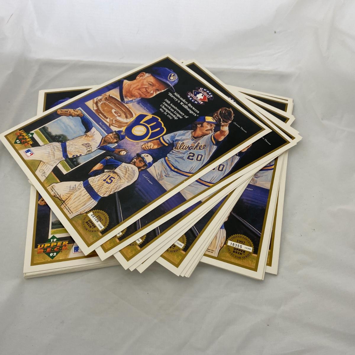 Stack of 20 plus 1992 Upper Deck collector series 10th Anniversary. Please see photos for details and condition. ::: Shipping is available on this lot. If you require shipping you must let us know at the close of the auction. We will coordinate with you after the item has been won. Shipping fees will include insurance up to or exceeding the value of all items being mailed. If you have any questions regarding this lot please contact the auctioneer either via this website, by direct email or by phone. PICK UP TIMES and other important information can be found in the TERMS and DESCRIPTION of the auction. Please take a look for pertinent information. Thanks!