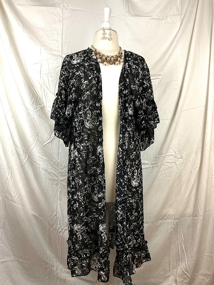 122 Black and White Wrap/ Coverup with Gold Specks, Gold and Pearl Necklace with matching earrings