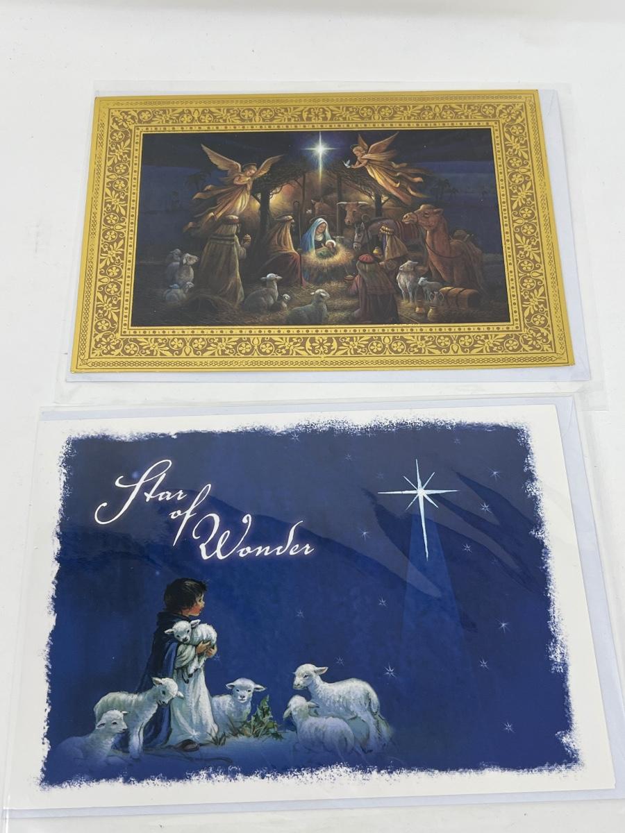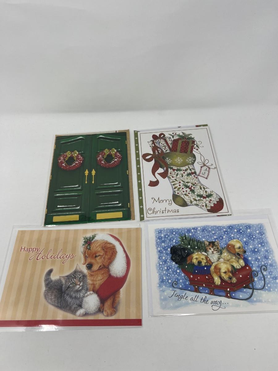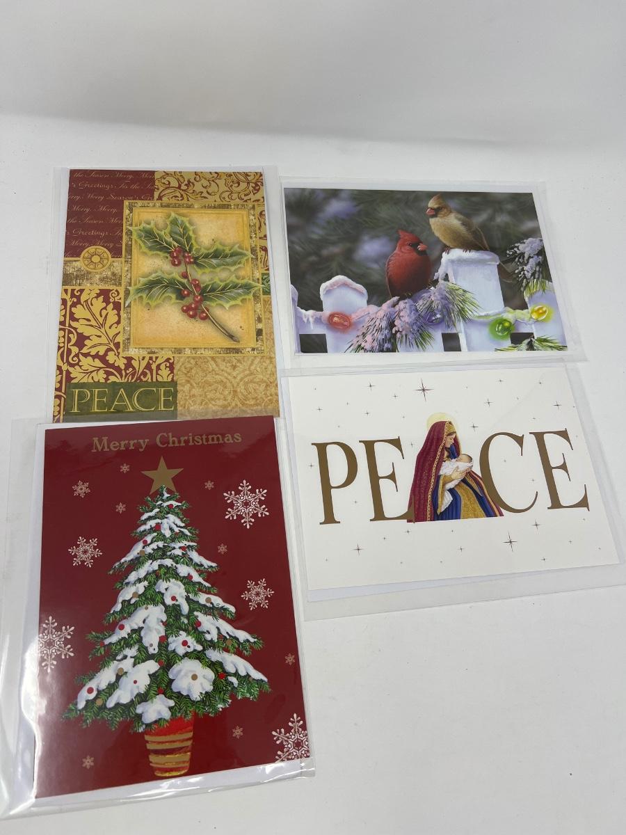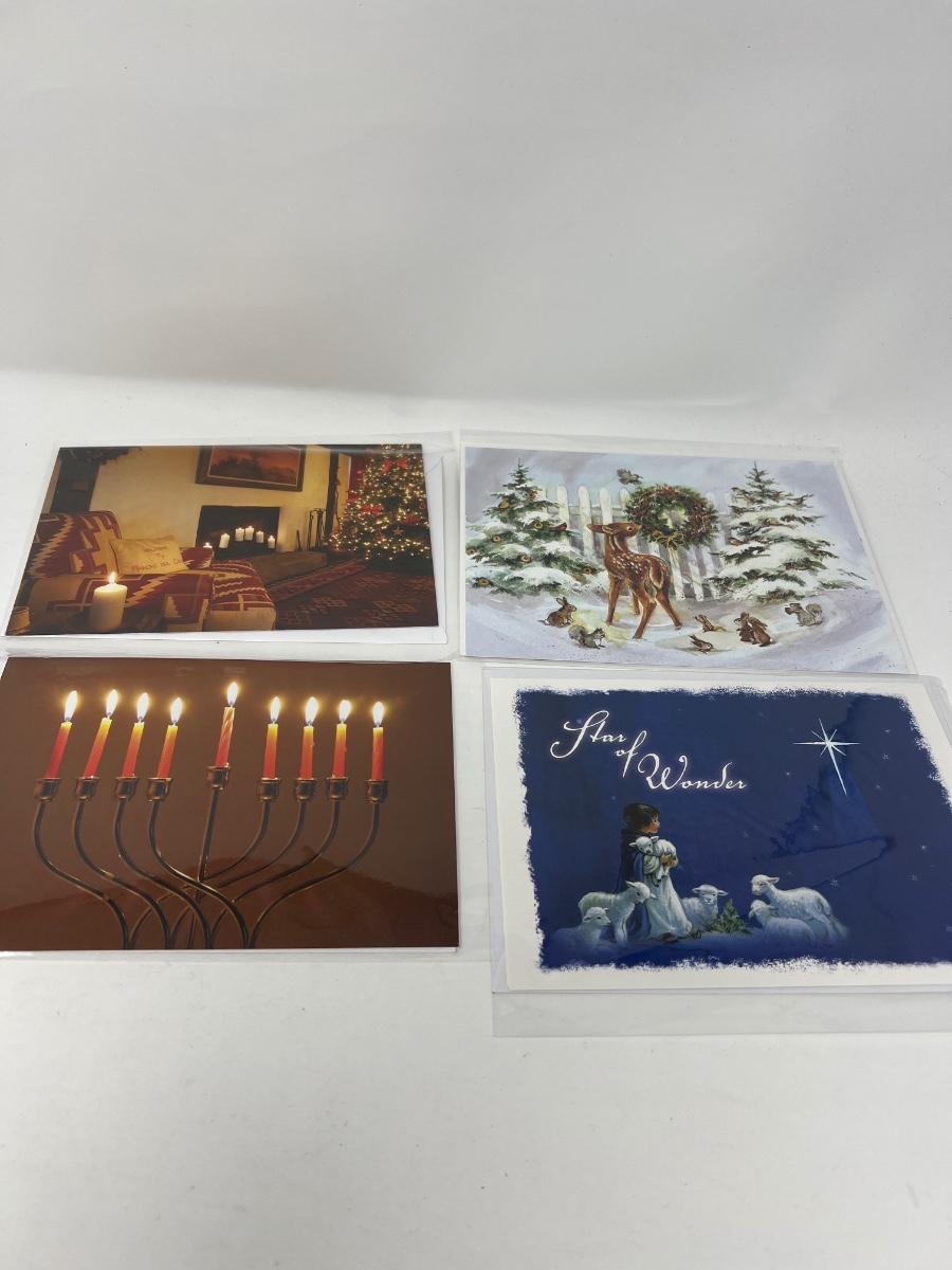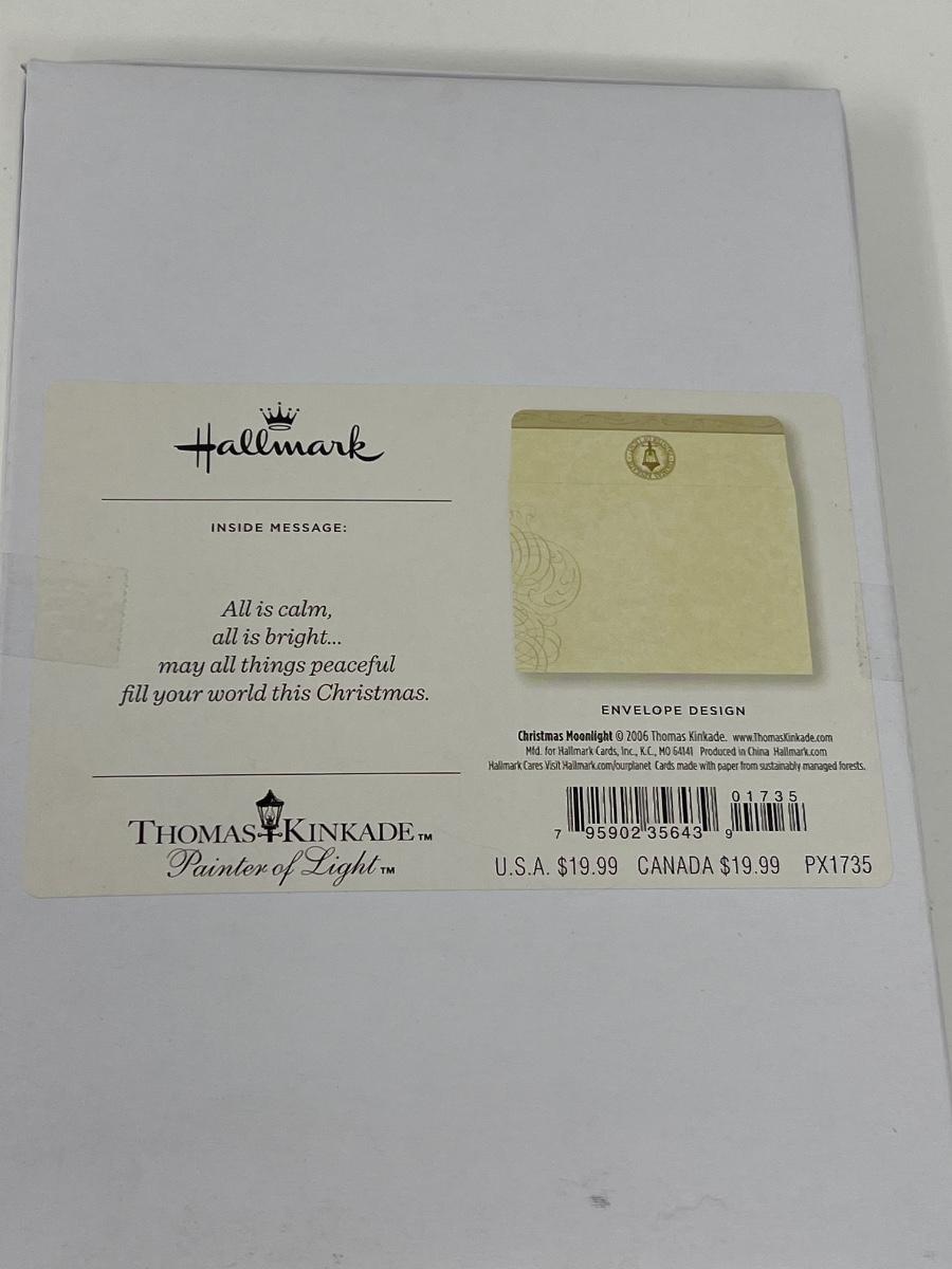 A variety of Brand new greeting cards fir the Christmas season. Each card has an envelope and are inserted in a clear plastic cover. Box of Thomas Kinkade cards has not been opened.