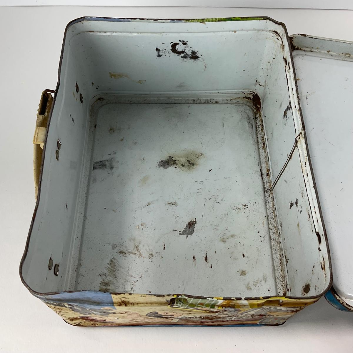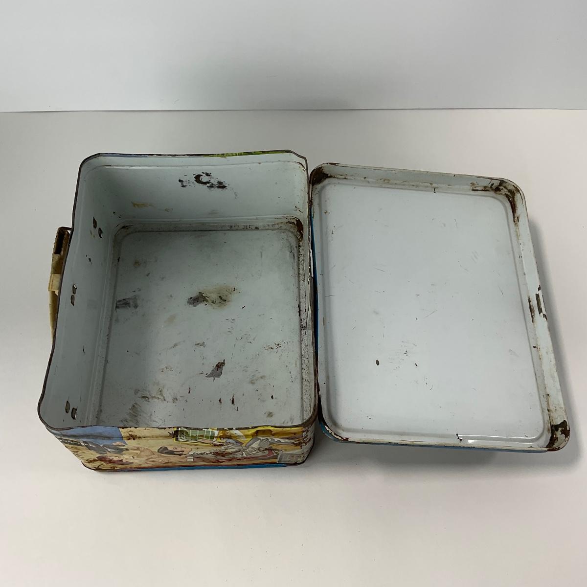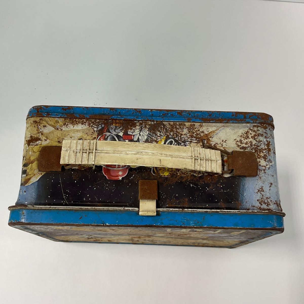 One vintage UFO space metal lunch box NO THERMOS, in rough condition with rust and some damage, but awesome subject matter. Please see photos for details and condition. ::: Shipping is available on this lot. If you require shipping you must let us know at the close of the auction. We will coordinate with you after the item has been won. Shipping fees will include insurance up to or exceeding the value of all items being mailed. If you have any questions regarding this lot please contact the auctioneer either via this website, by direct email or by phone. PICK UP TIMES and other important information can be found in the TERMS and DESCRIPTION of the auction. Please take a look for pertinent information. Thanks!