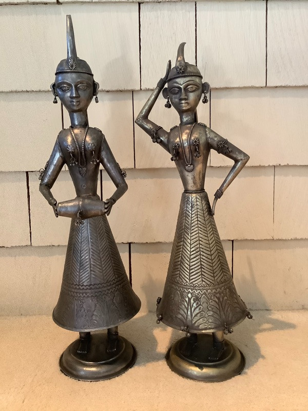 Two hand crafted metal statues imported from India. Both measure 21” tall
