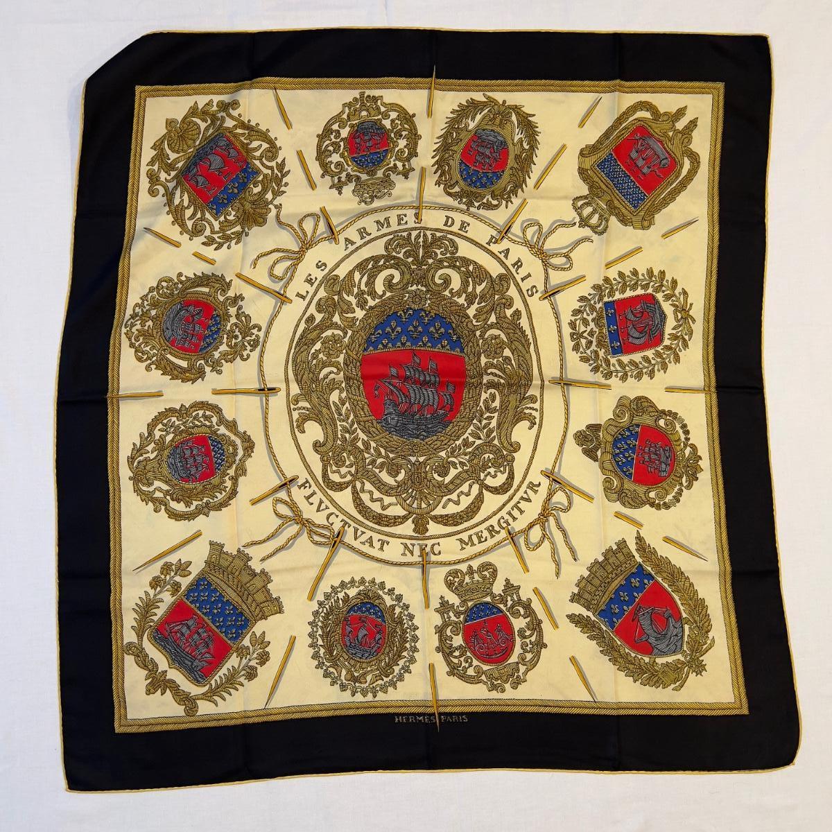 122 Authentic HERMÉS Carre 90 Silk Scarf Les Armes De Paris by Hugo Grygkar 1954