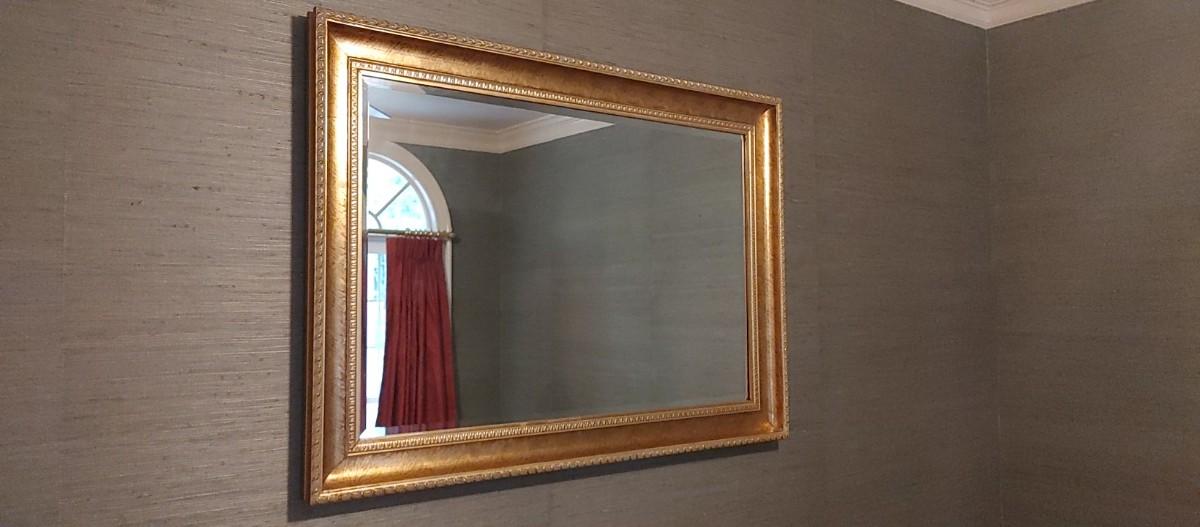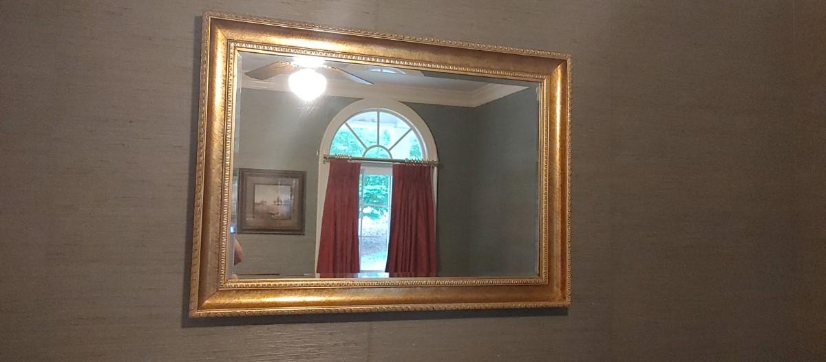 #122 Large Beveled Edge Mirror is perfect, great quality & very heavy. Measurements to post.