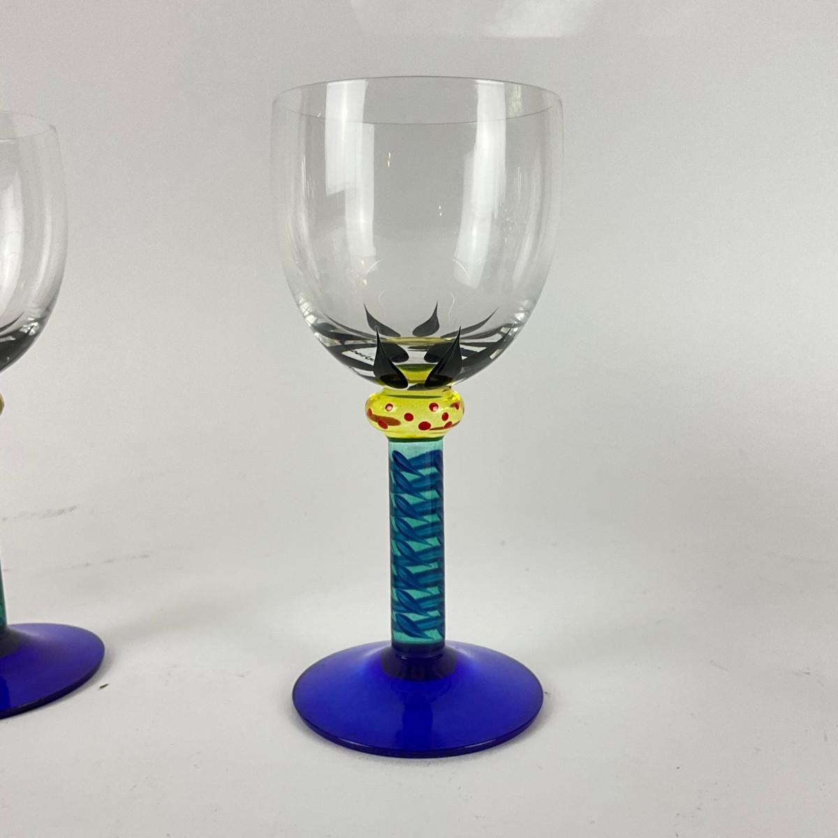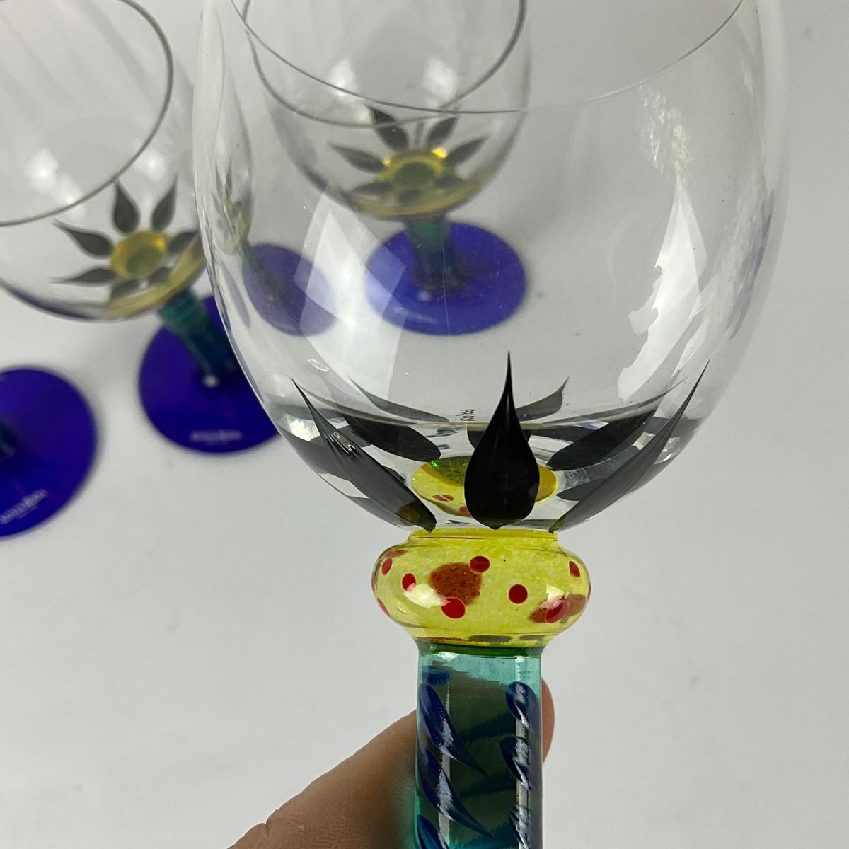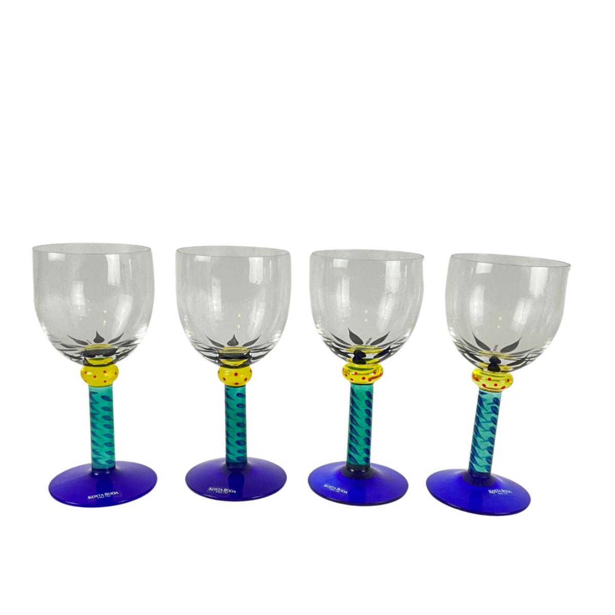 122 Set of Four Kosta Boda Handpainted Palm Tree Wine Glasses