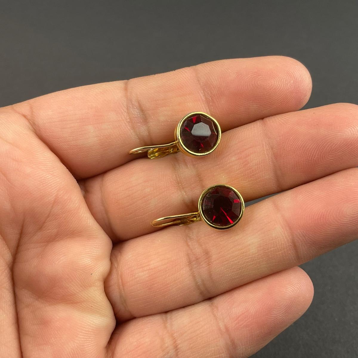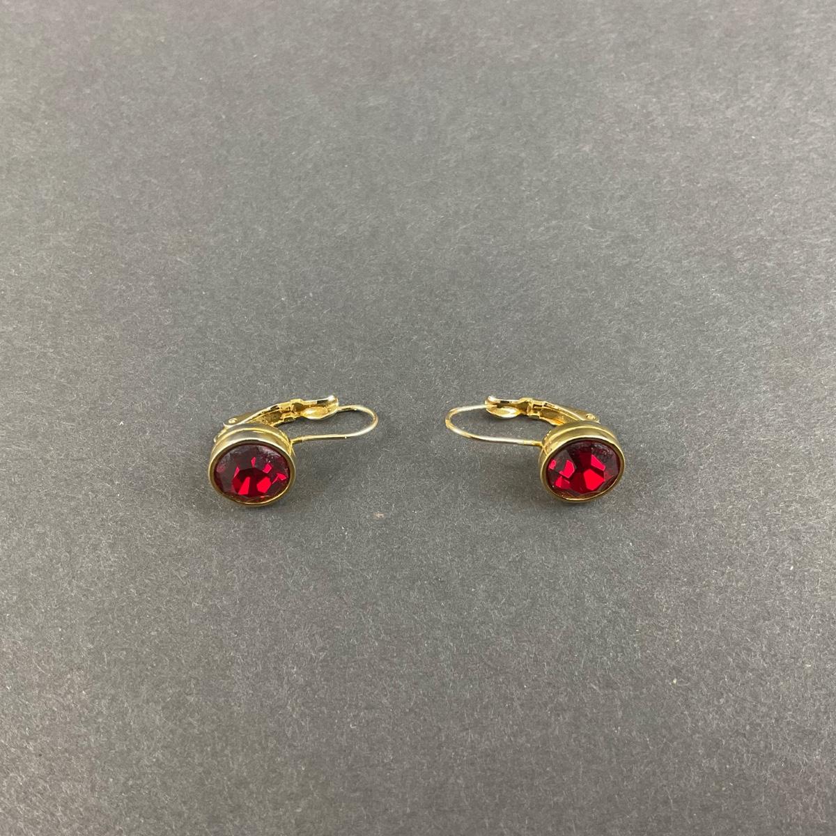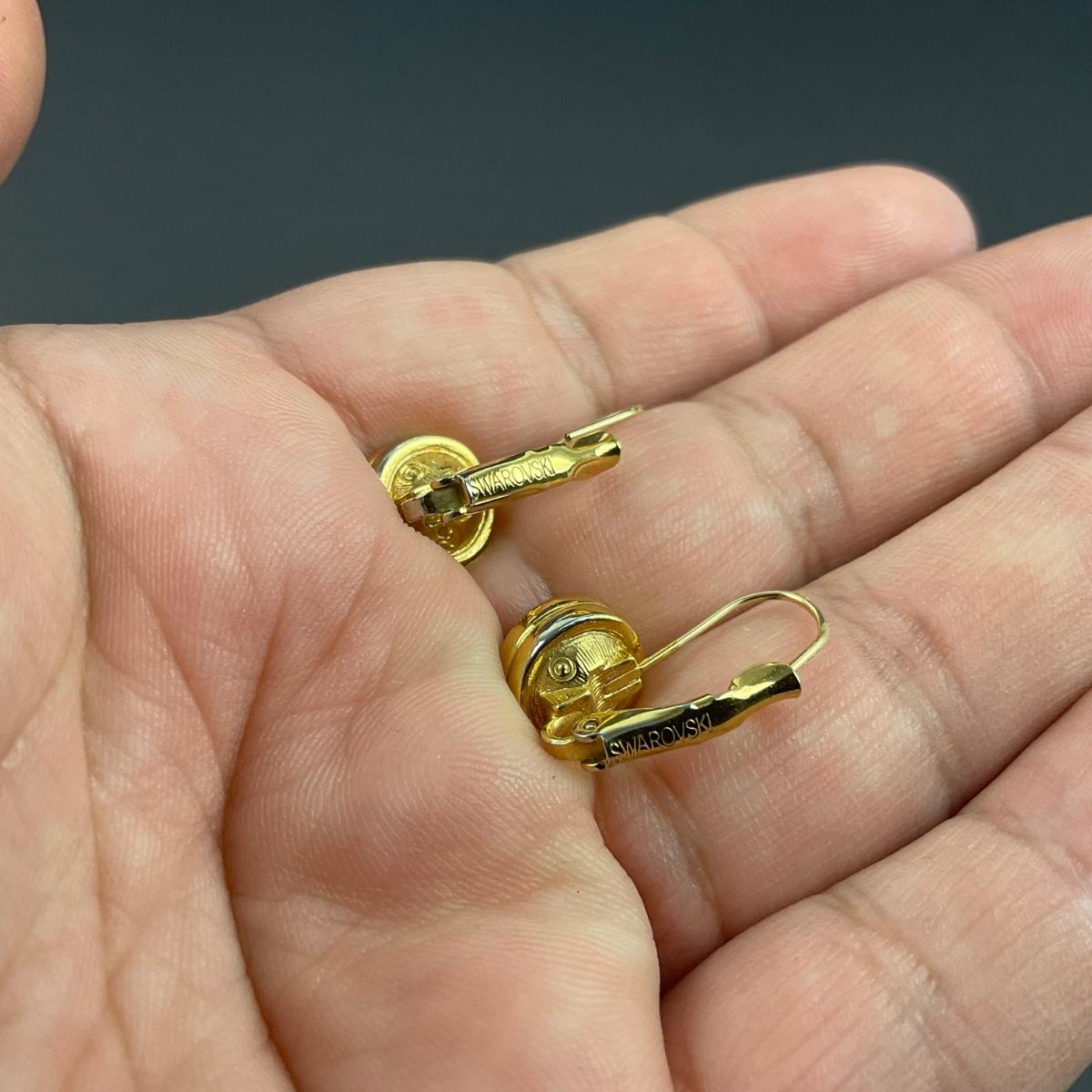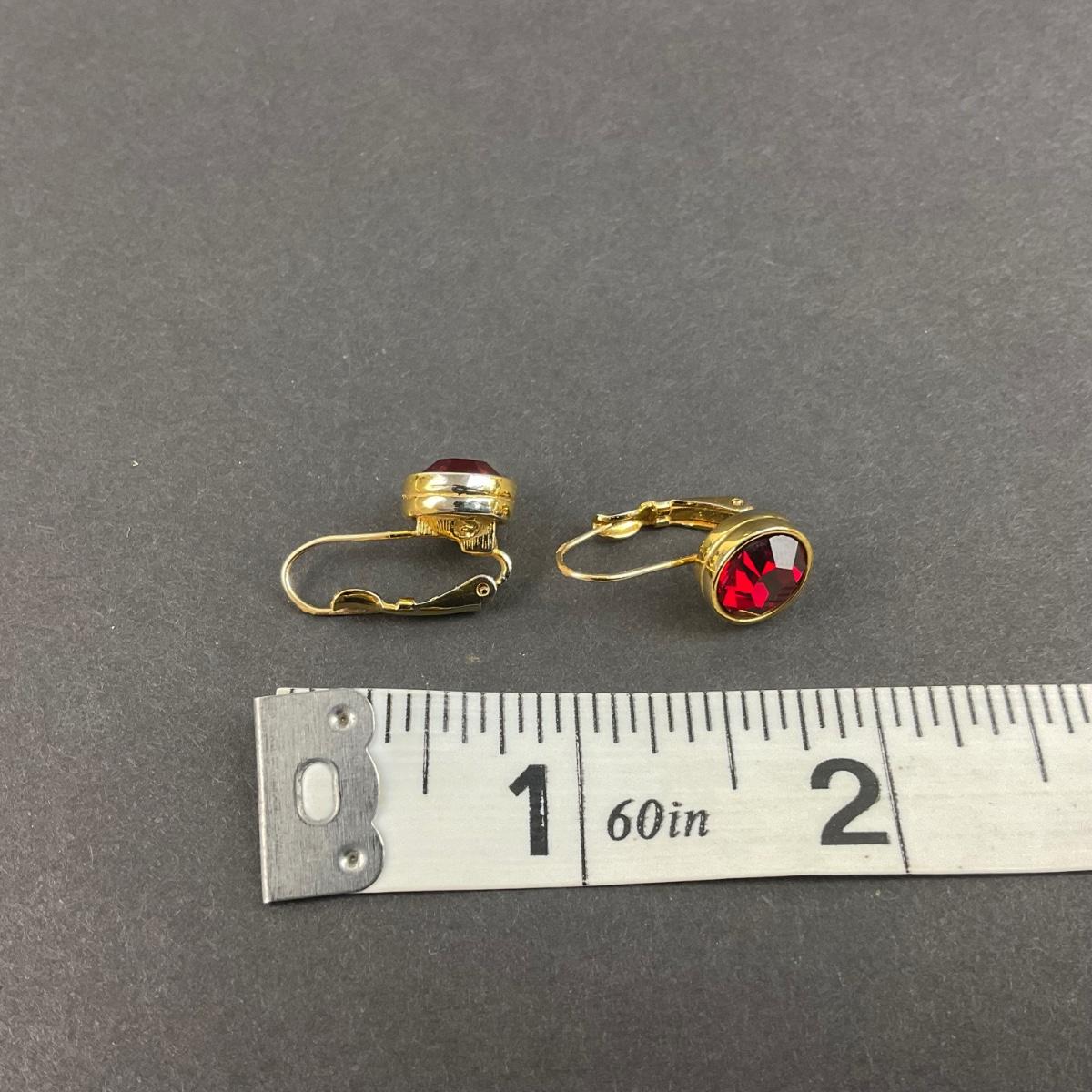 -122- SWAROVSKI | Swan Logo Gold Tone Red Stone Earrings | Marked