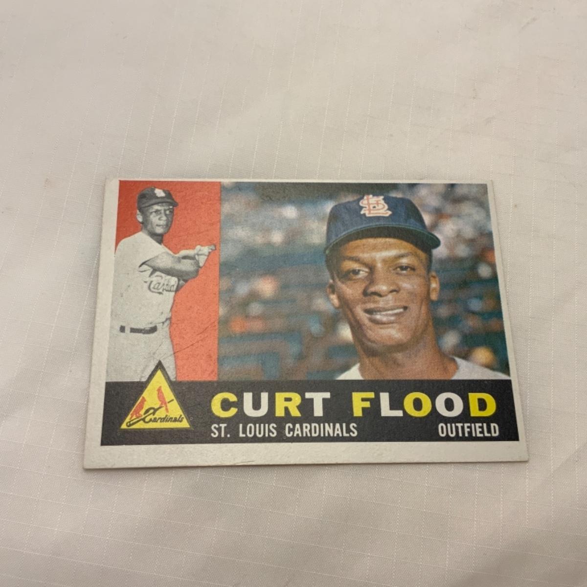 Phenomenal Vintage Card from TOPPS 1960 Series. Card #275 features Curt Flood Famous Outfielder with the St Louis Cardinals in the 1960s. Card is in excellent condition, and comes from the original owner. Please see photos for details and condition. ::: Shipping is available on this lot. If you require shipping you must let us know at the close of the auction. We will coordinate with you after the item has been won. Shipping fees will include insurance up to or exceeding the value of all items being mailed. If you have any questions regarding this lot please contact the auctioneer either via this website, by direct email or by phone. PICK UP TIMES and other important information can be found in the TERMS and DESCRIPTION of the auction. Please take a look for pertinent information. Thanks!