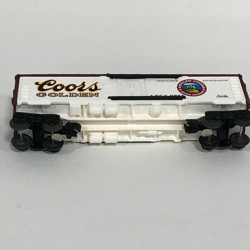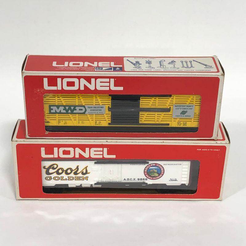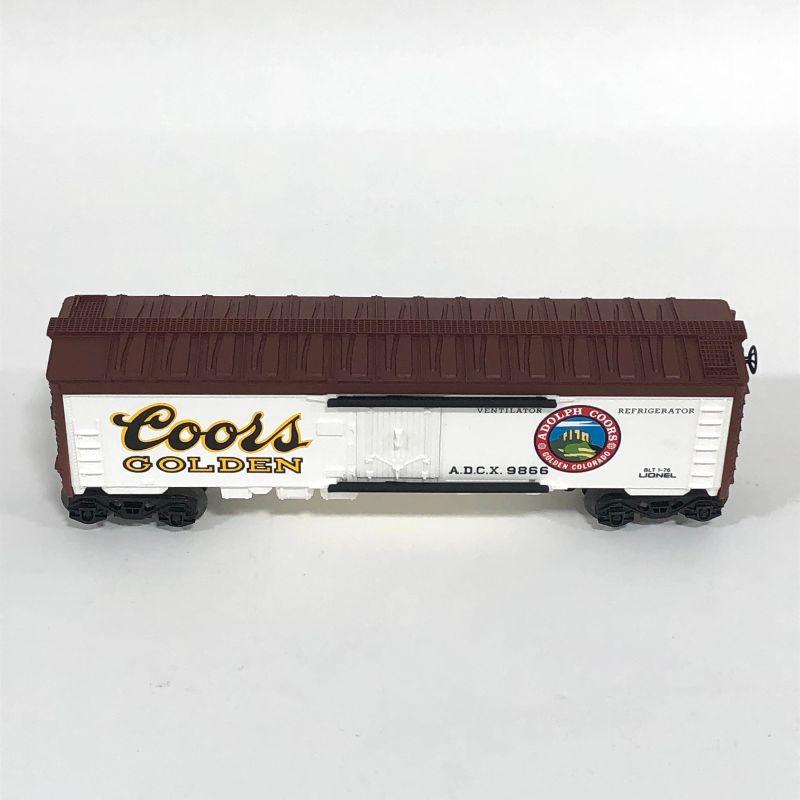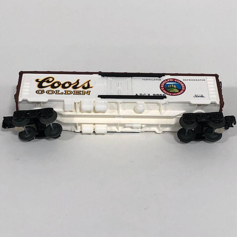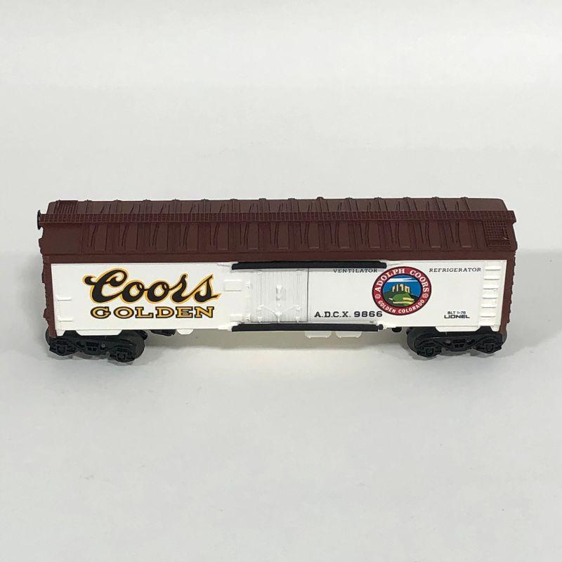 Two Vintage Lionel Train Cars, Coors Billboard Reefer (6-9866) & TCA Midwest Collectors Association Car dated August 9, 1975