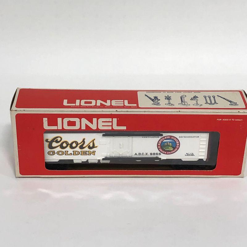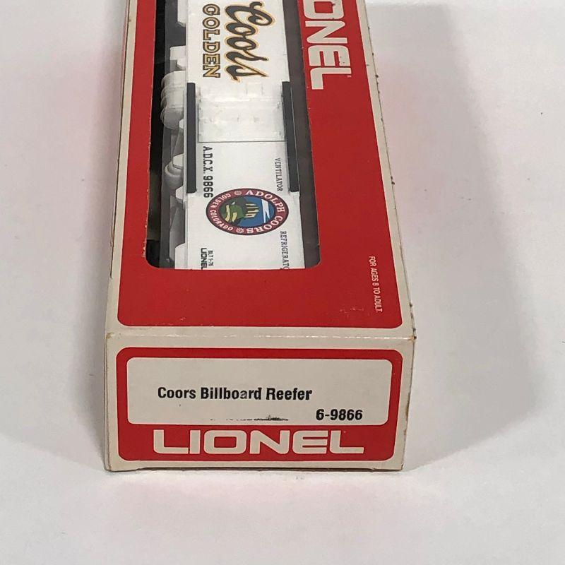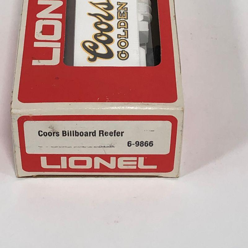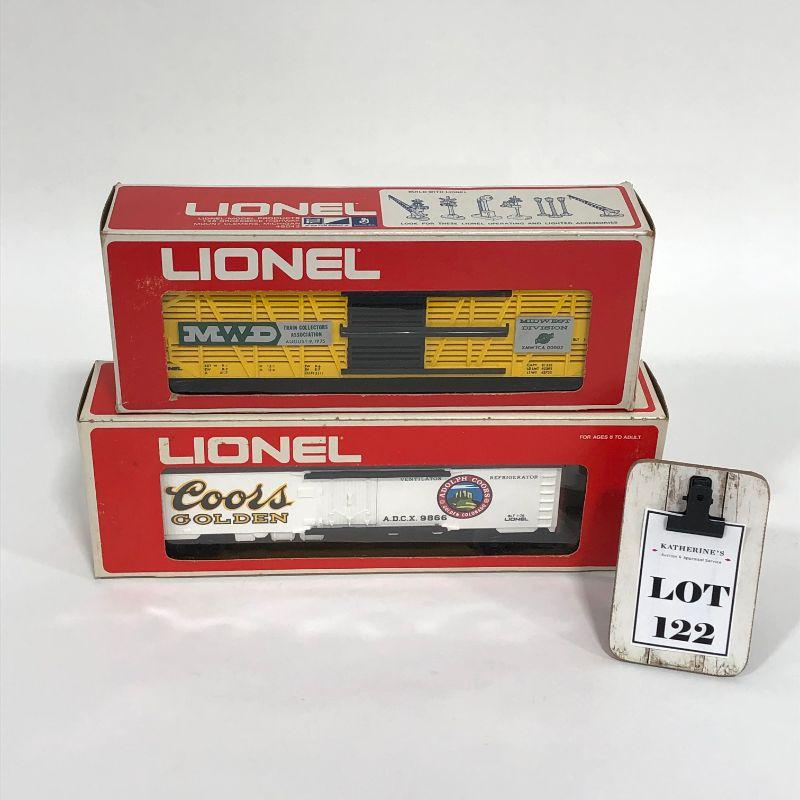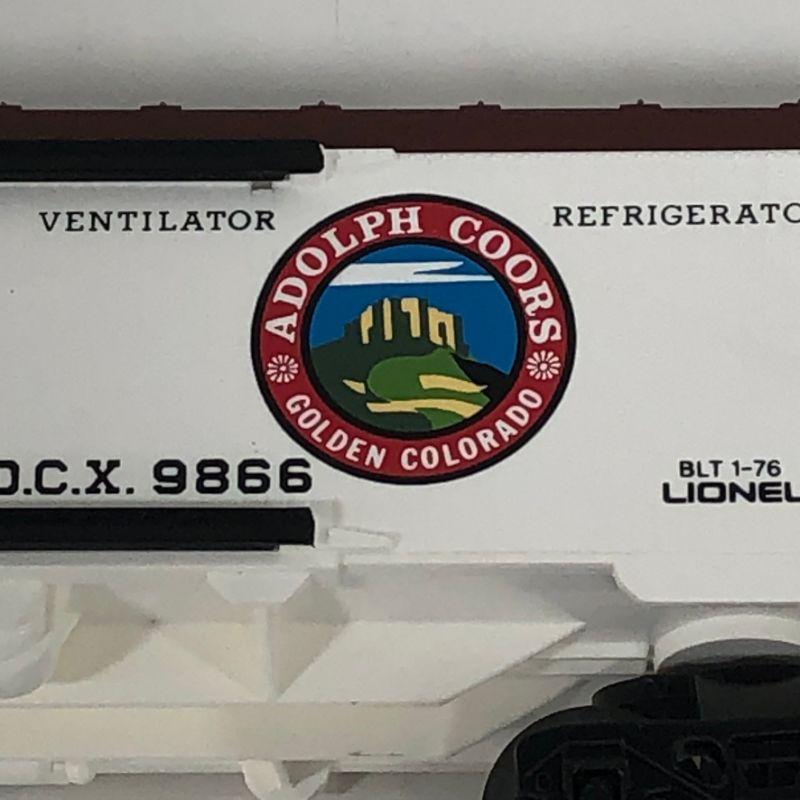 Two Vintage Lionel Train Cars, Coors Billboard Reefer (6-9866) & TCA Midwest Collectors Association Car dated August 9, 1975
