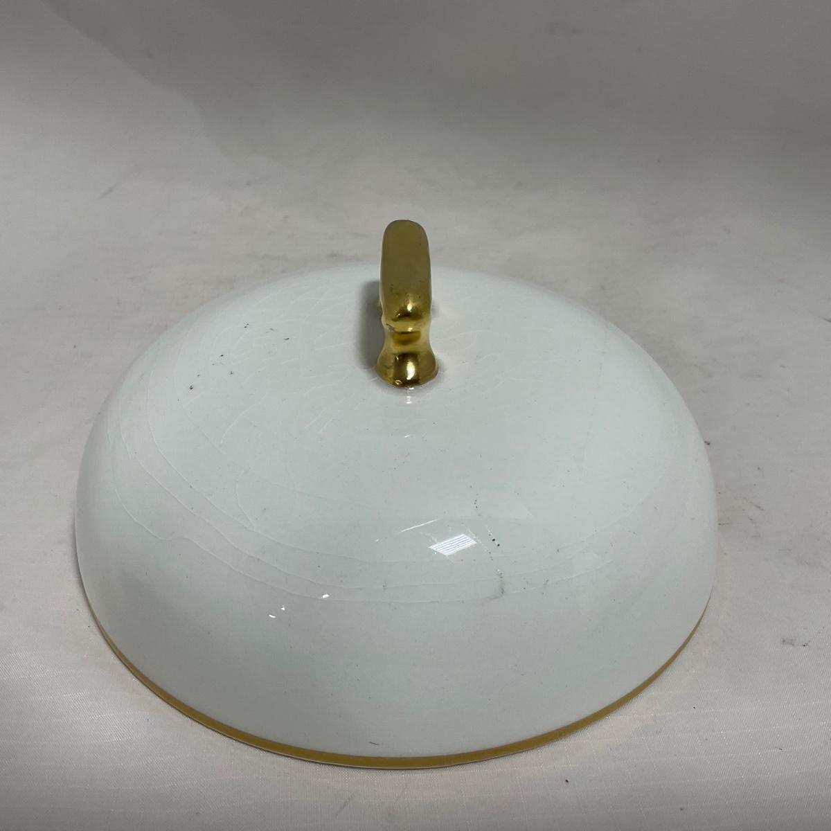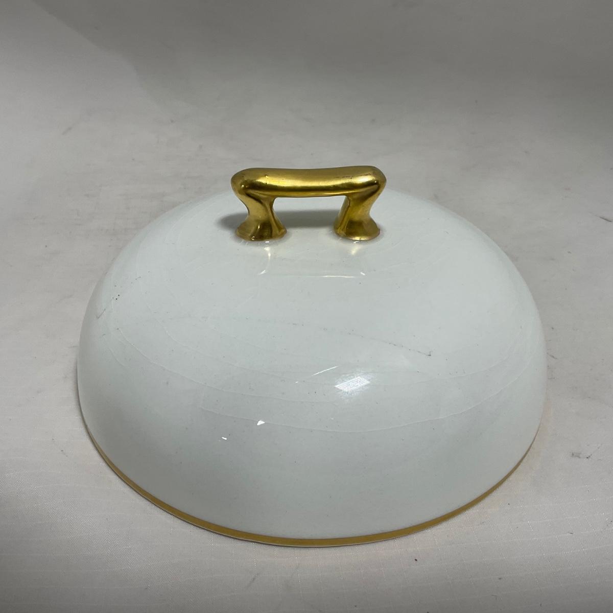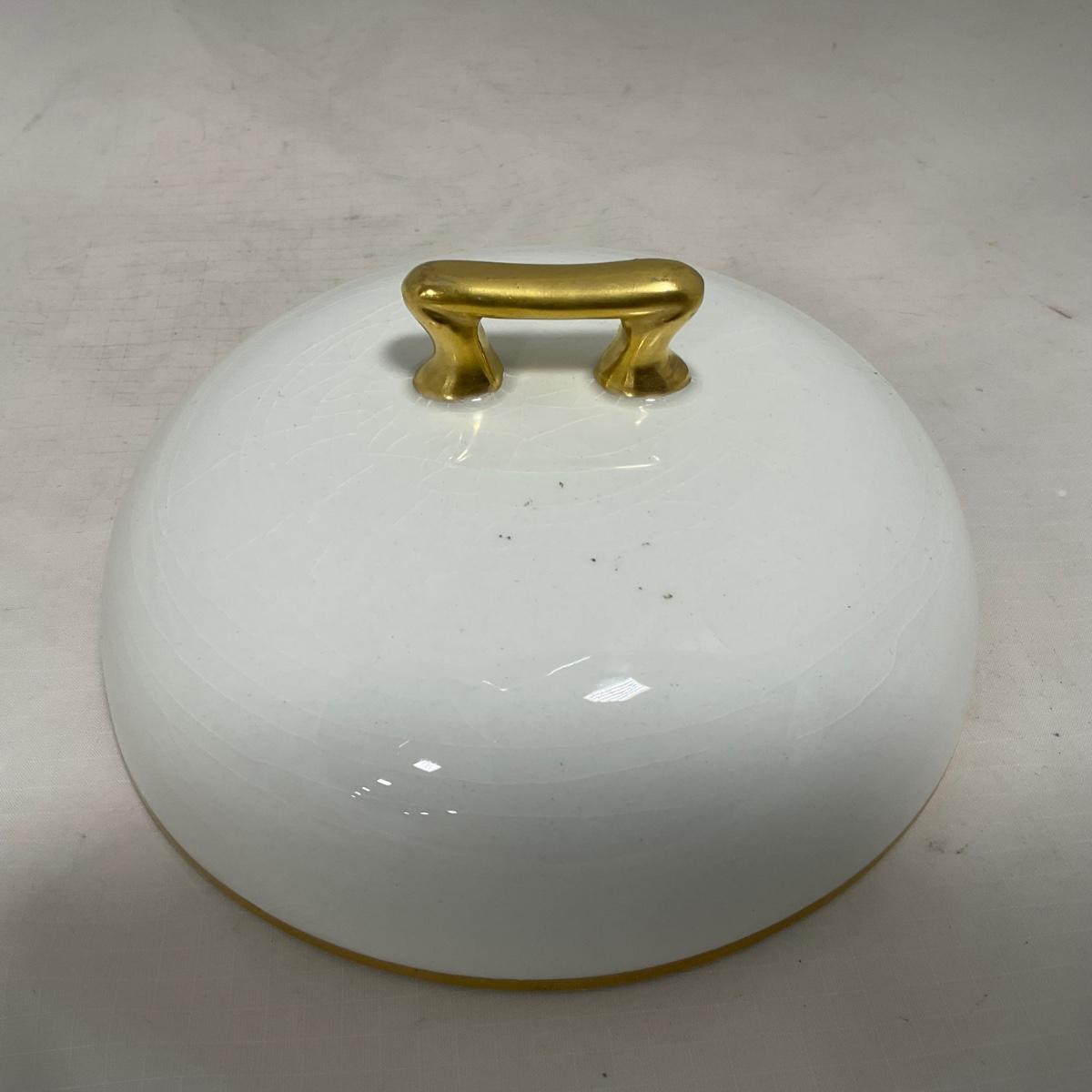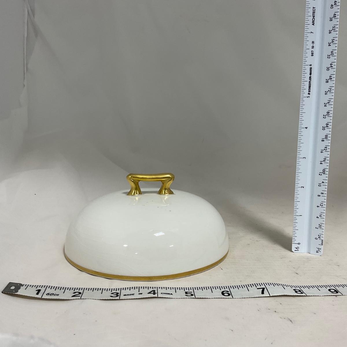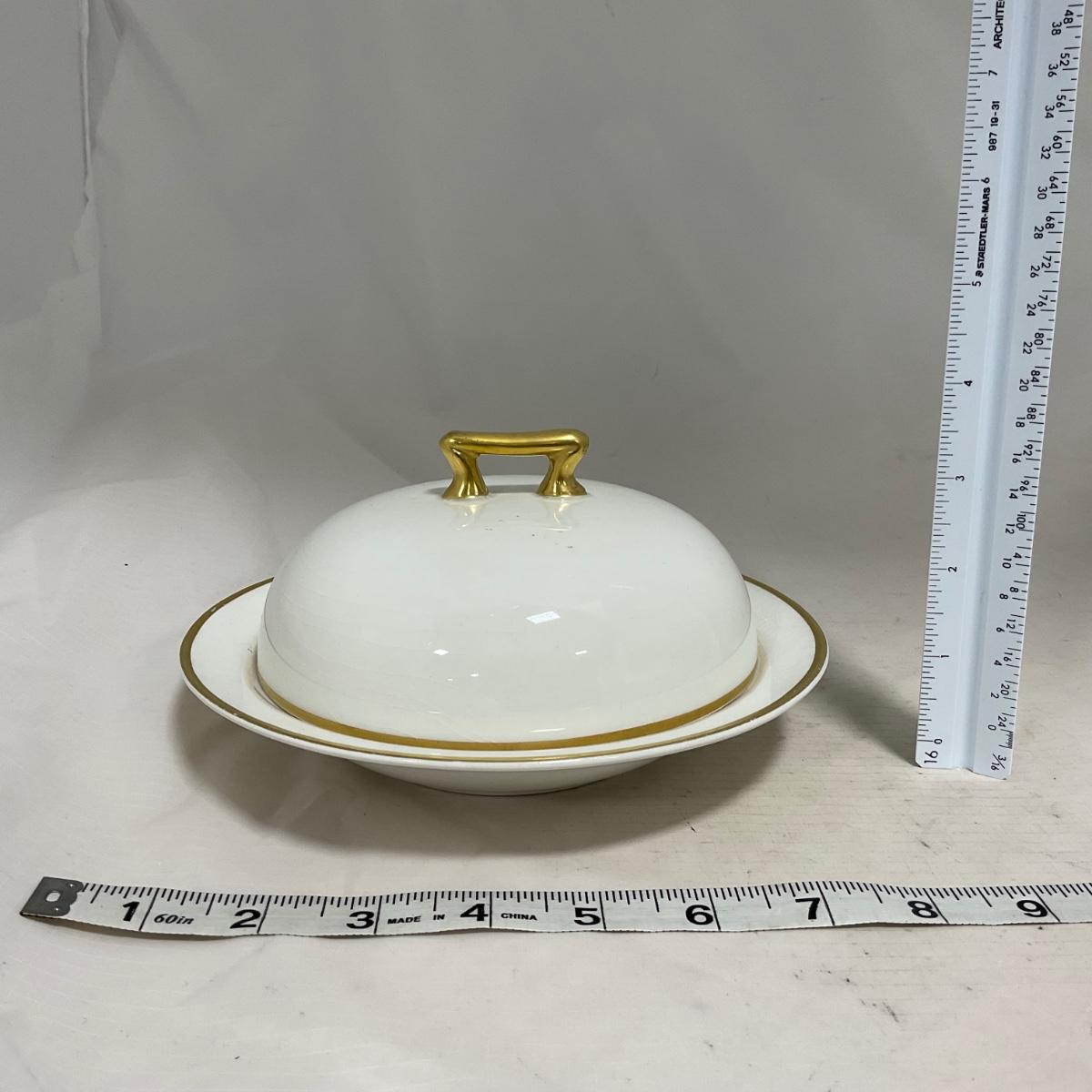 -122- White & Gold Accent | Insert | Marked | Covered Butter Dish