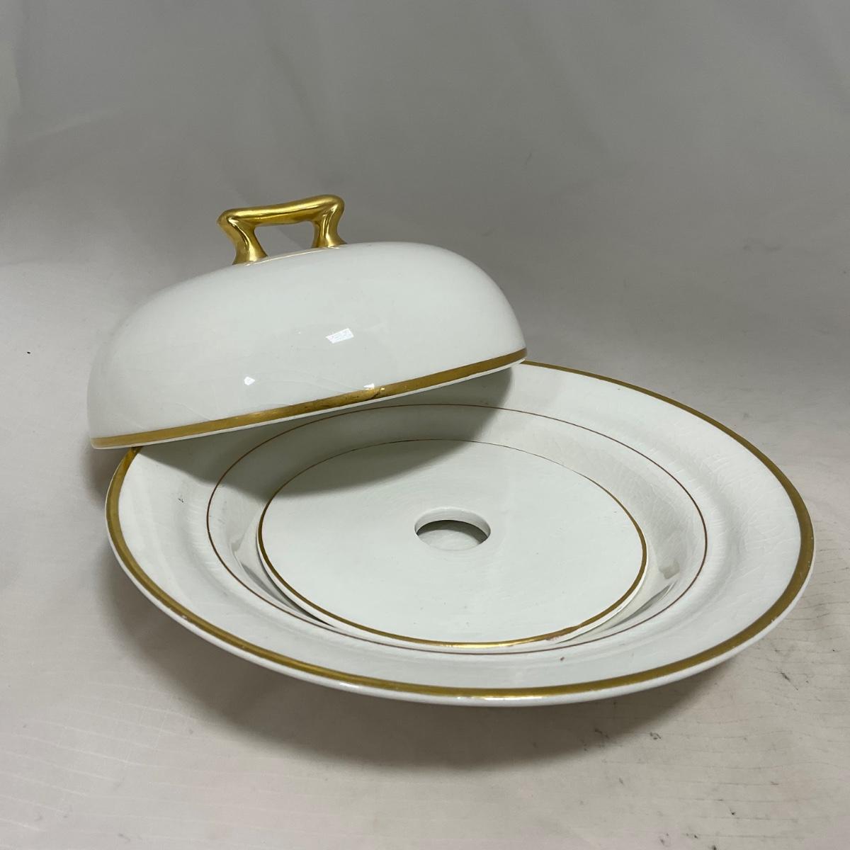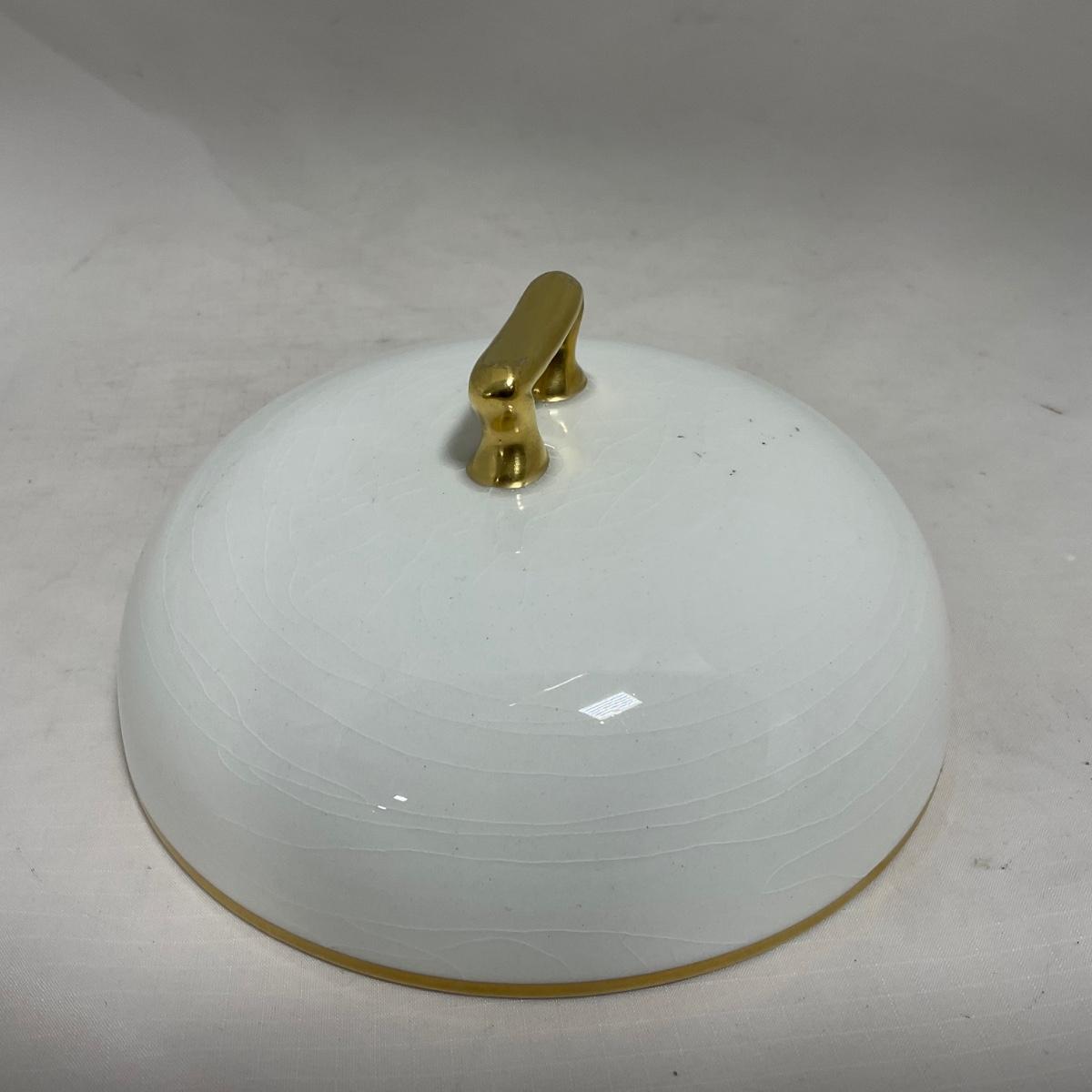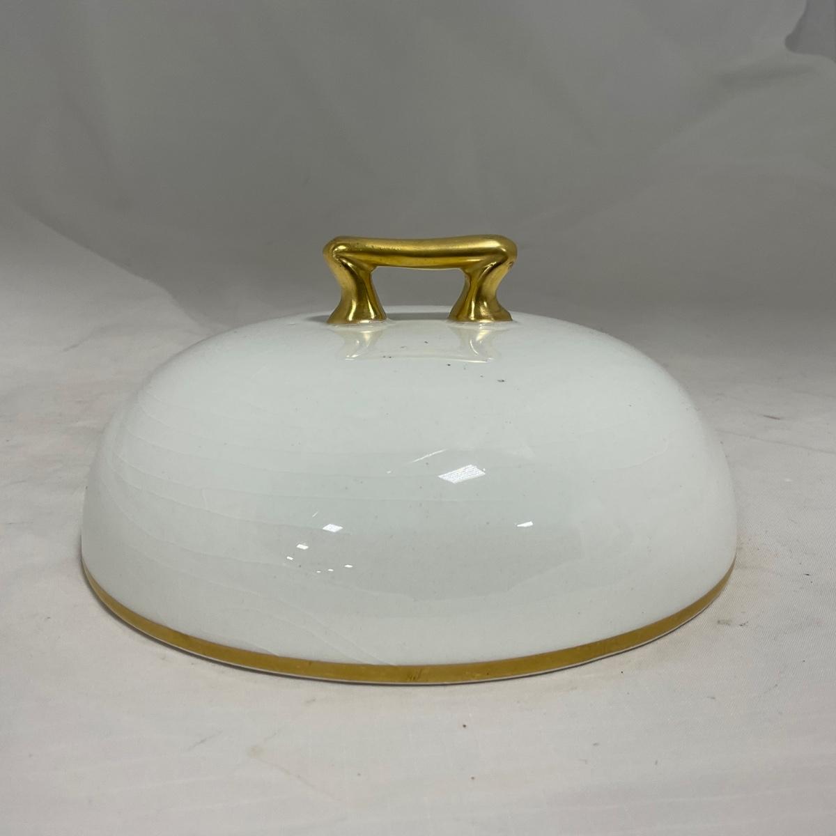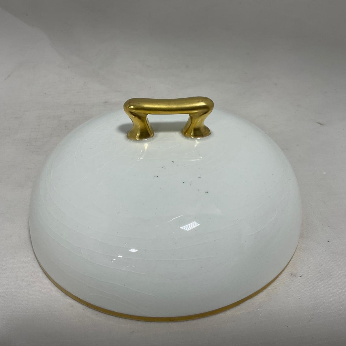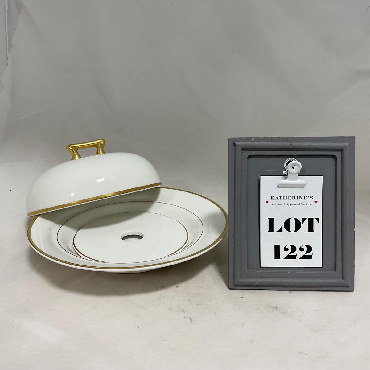 -122- White & Gold Accent | Insert | Marked | Covered Butter Dish