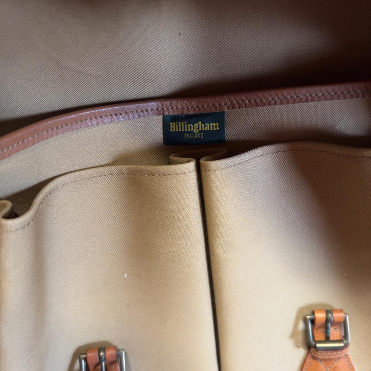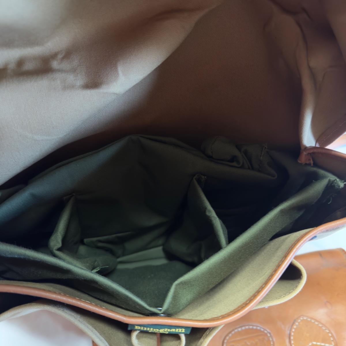 Billingham bag is in very good clean condition with compartments , constructed of canvas and leather