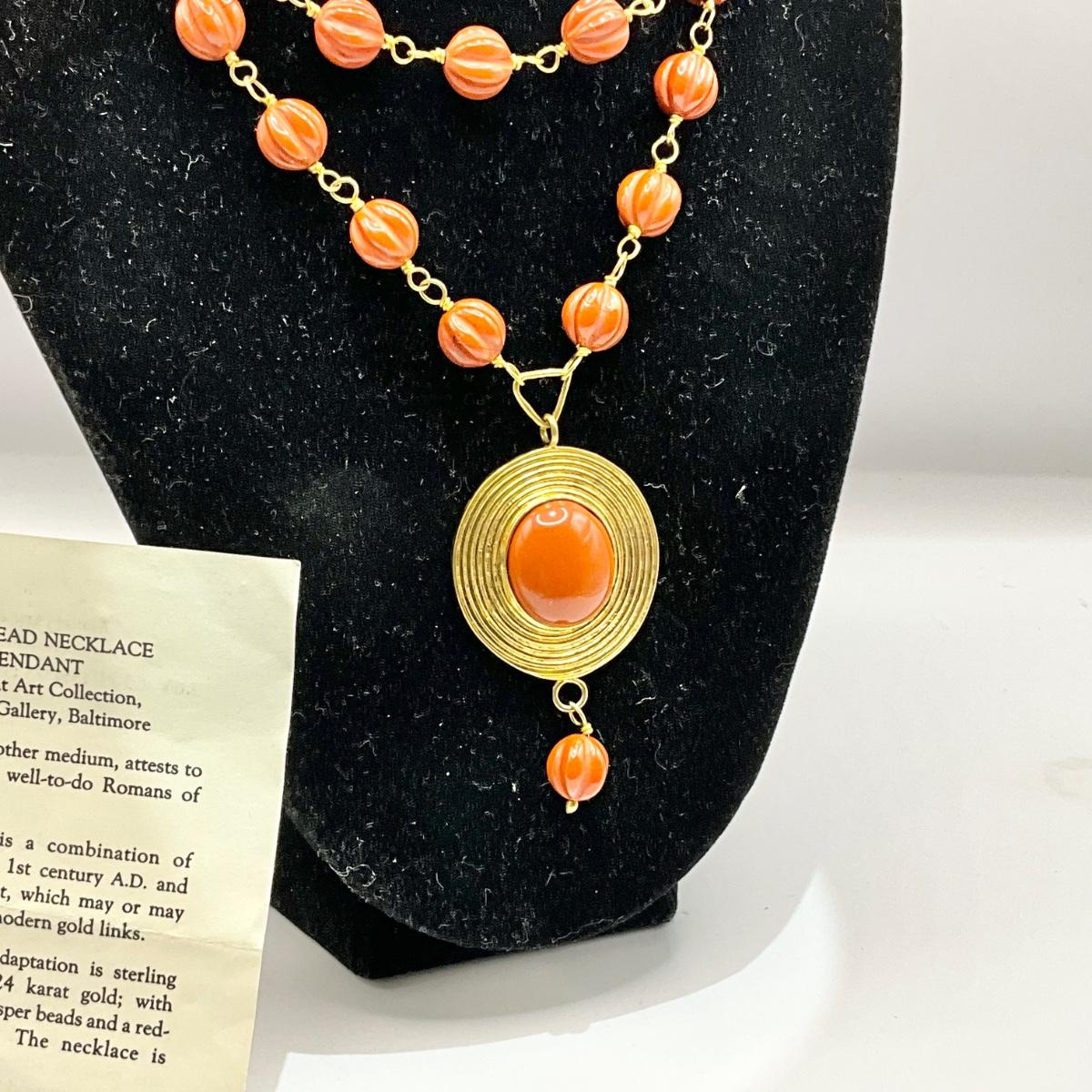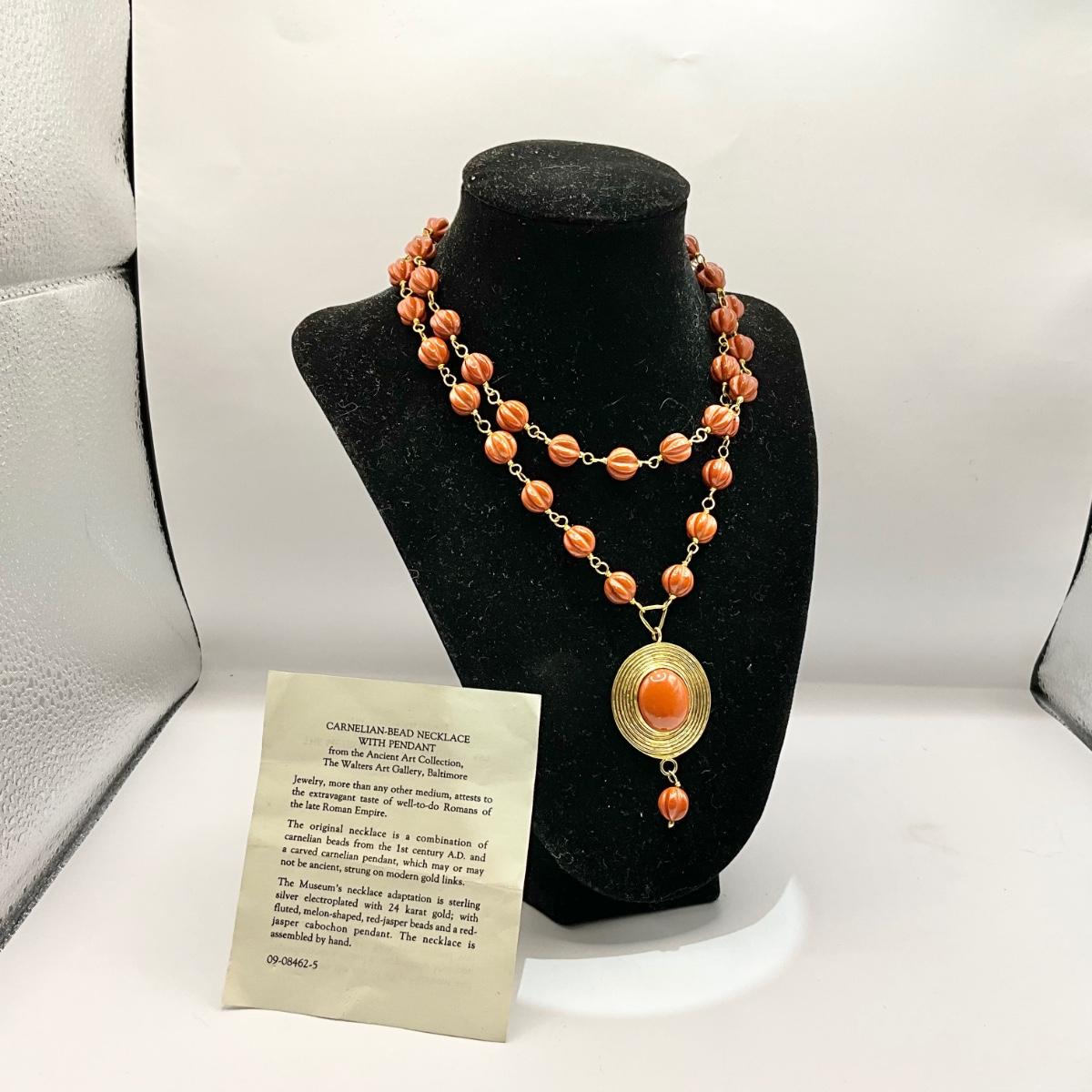 1221 MMA 24k Electroplate over Sterling Silver  Carnelian Beaded Necklace
