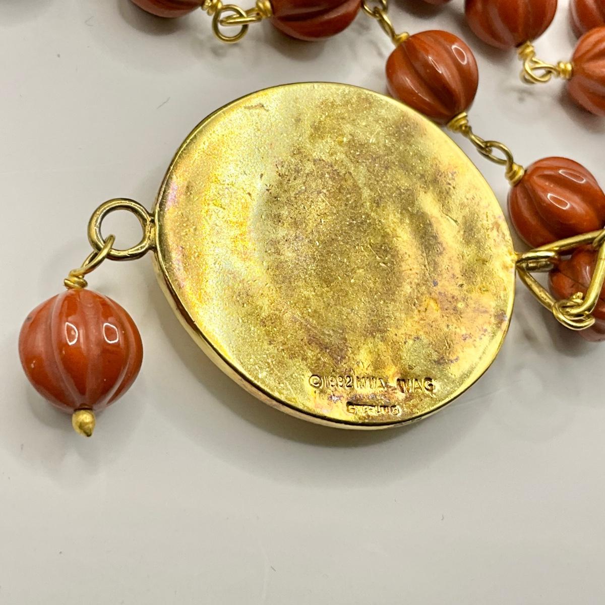 1221 MMA 24k Electroplate over Sterling Silver Carnelian Beaded Necklace