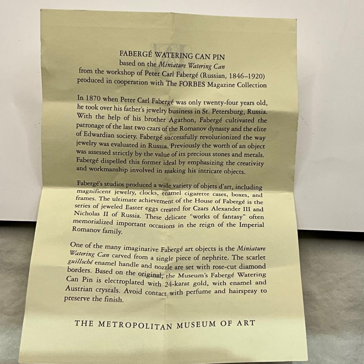 1222 Metropolitan Museum of Art Faberge Watering Can Pin