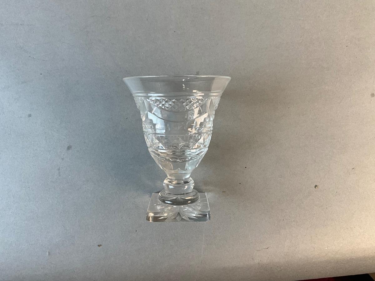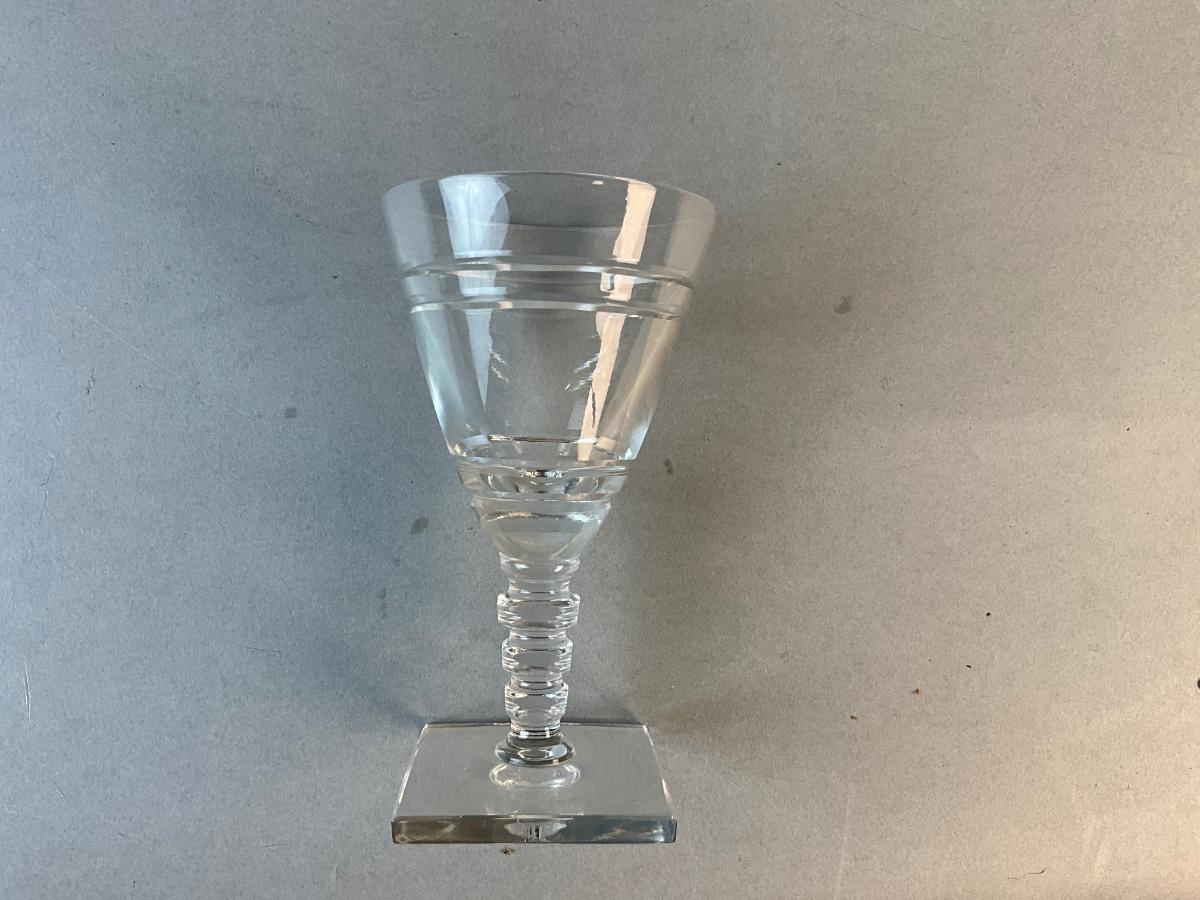 One set of 6 square base goblets measuring 5.25" high x 3" diameter